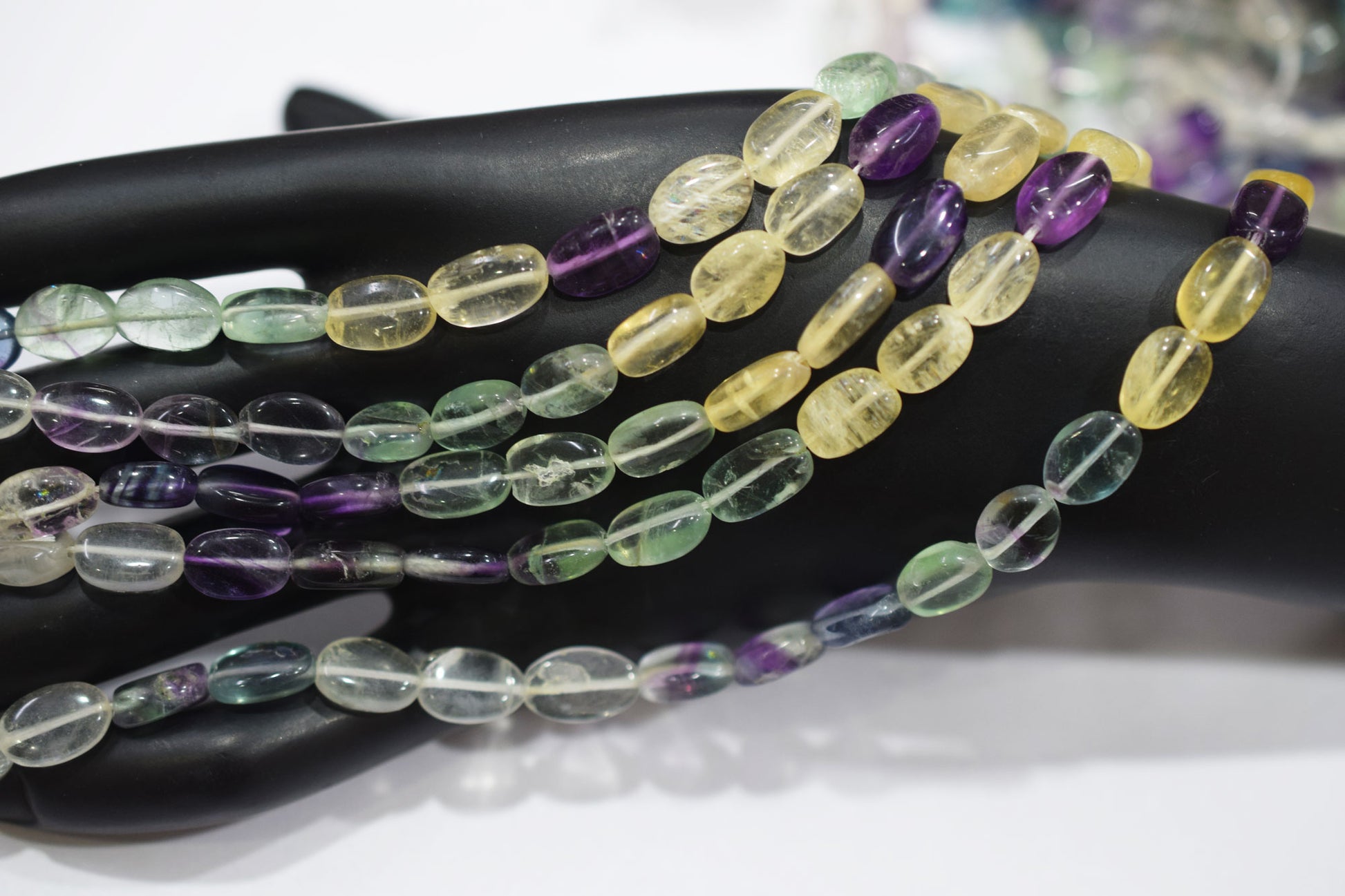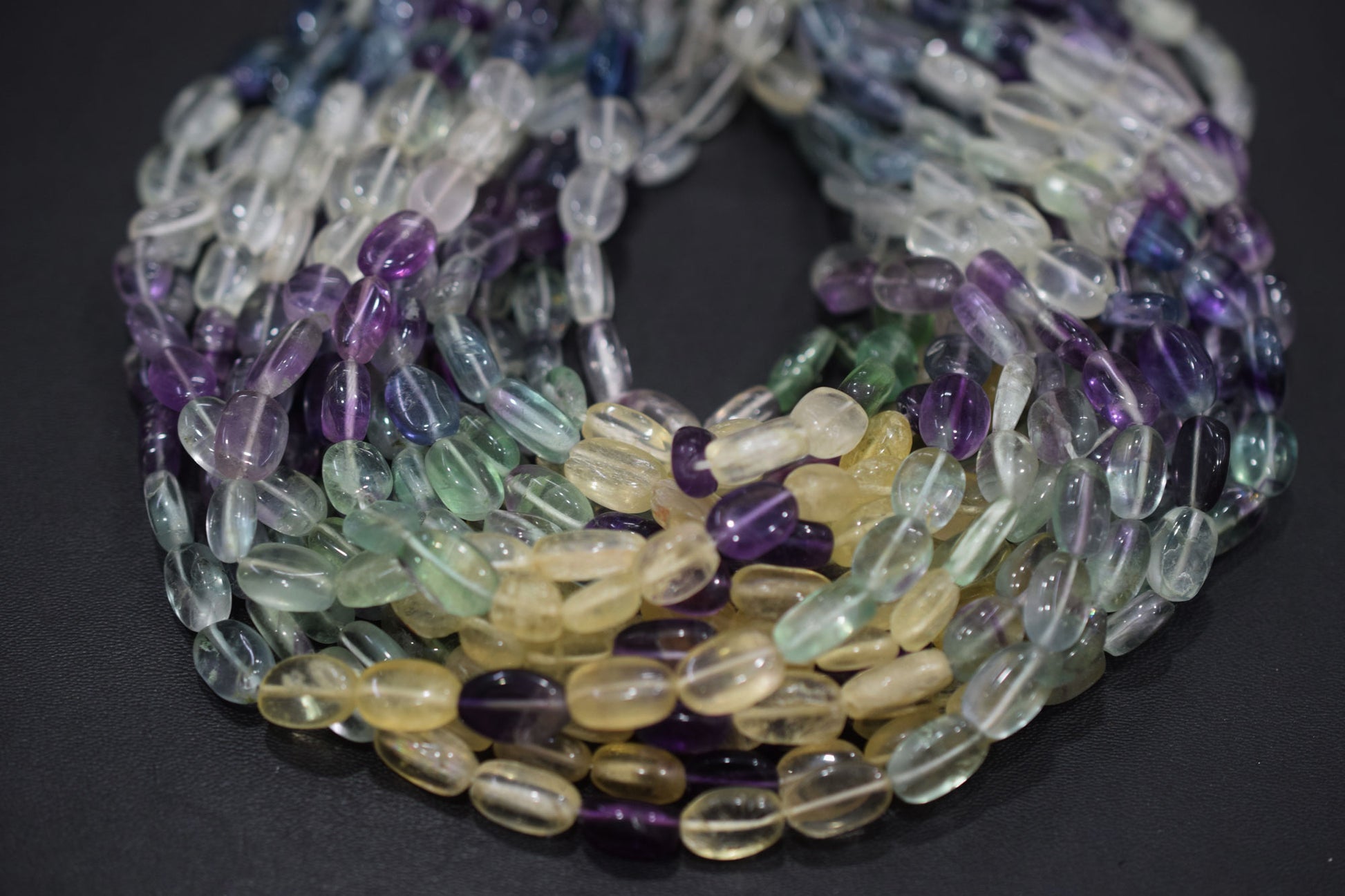 Natural Multi Fluorite Oval Nuggets Shape Beads , Multi Fluorite Smooth Beads , Sold By Strand , 6.50x9 - 7x12 mm , 14" , 20629