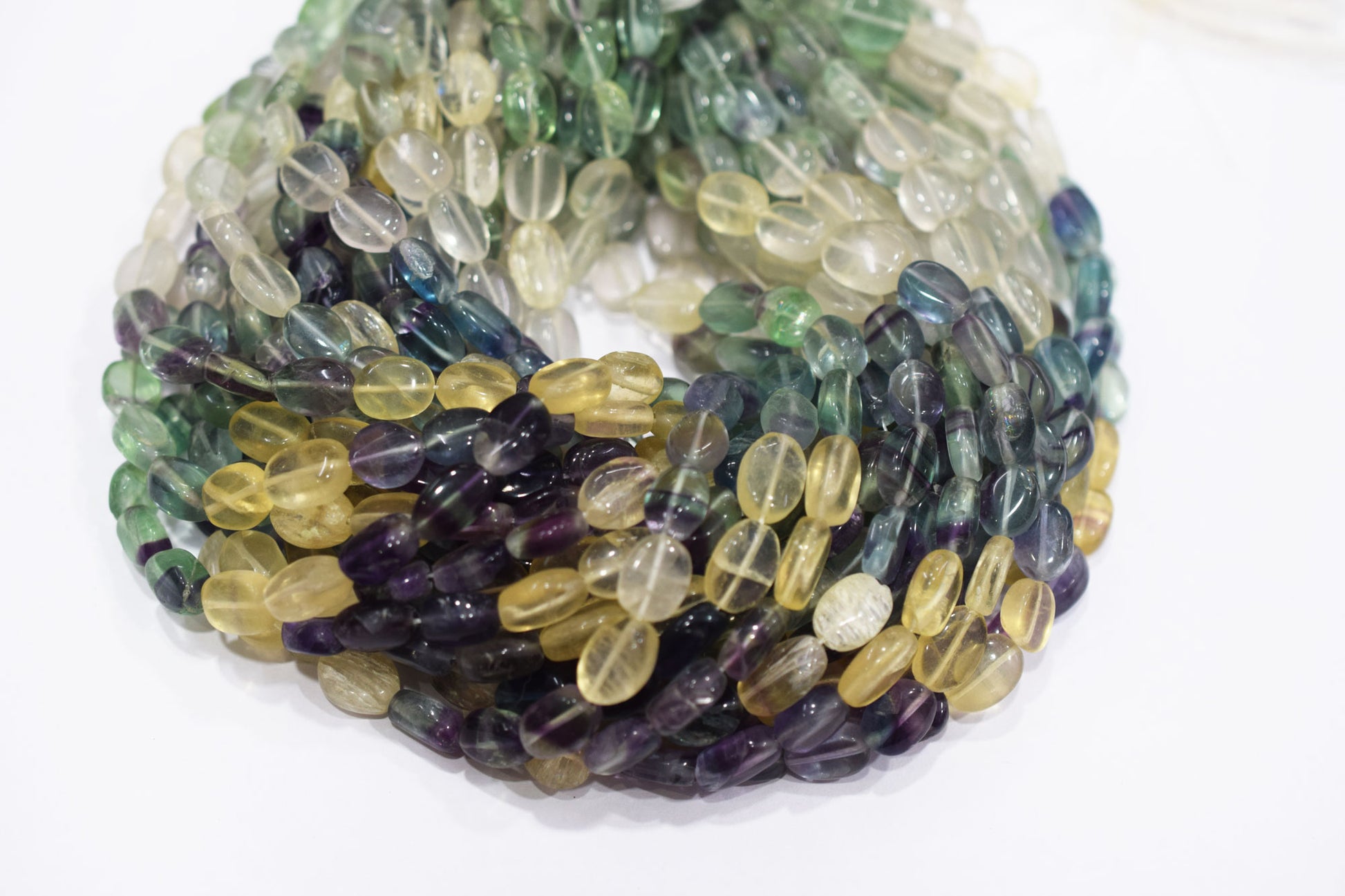 Natural Multi Fluorite Oval Nuggets Shape Beads , Multi Fluorite Smooth Beads , Sold By Strand , 8x10 - 8.50x12 mm , 13" , 20628