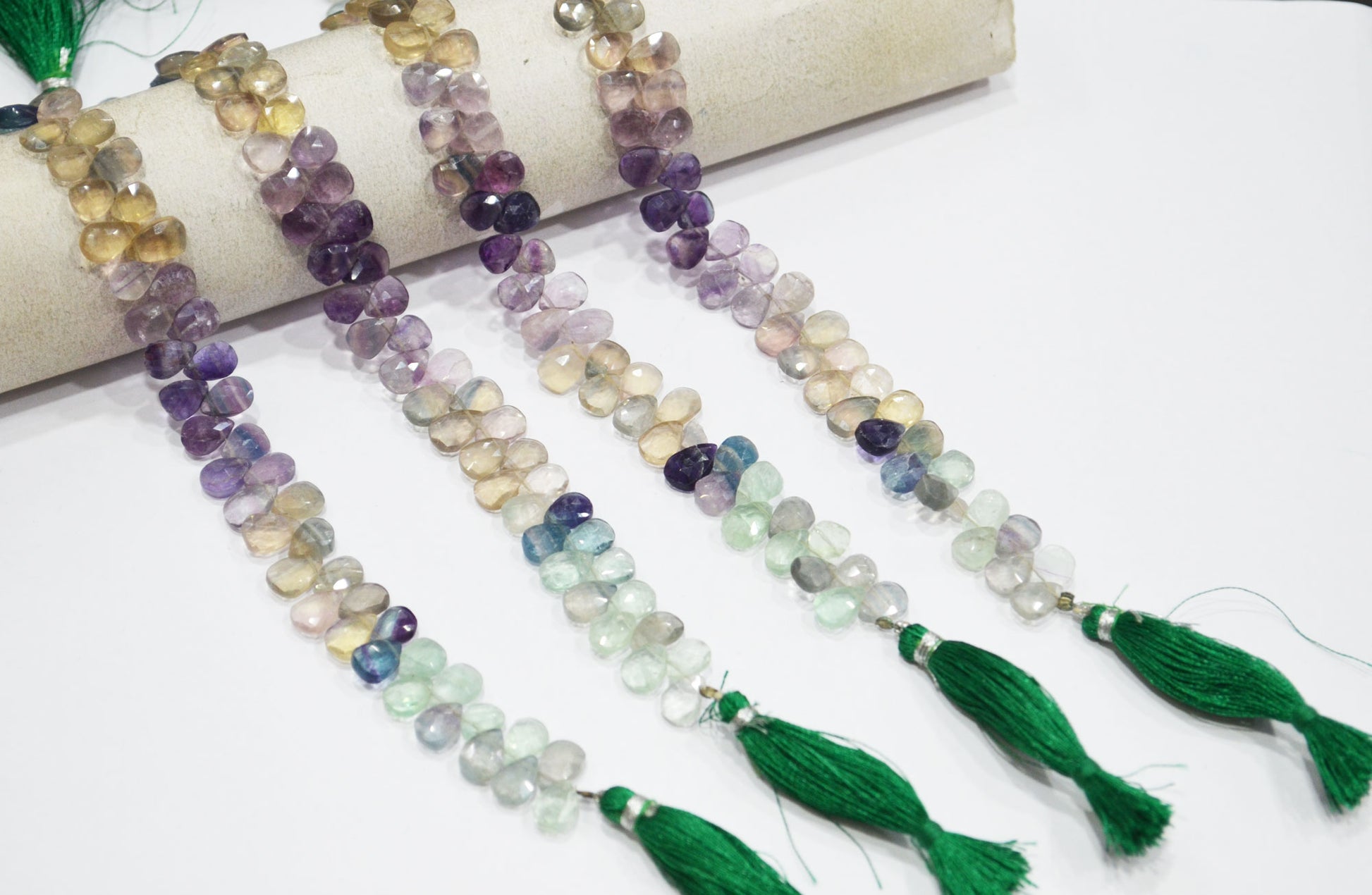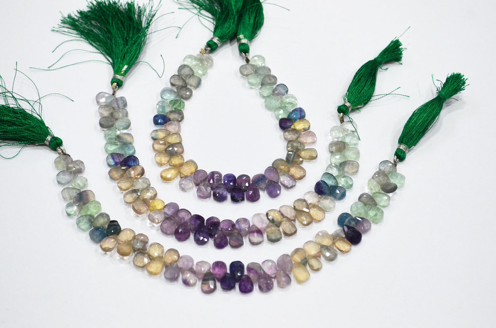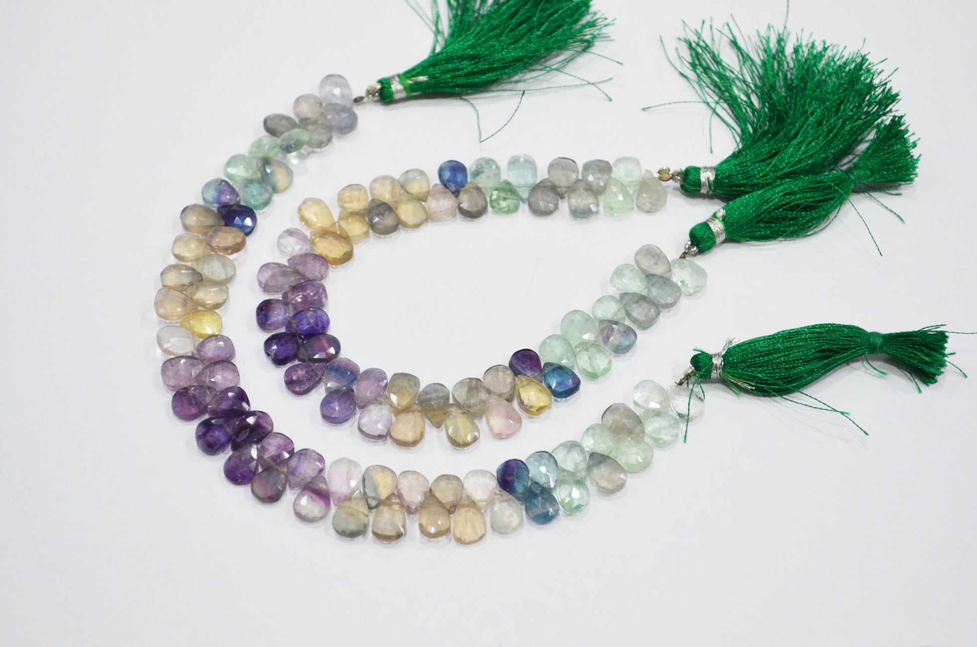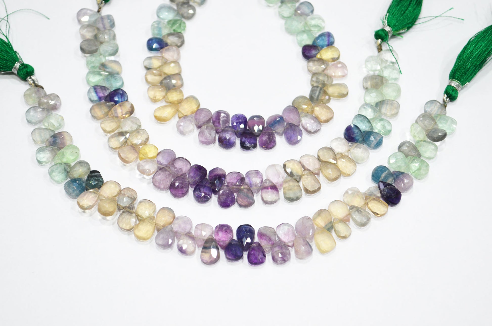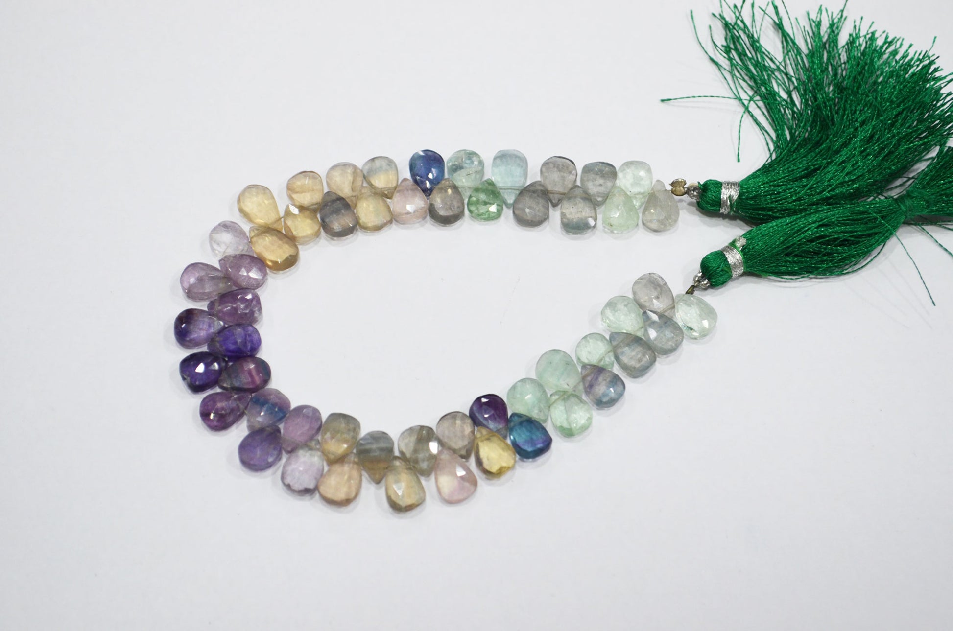 Natural Multi Fluorite Pear Shape Beads , Multi Fluorite Faceted Briolettes , Sold By Strand , 8 Inches , 6.50x8 - 6.50x10 mm , 19463