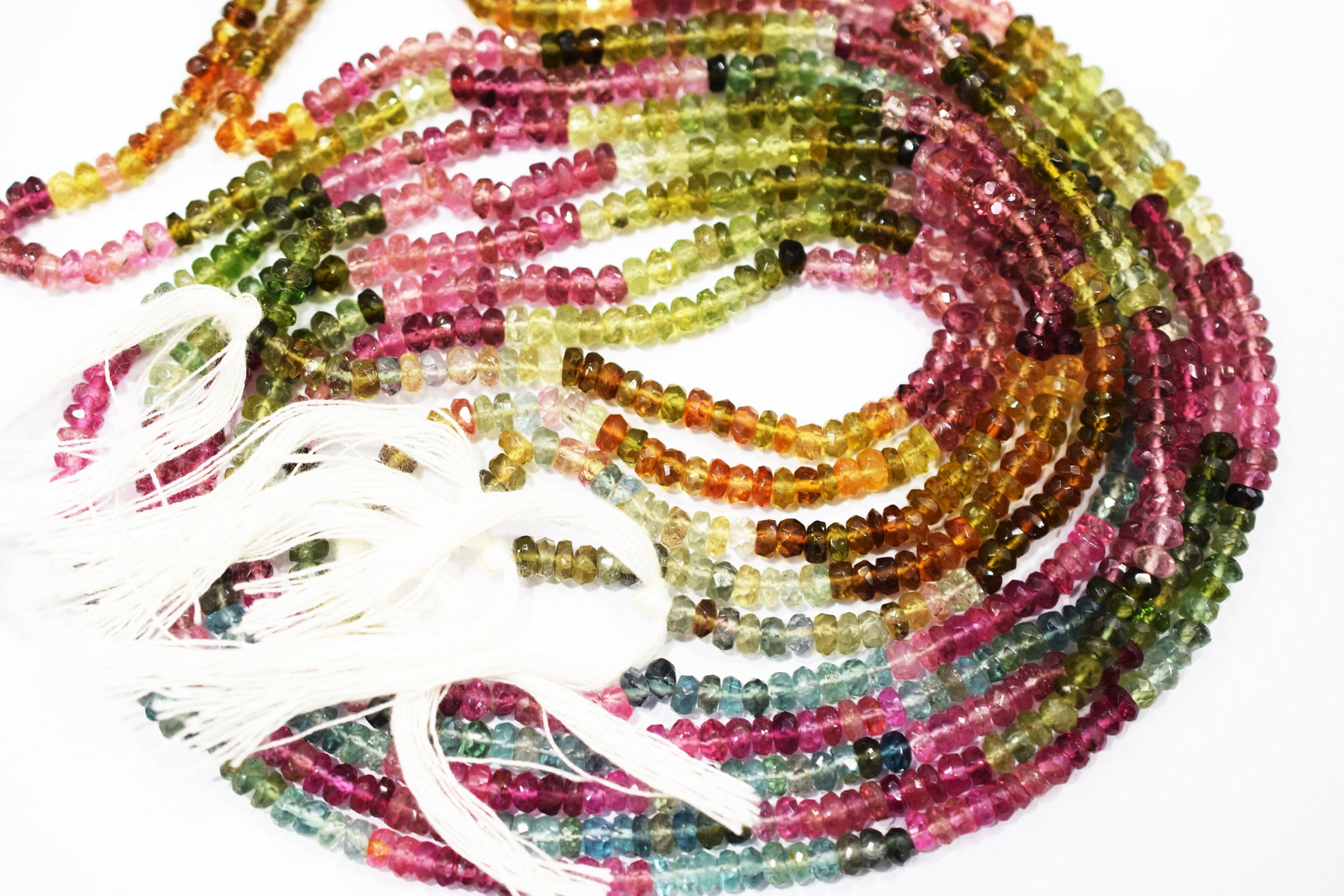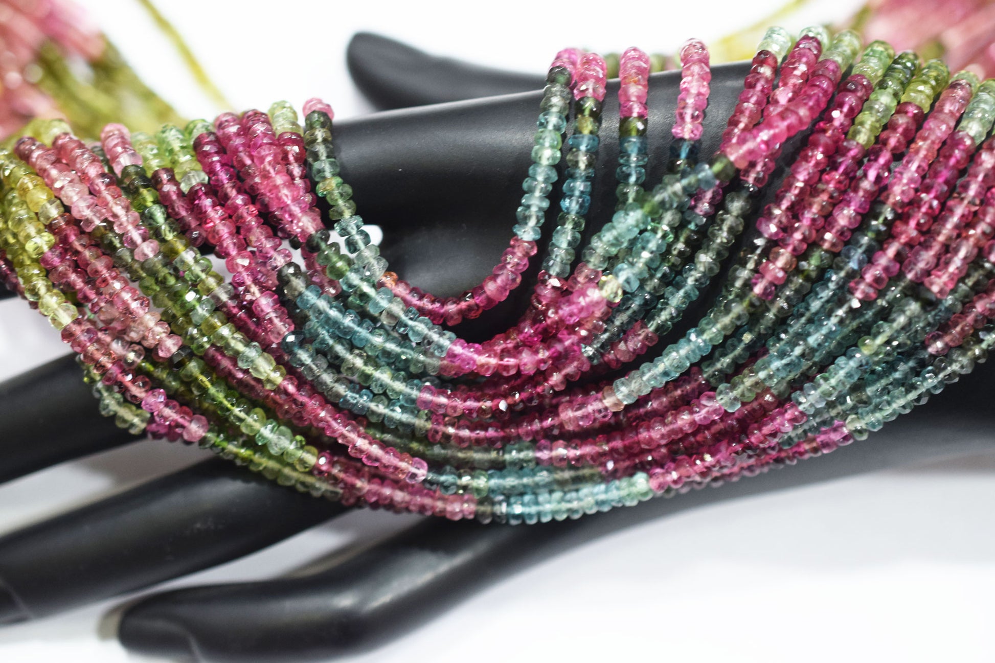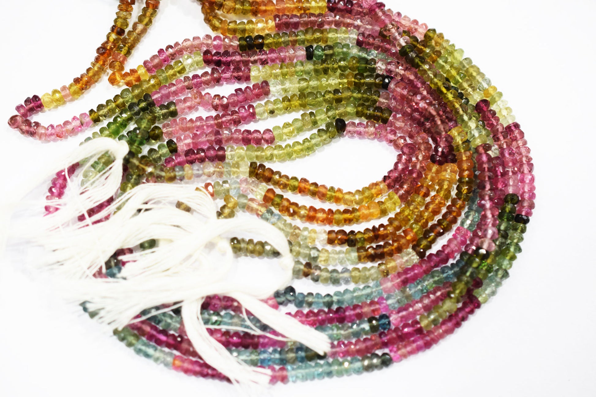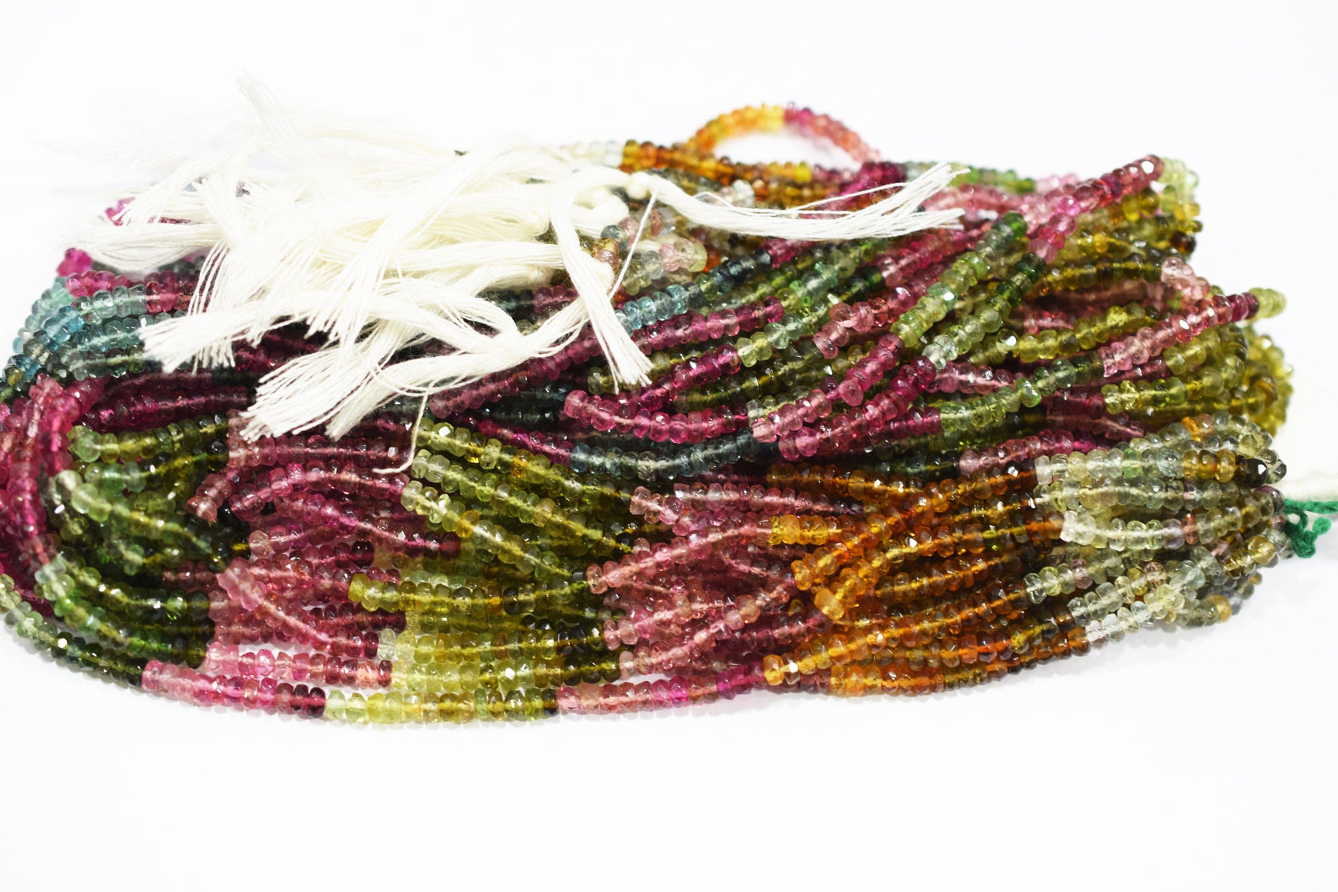 Multi Tourmaline Faceted Beads , Multi Tourmaline Rondelle Beads , Sold By Strand , 3.25 - 3.50 mm , 15.50" , 20365