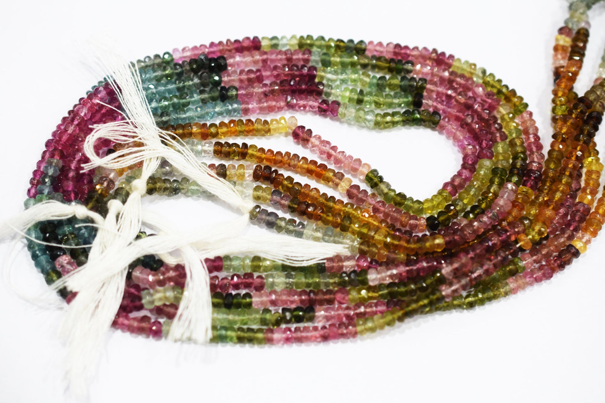 Multi Tourmaline Faceted Beads , Multi Tourmaline Rondelle Beads , Sold By Strand , 3.75 mm , 15.50" , 20366