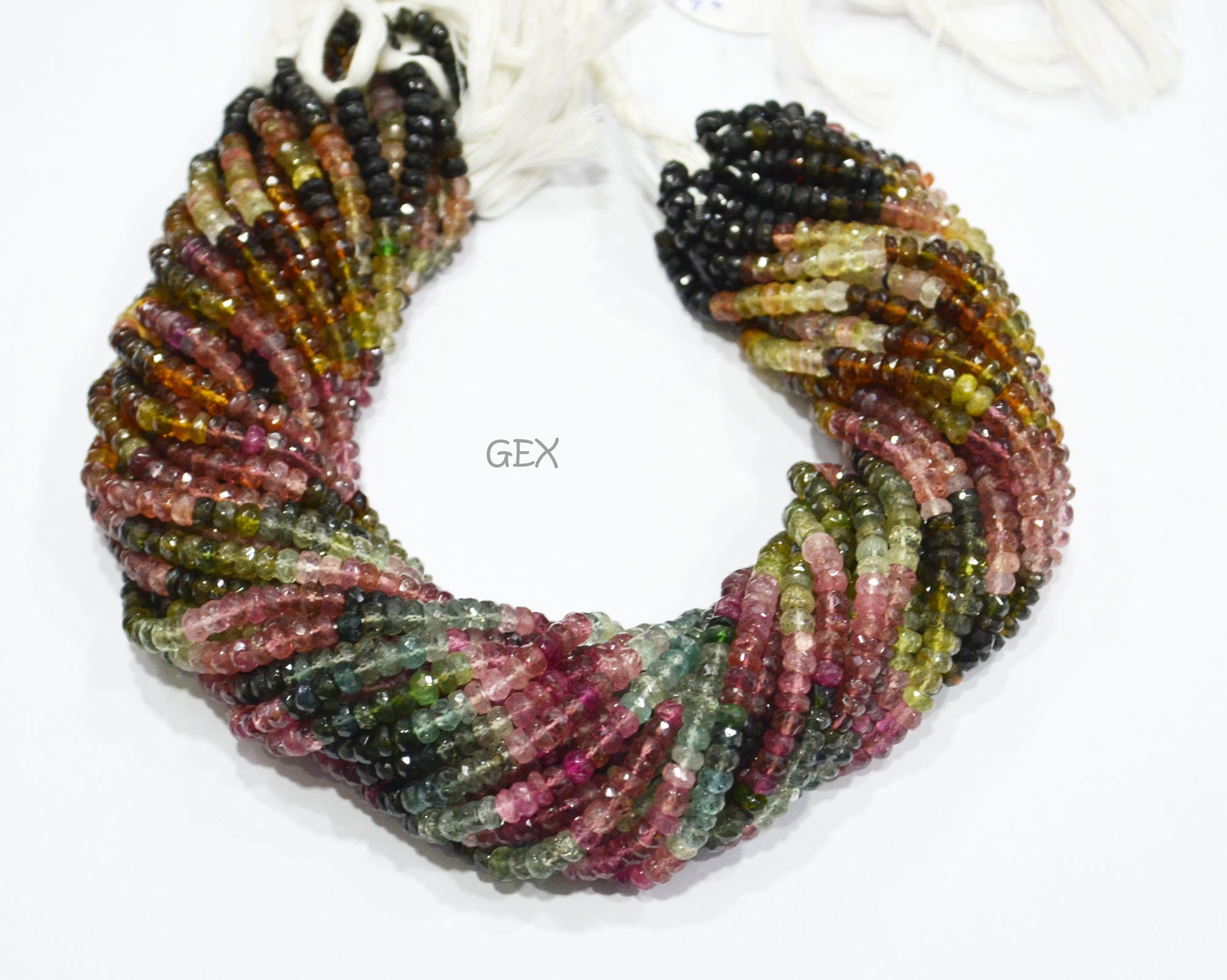 Natural Multi Tourmaline Faceted Rondelle Shape Beads , Multi Tourmaline Faceted Beads , Sold By Strand , 14 Inches , 4.75 mm , 31855