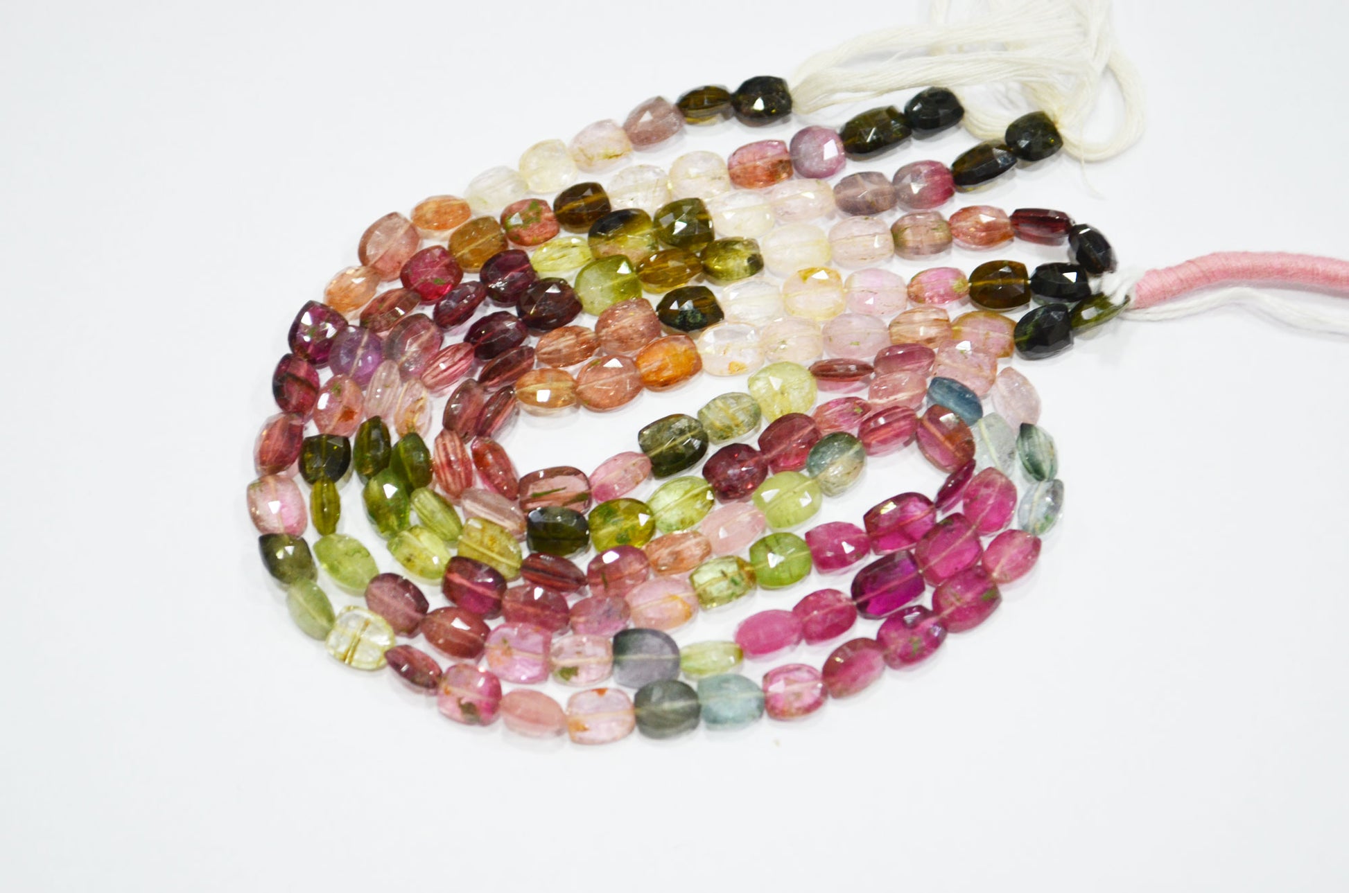 Natural Multi Tourmaline Fancy Shape Beads , Multi Tourmaline Faceted Beads , 15 Inches , 6x8 - 7x9 mm , 19451A
