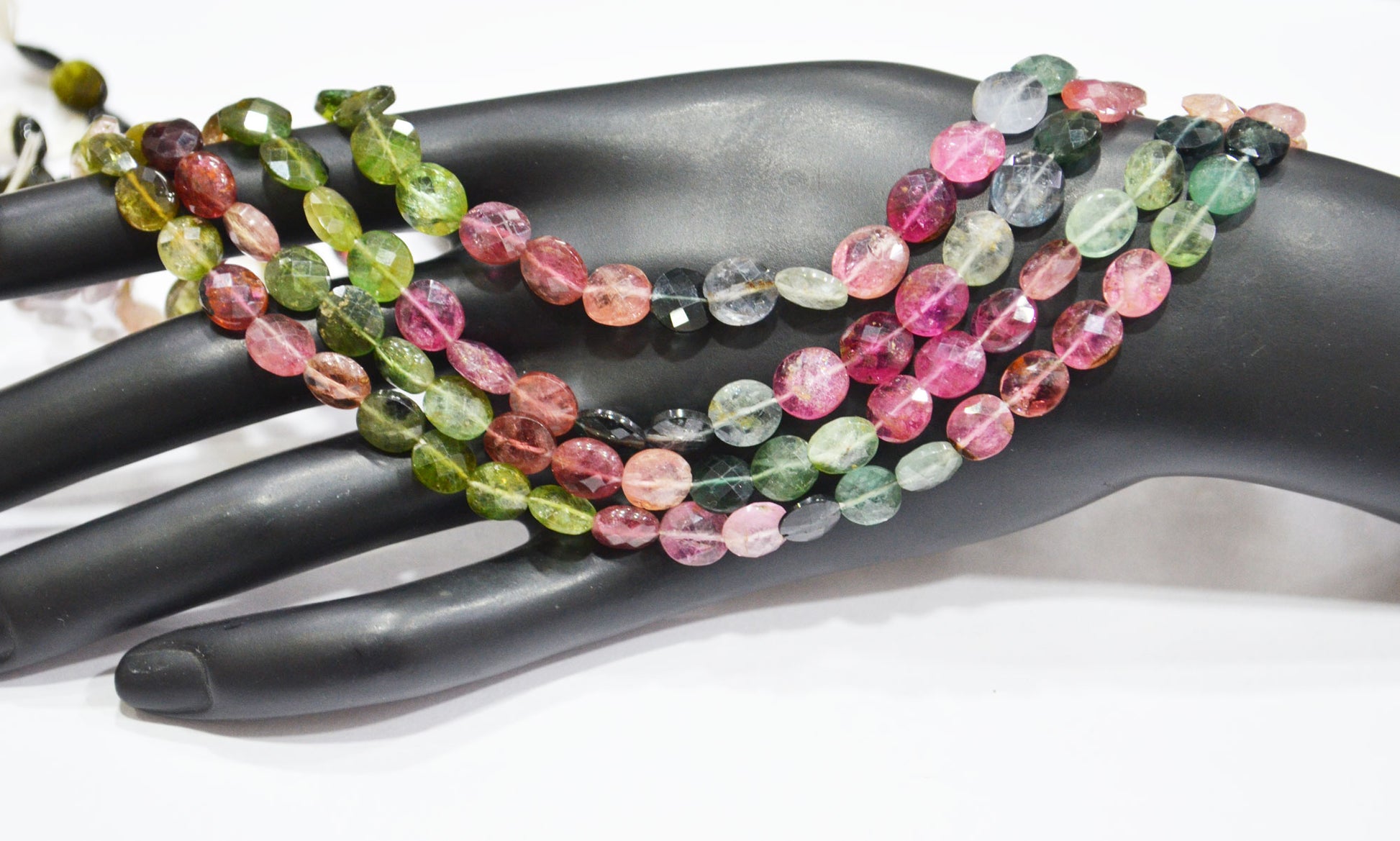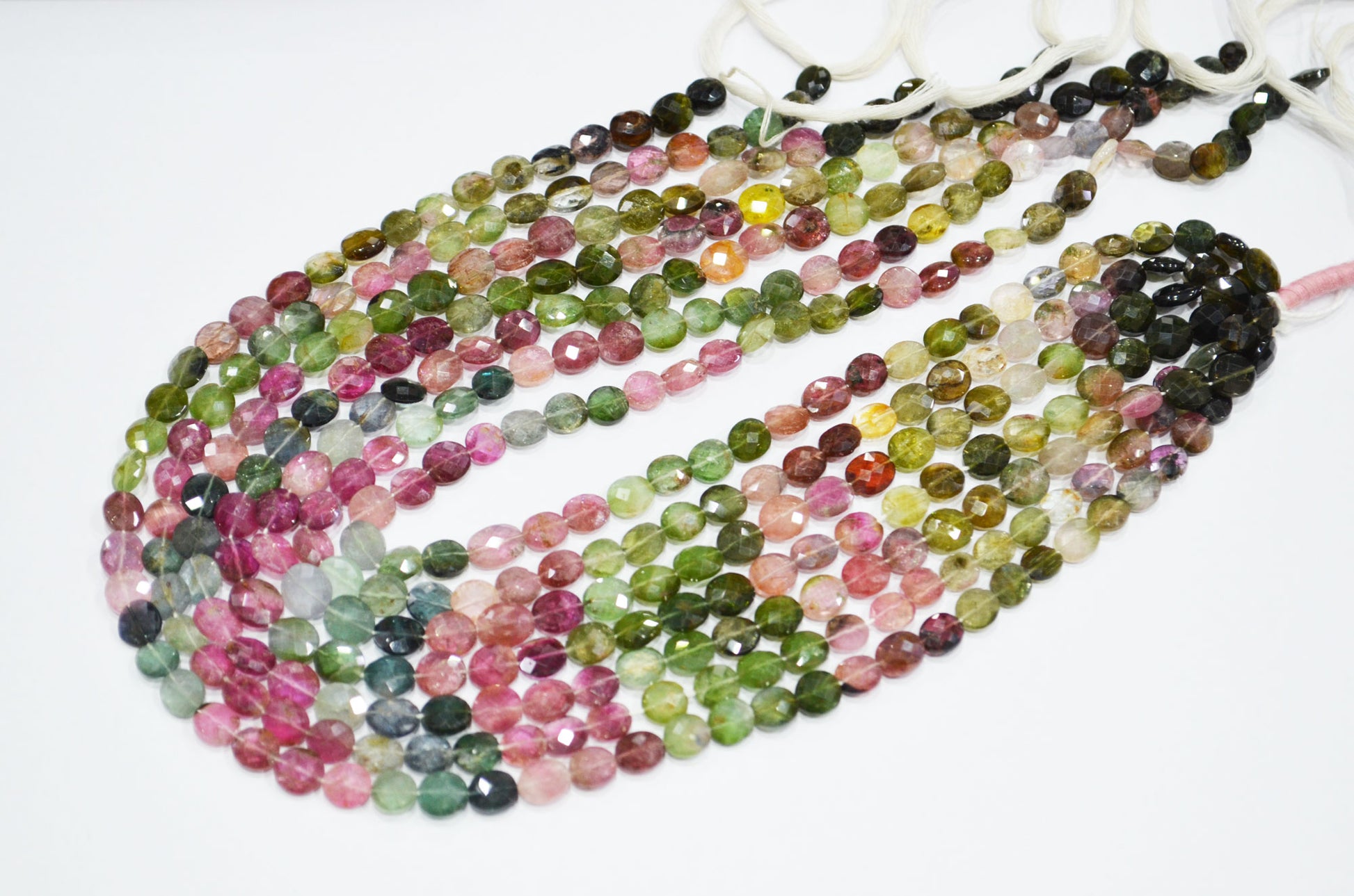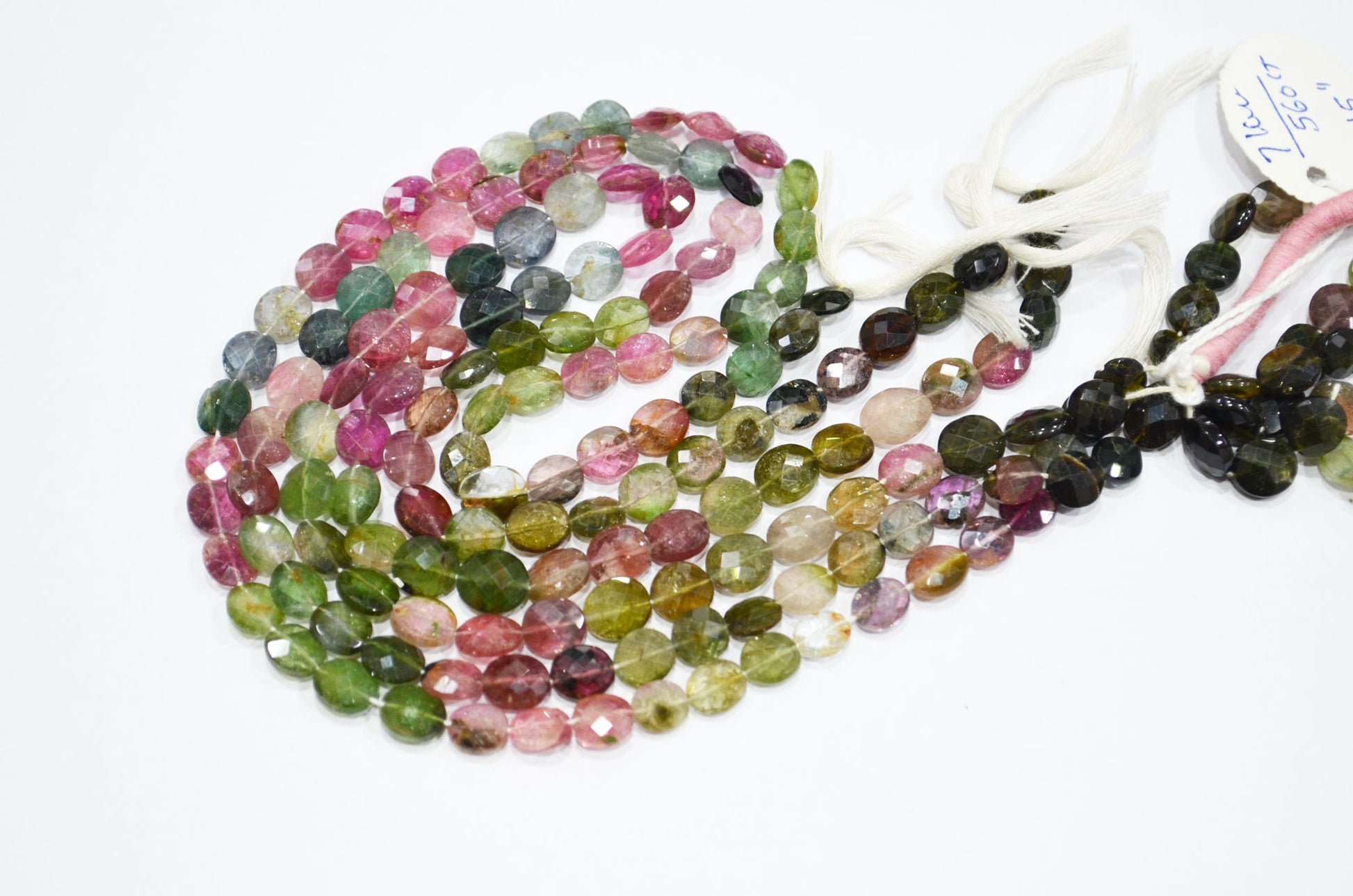 Natural Multi Tourmaline Oval Shape Beads , Multi Tourmaline Faceted Beads , Sold By Strand , 15 Inches , 6.50x7 - 7x8 mm , 19449