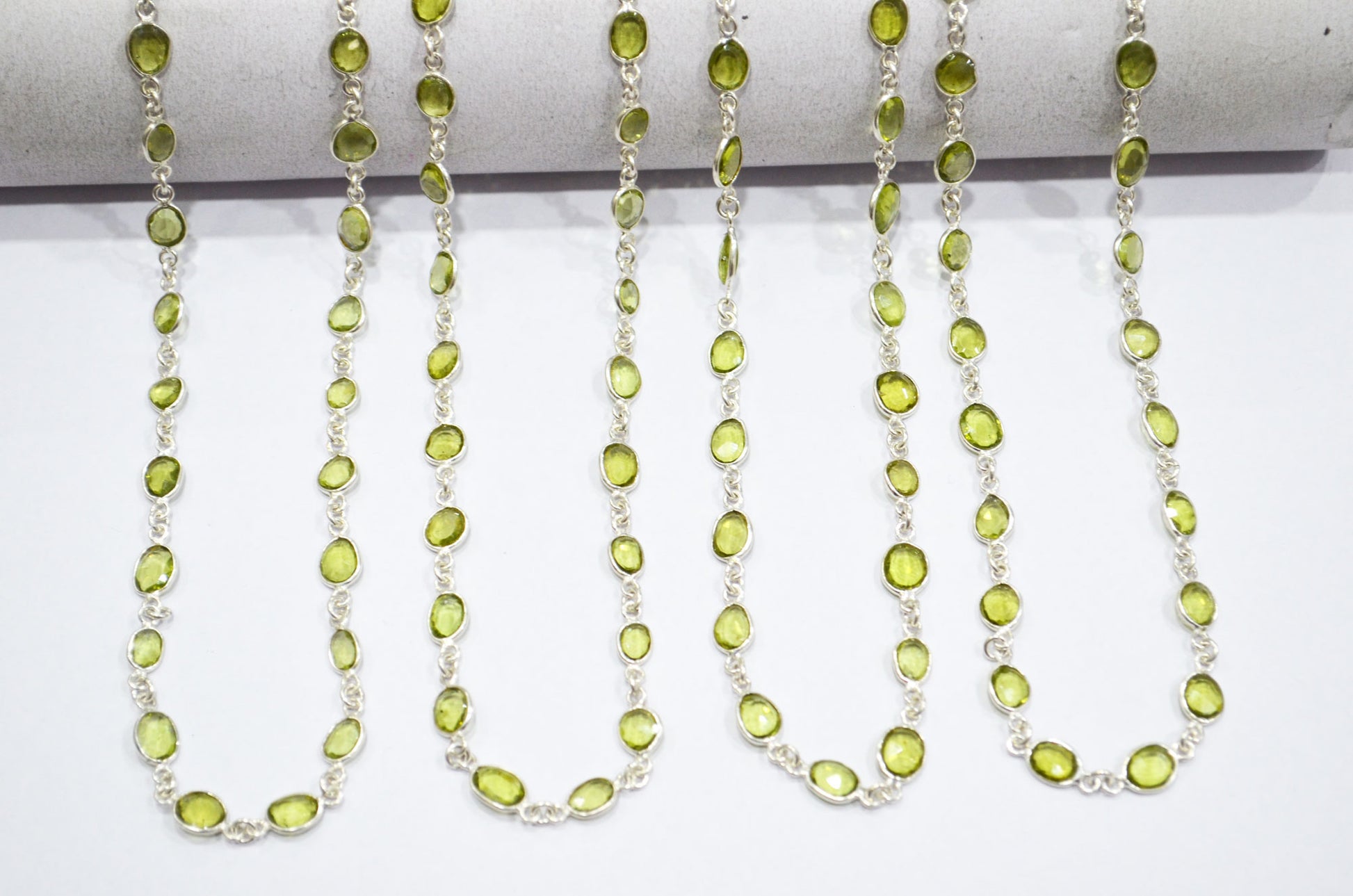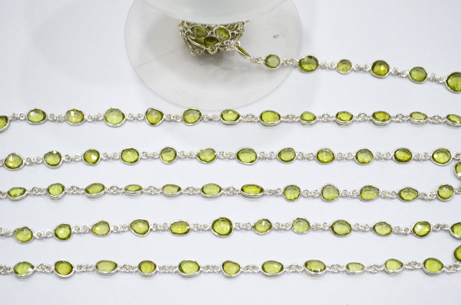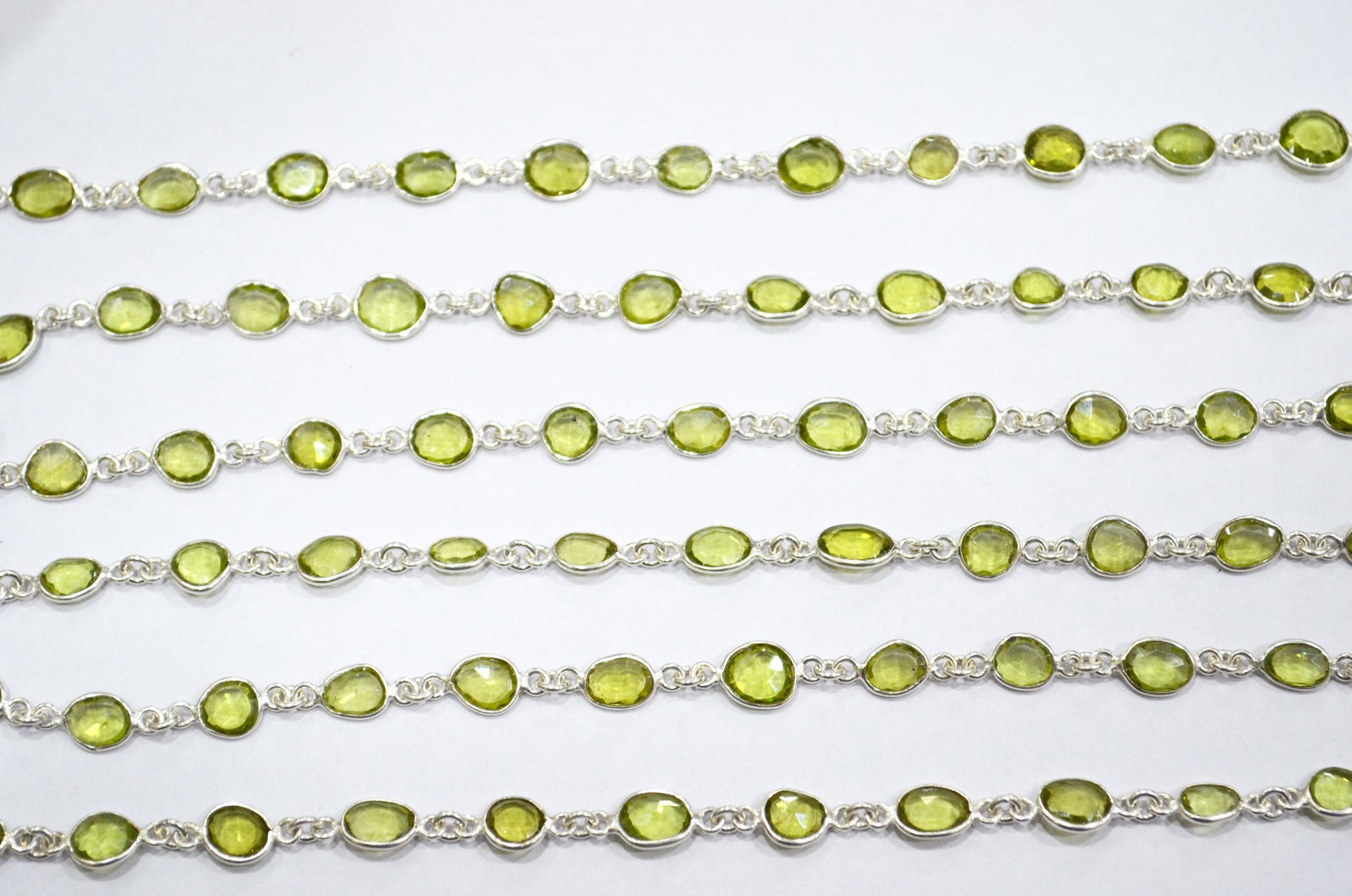 Natural Peridot Faceted Free Form Shape Connector Chain , Peridot Slice Shape Bezel Link Chain , 5 - 7 mm , RB-5912