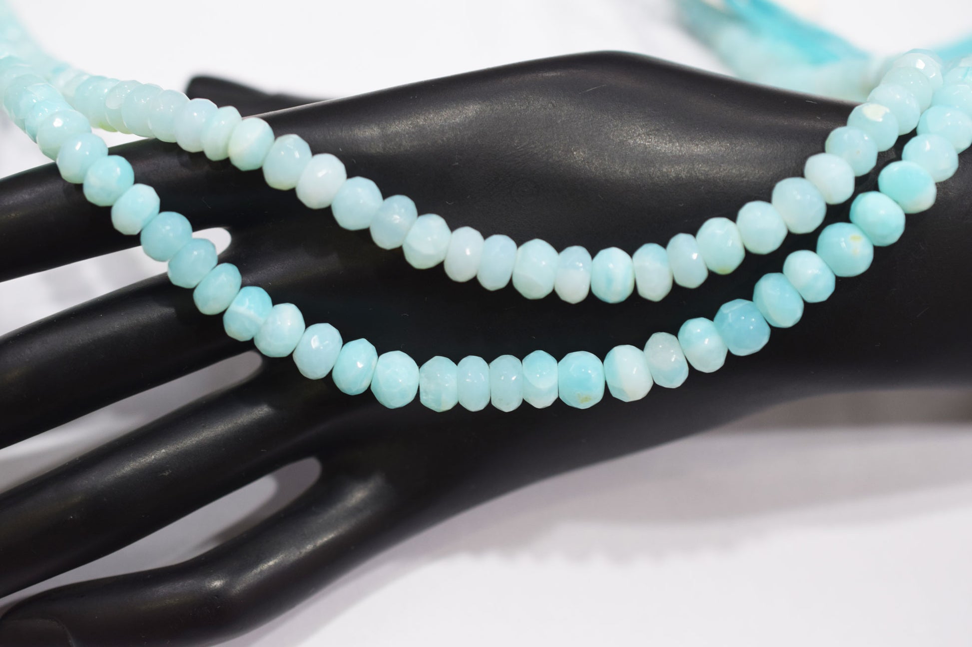 Natural Peruvian Blue Opal Rondelle Faceted Beads , Peruvian Blue Opal Rondelle Shape Beads , Sold By Strand , 6 - 7 mm , 13", Β 20486