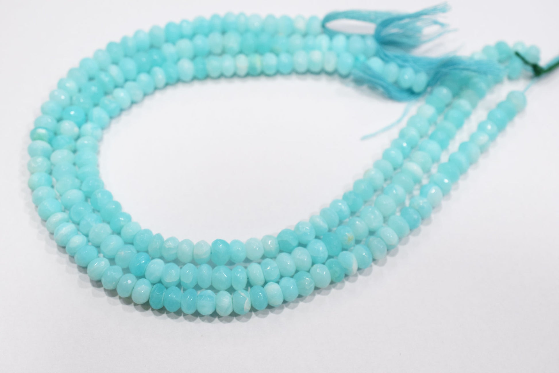 Natural Peruvian Blue Opal Rondelle Faceted Beads , Peruvian Blue Opal Rondelle Shape Beads , Sold By Strand , 7 - 7.50 mm , 13", Β 20483