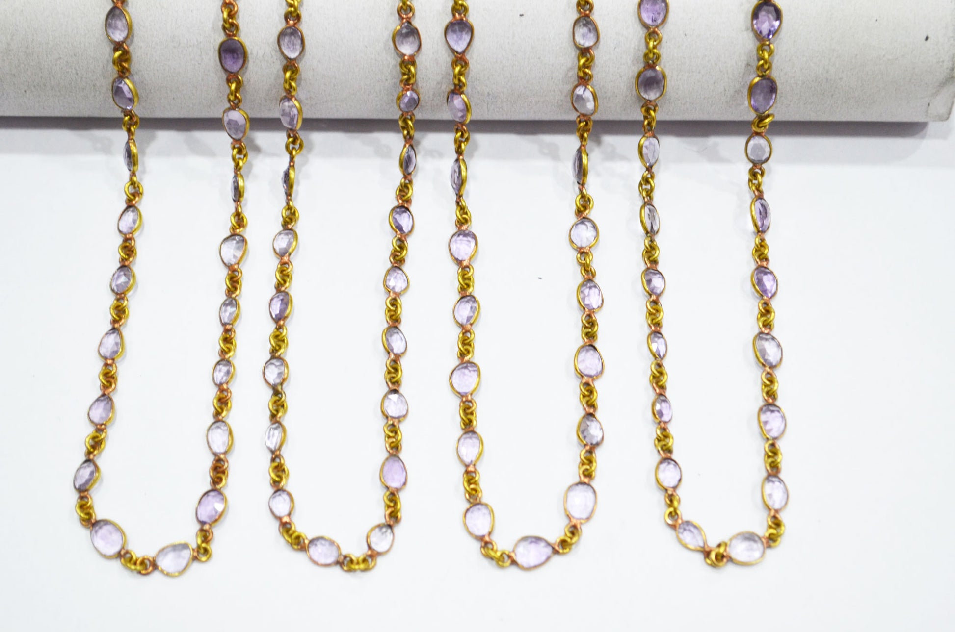 Natural Pink Amethyst Faceted Free Form Shape Connector Chain , Pink Amethyst Slice Shape Bezel Link Chain , 6 - 9 mm , RB-5915