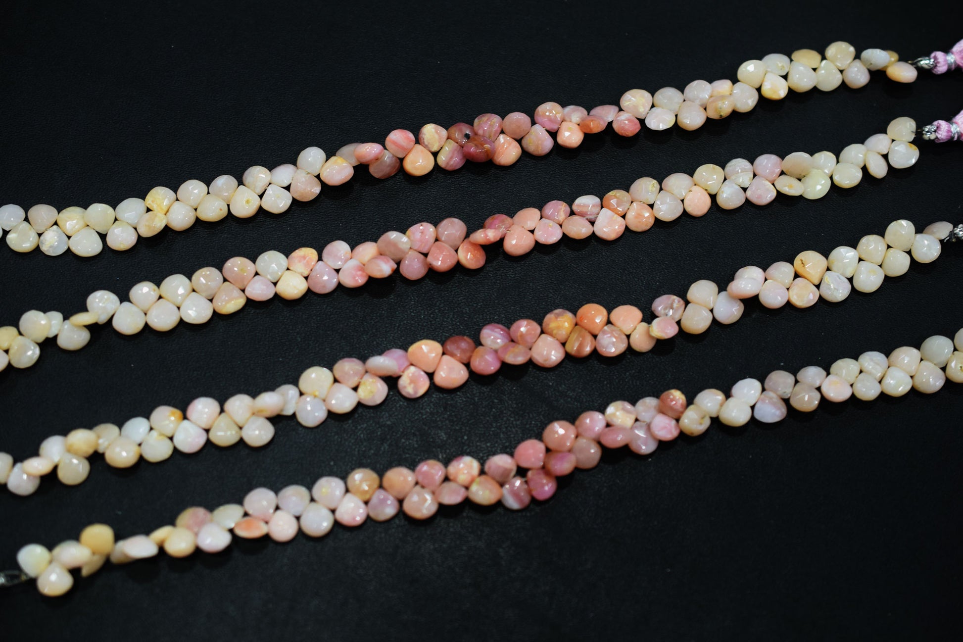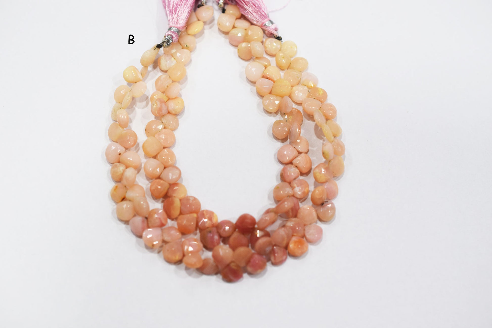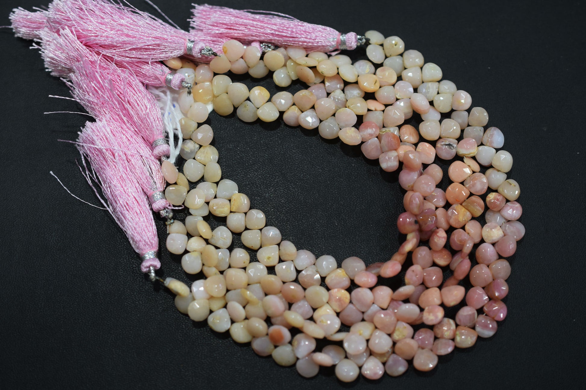 Natural Pink Opal Faceted Heart Shape Beads , Pink Opal Heart Shape Briolettes , Sold By Strand , 6.50x6.50 - 8x8 mm , 8" , 19862