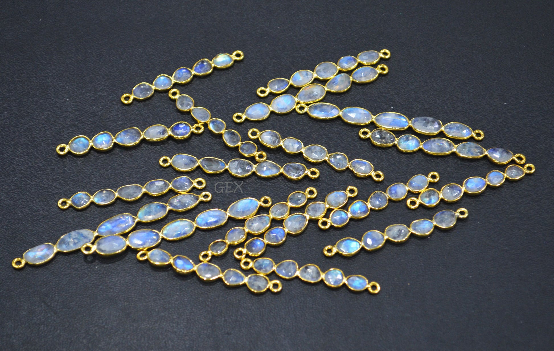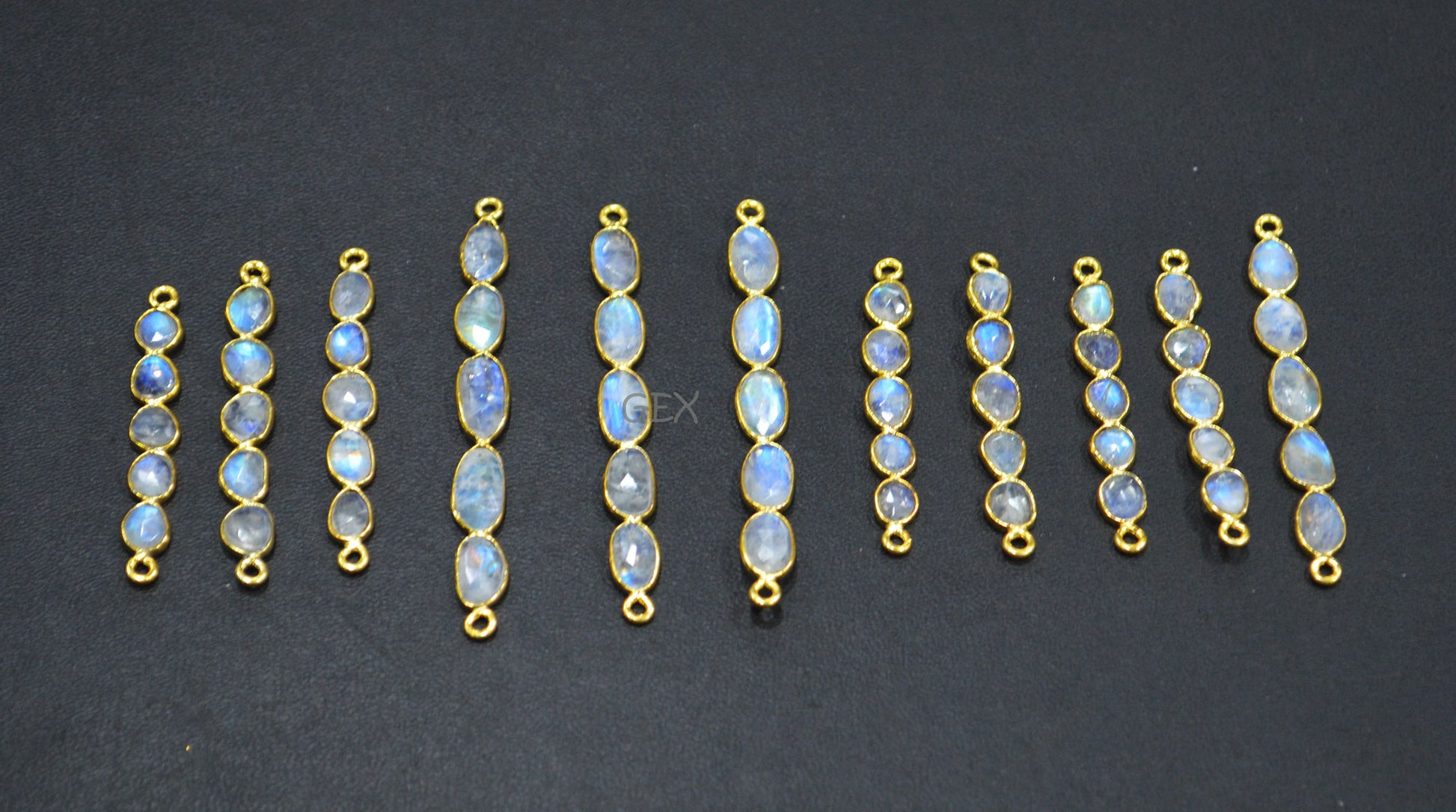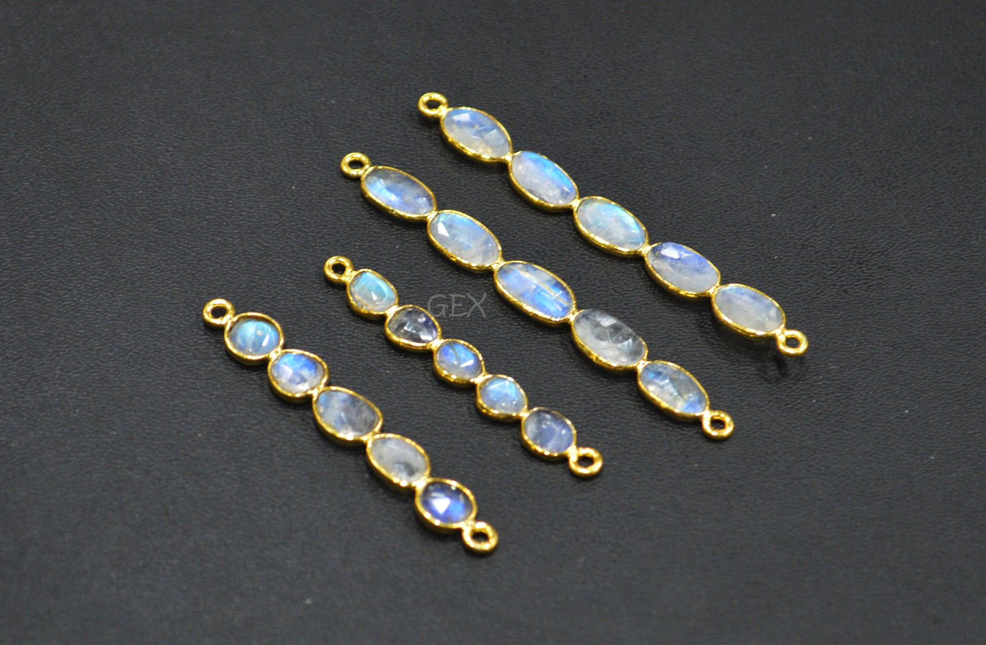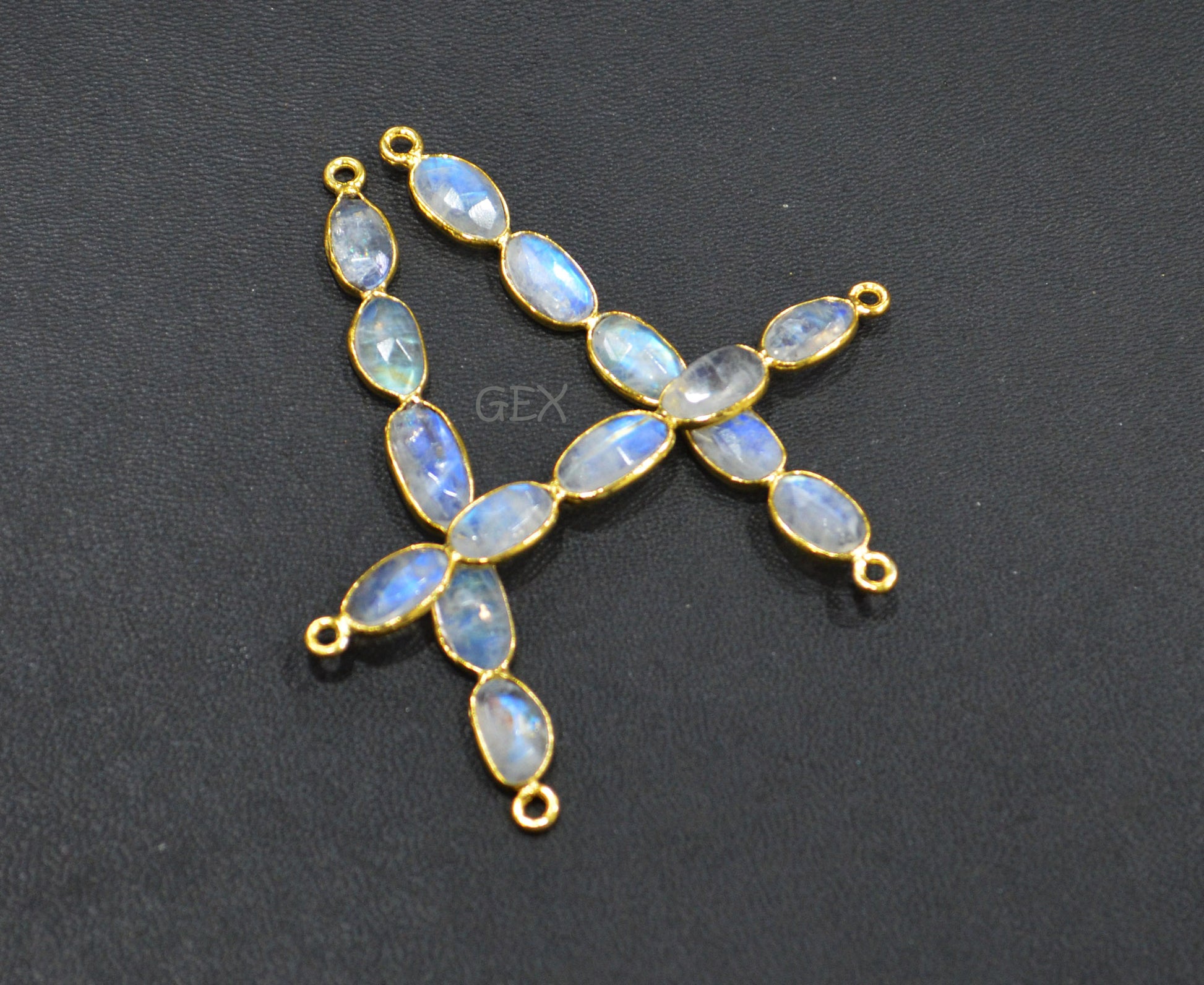 Natural Rainbow Moonstone Faceted Bar Connector , Natural Rainbow Moonstone Double Bail Bezel Charm Connector , Sold By Piece , 37 - 60 mm , R-017