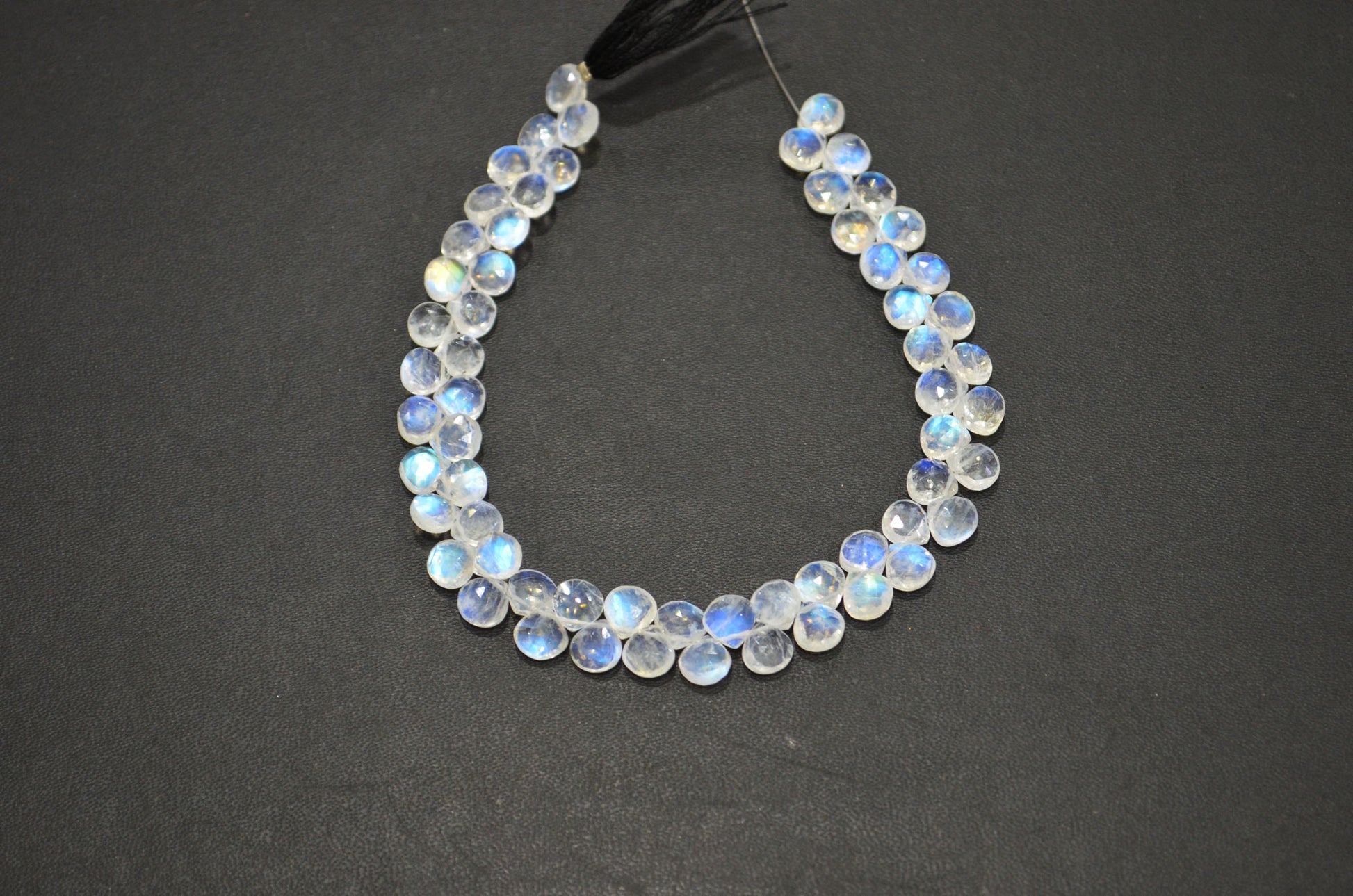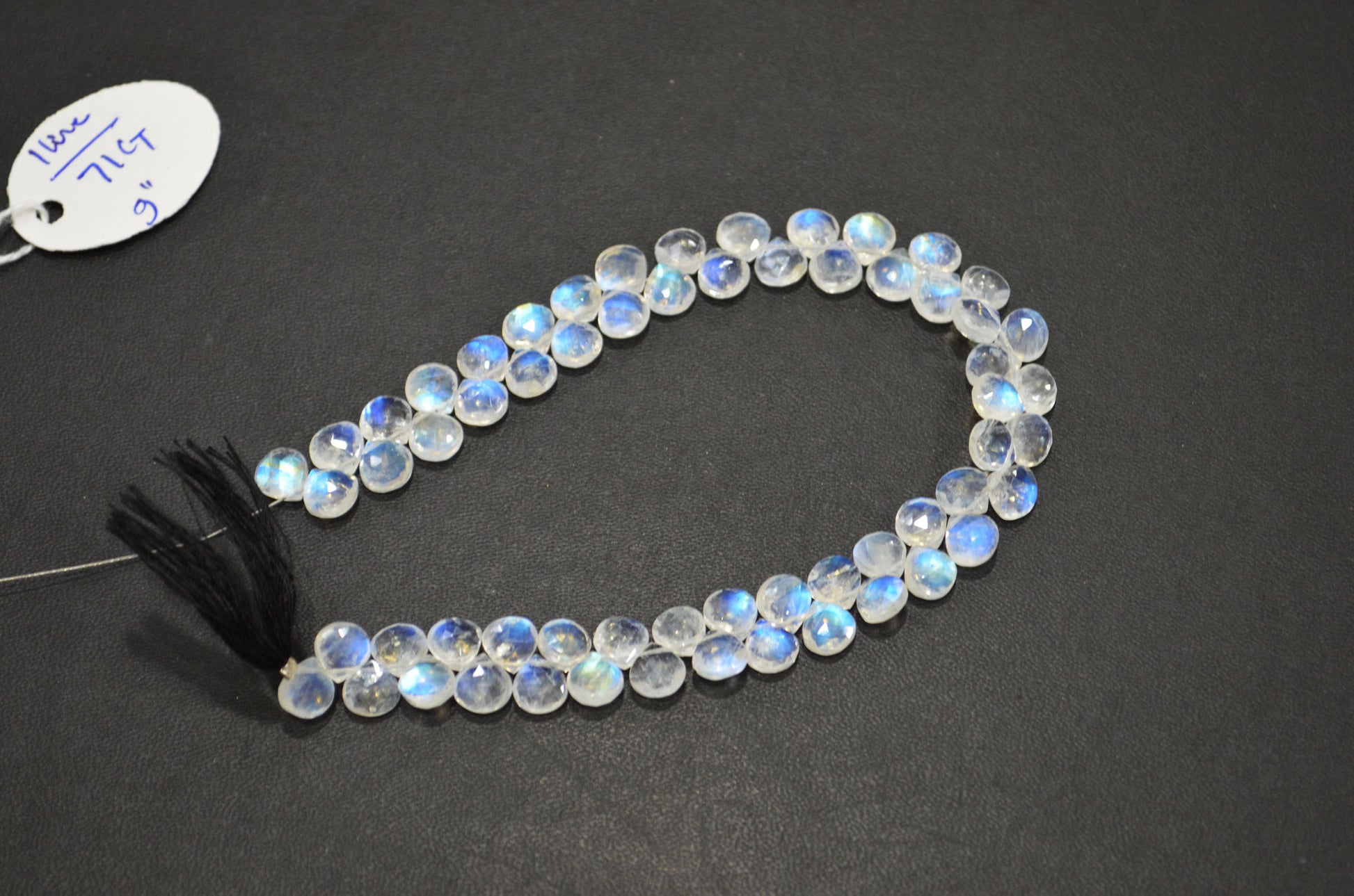 Rainbow Moonstone Heart Shape Beads , Natural Rainbow Moonstone Faceted Briolettes , 9 Inches , 6.50x6.50 mm , 32220