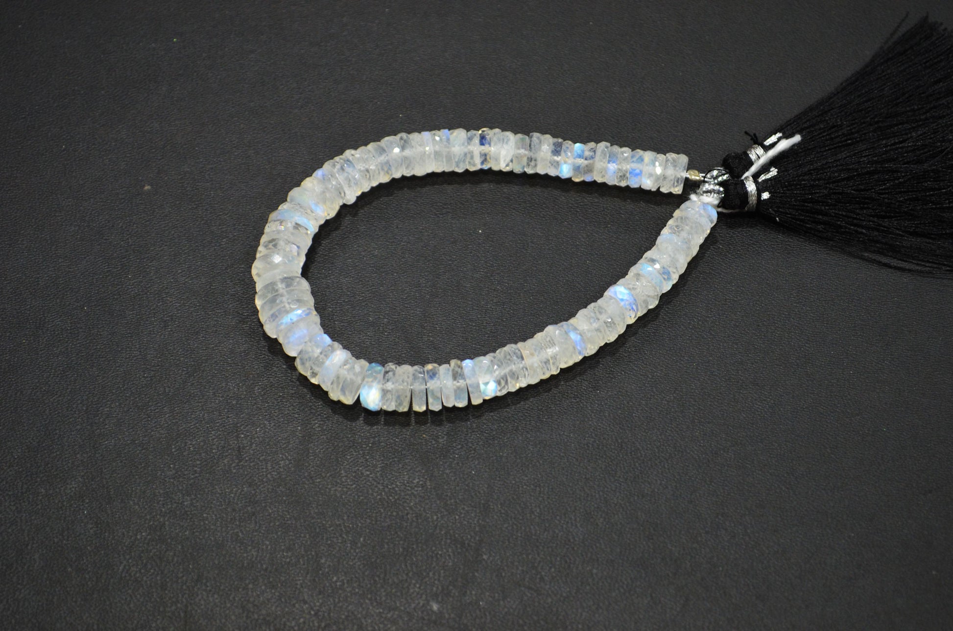 Natural Rainbow Moonstone Heishi Tyre Shape Beads , Natural Rainbow Moonstone Faceted Spacer Beads , 7 Inches , 7 - 10 mm , 32241