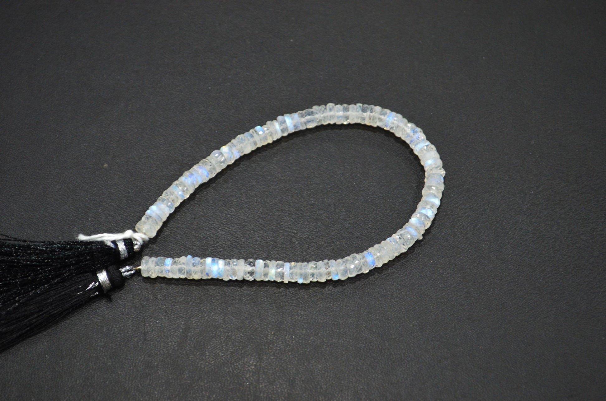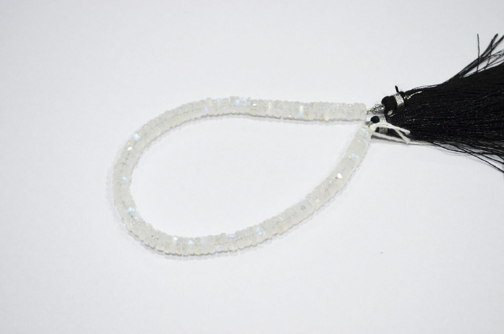 Natural Rainbow Moonstone Heishi Tyre Shape Beads , Natural Rainbow Moonstone Faceted Spacer Beads , 8 Inches , 5.45 - 6 mm , 32243