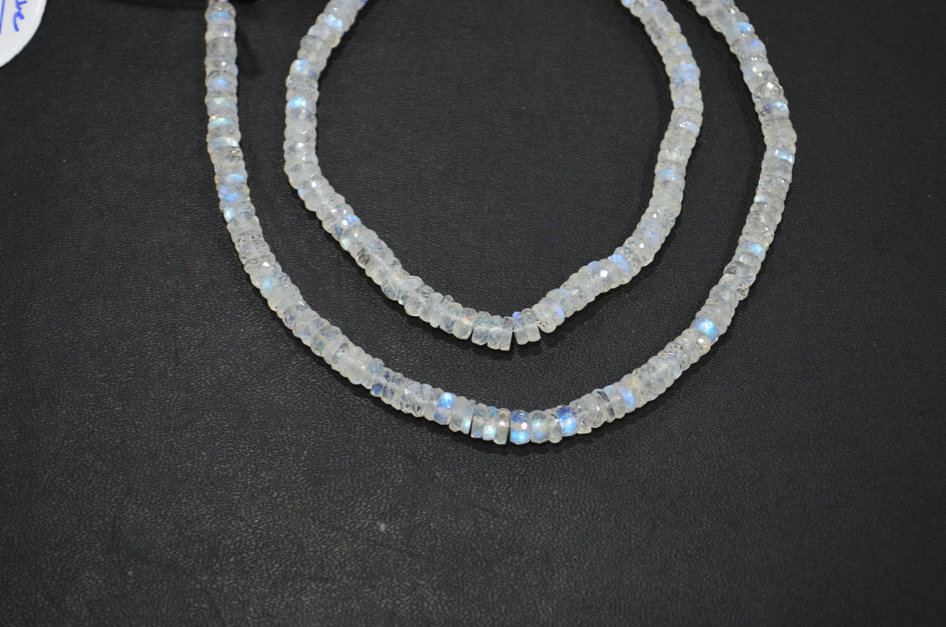 Natural Rainbow Moonstone Heishi Tyre Shape Beads , Natural Rainbow Moonstone Faceted Spacer Beads , Sold By Strand , 8 Inches , 5 mm , 32231