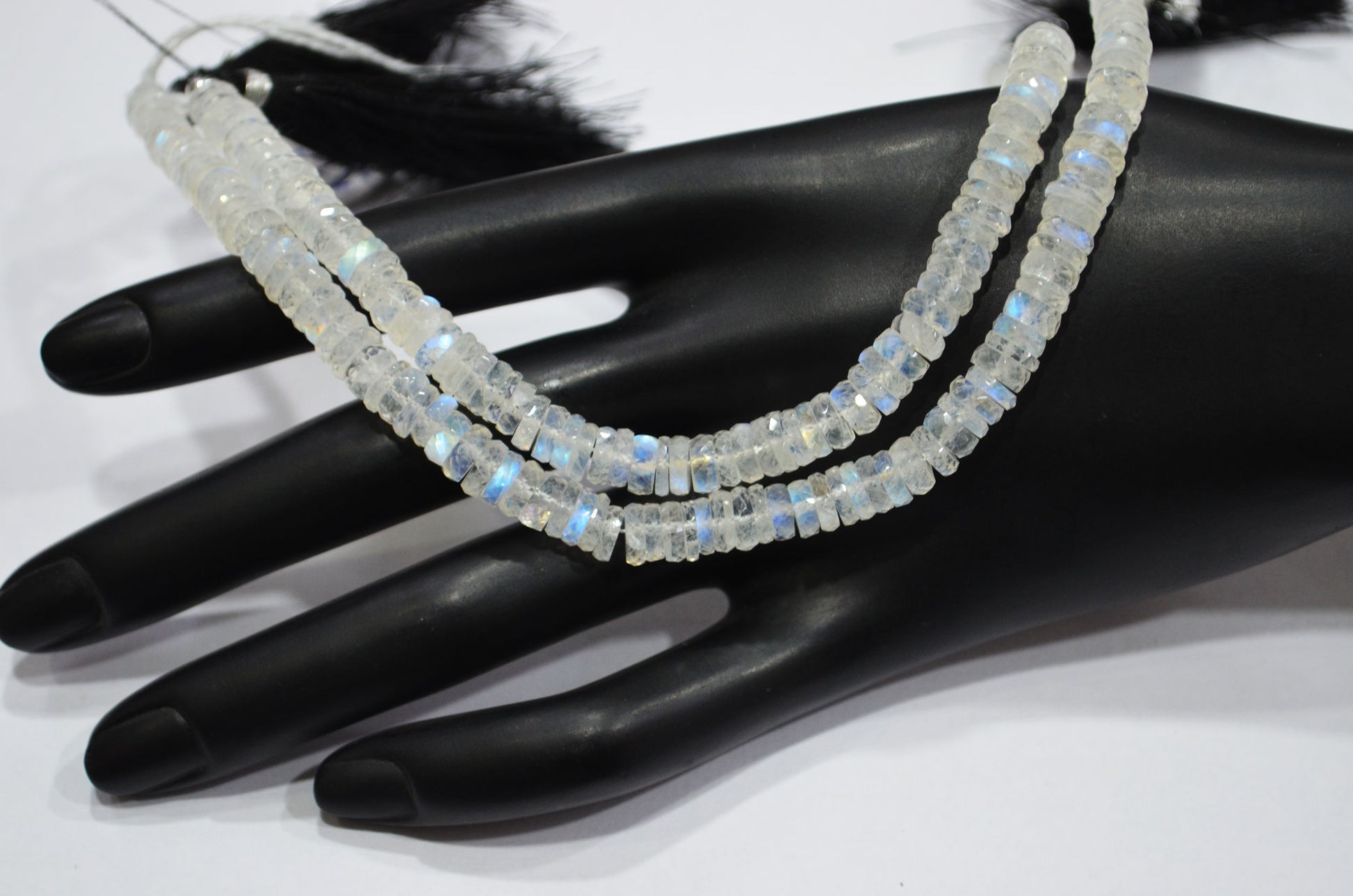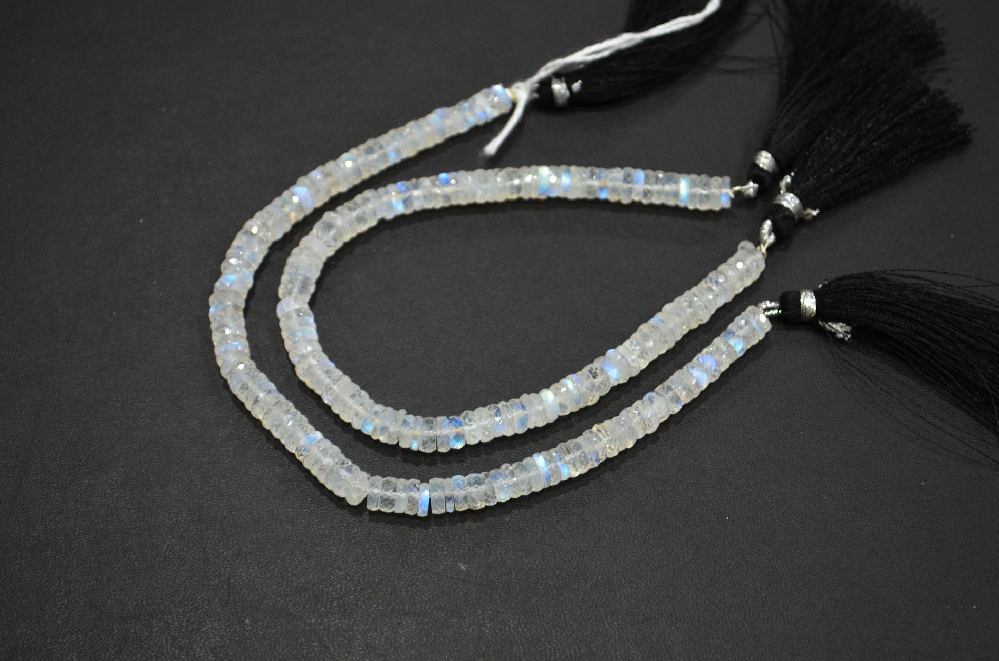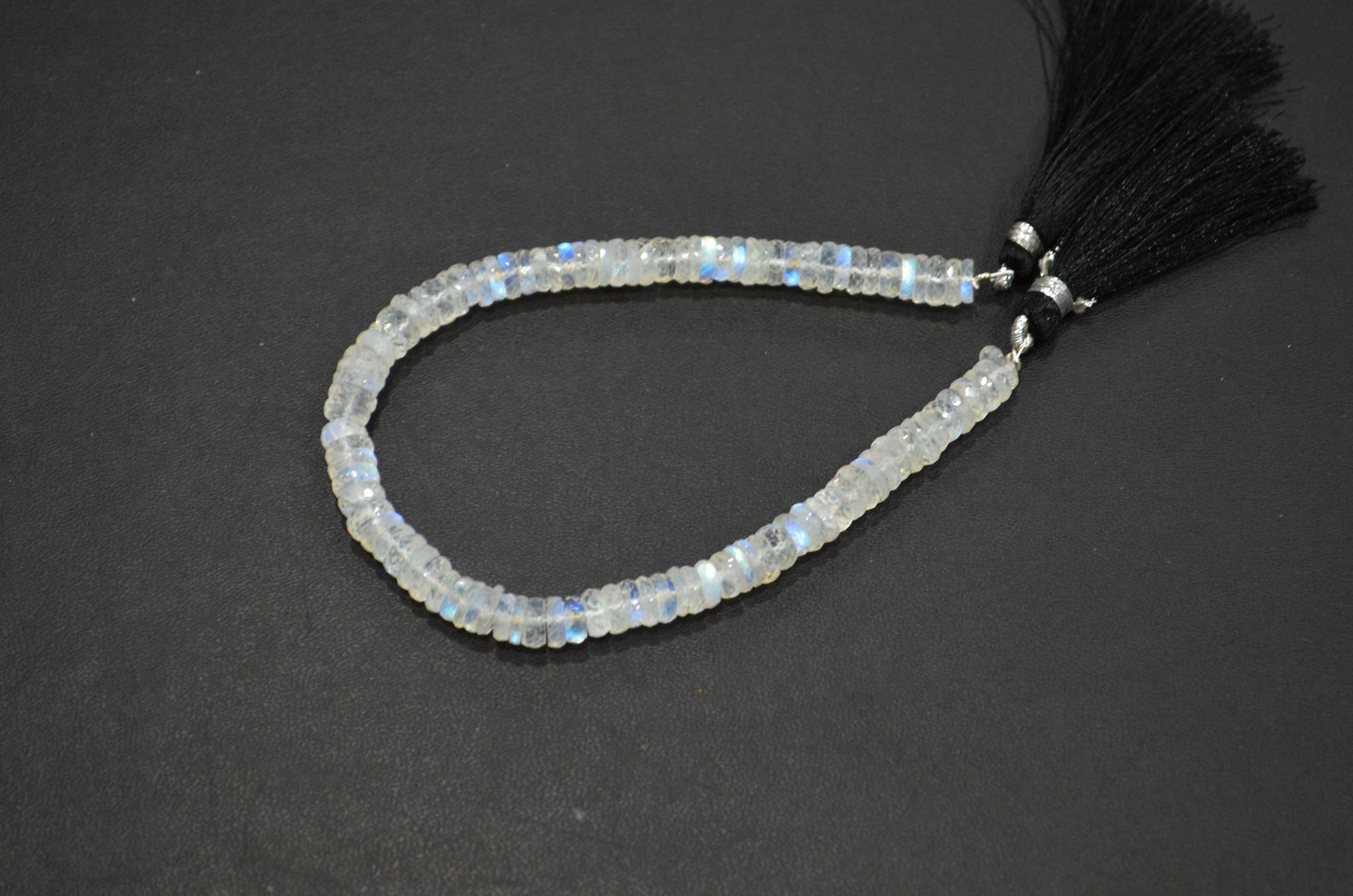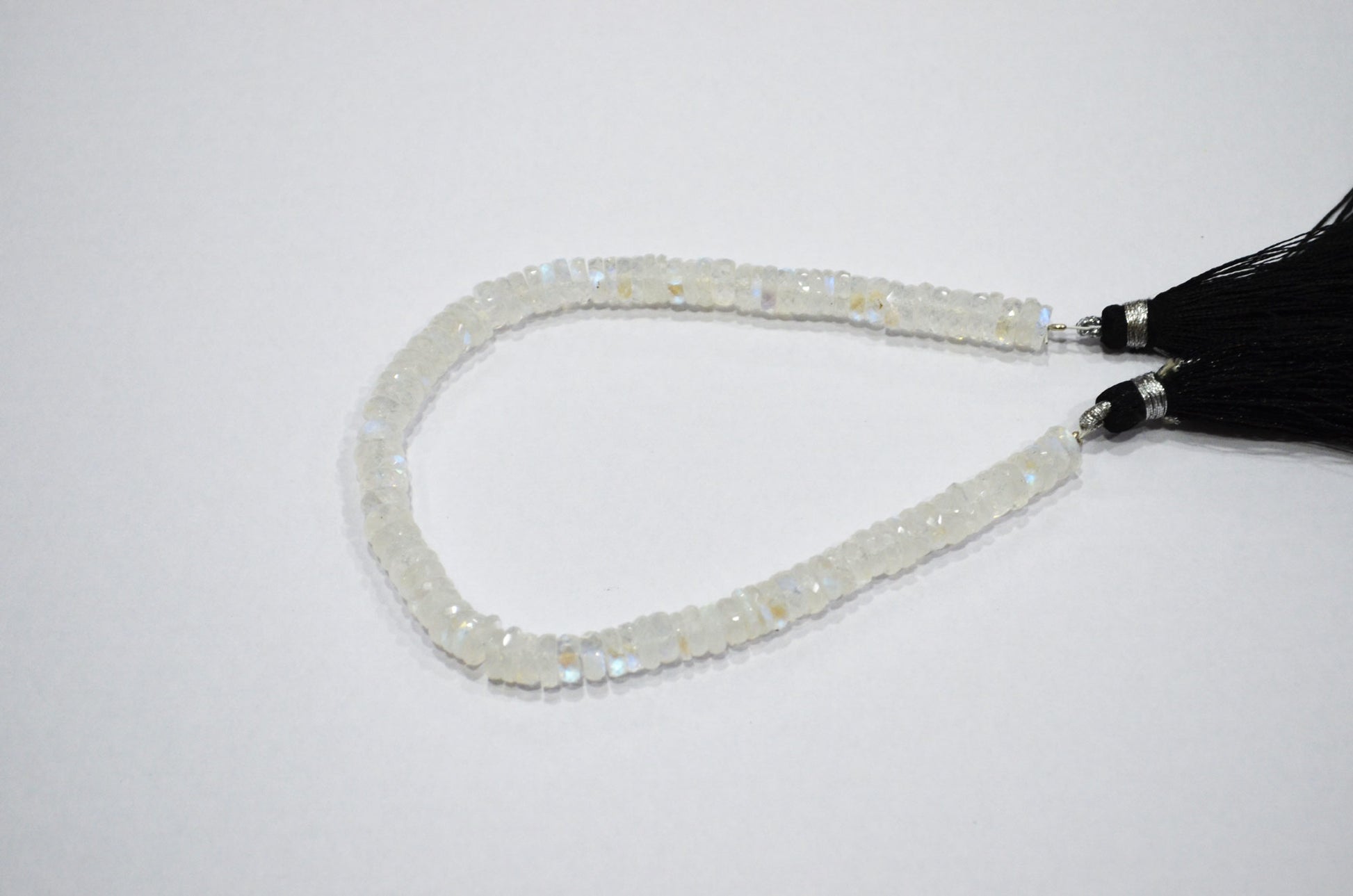 Natural Rainbow Moonstone Heishi Tyre Shape Beads , Natural Rainbow Moonstone Faceted Spacer Beads , Sold By Strand , 8 Inches , 6.25 mm , 32237