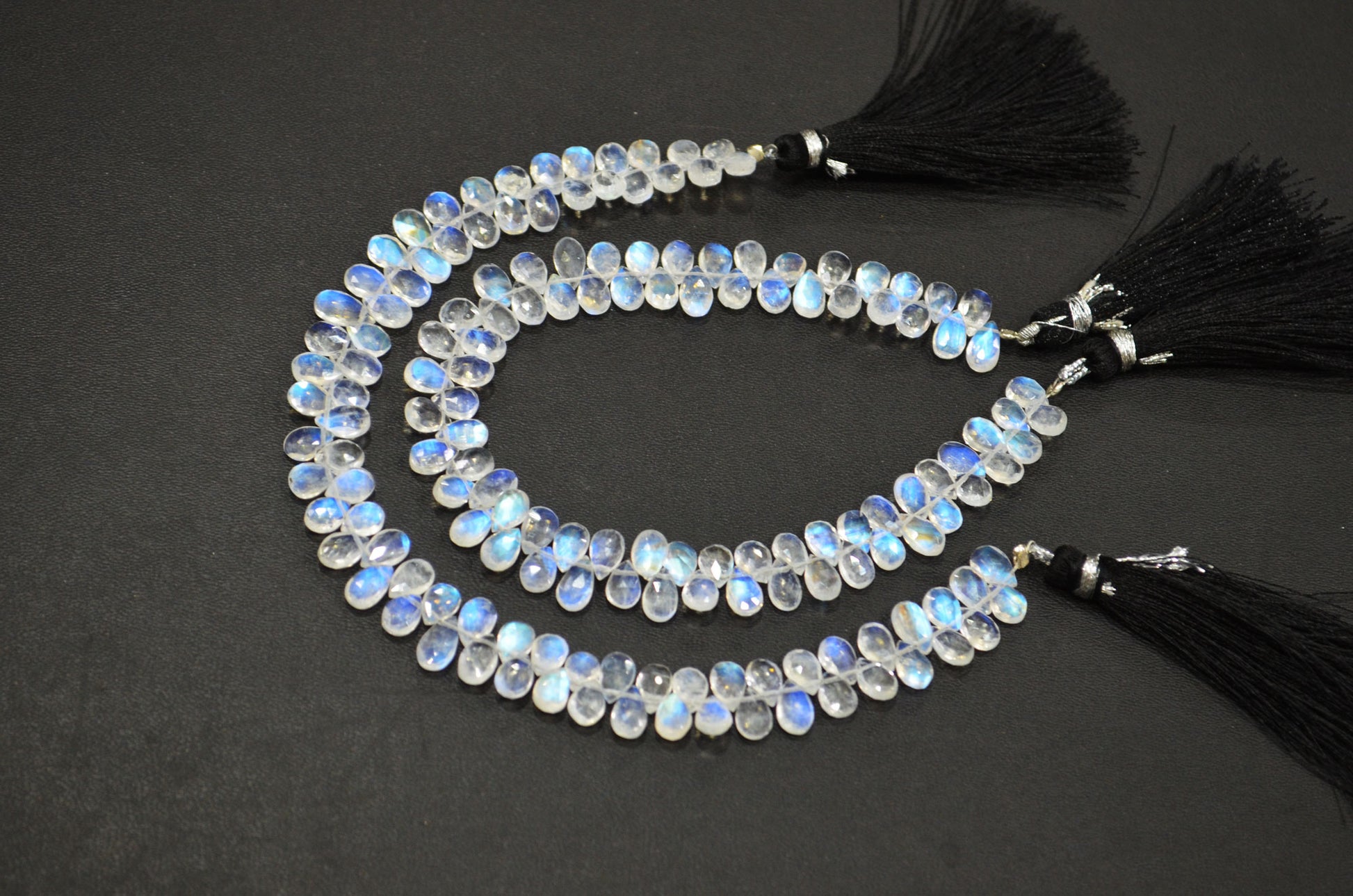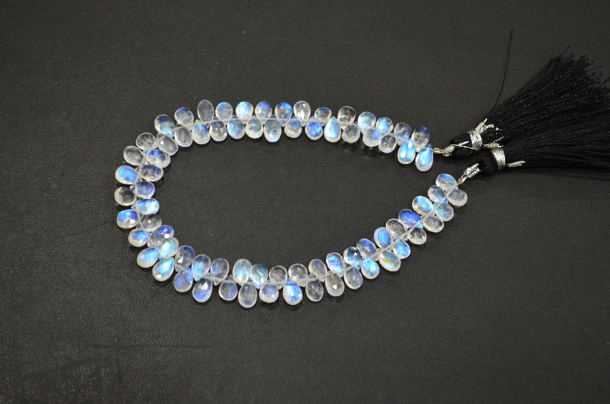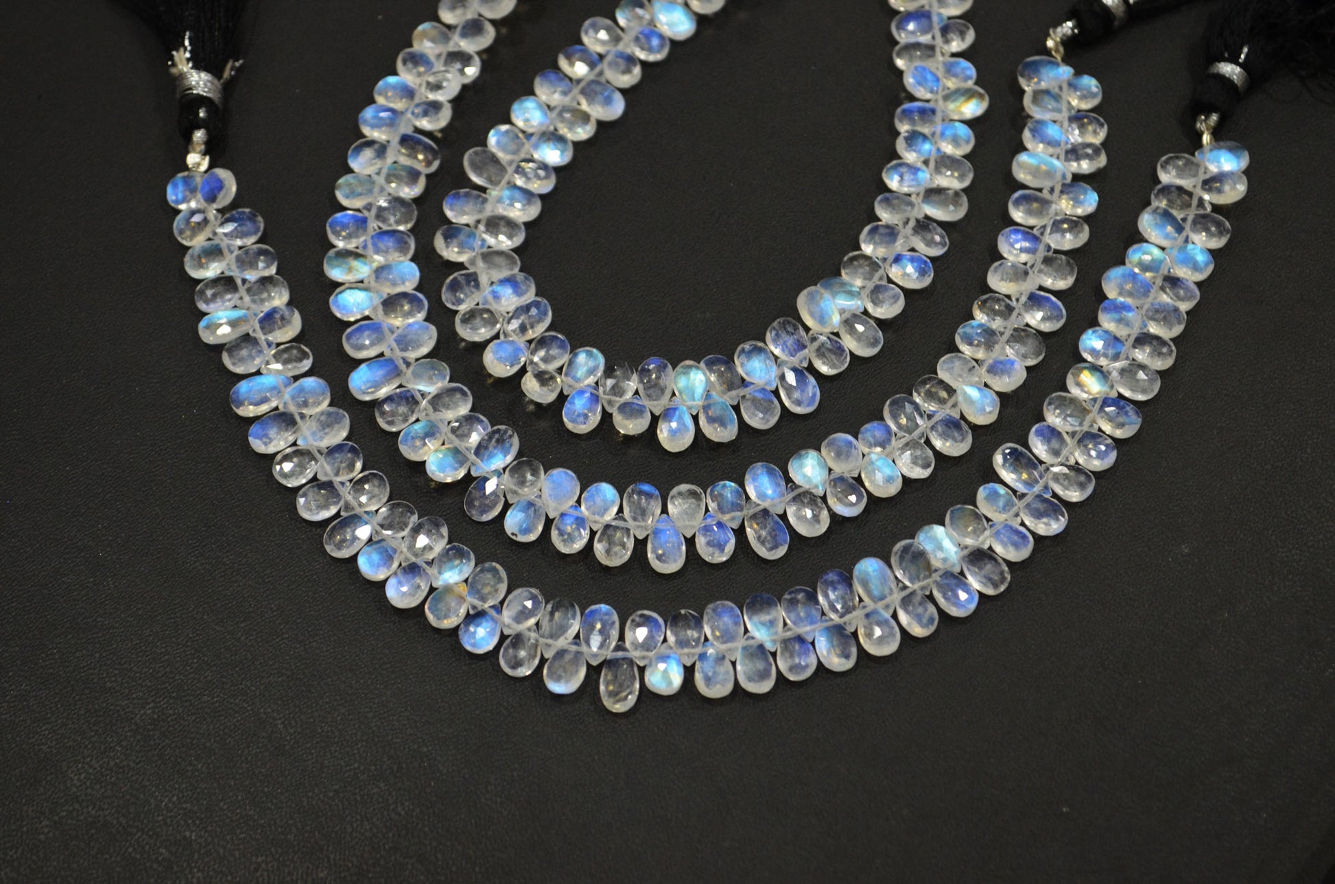 Rainbow Moonstone Pear Shape Beads , Natural Rainbow Moonstone Faceted Briolettes , Sold By Strand , 8 Inches , 4.50x7 - 4.50x8 mm , 32211