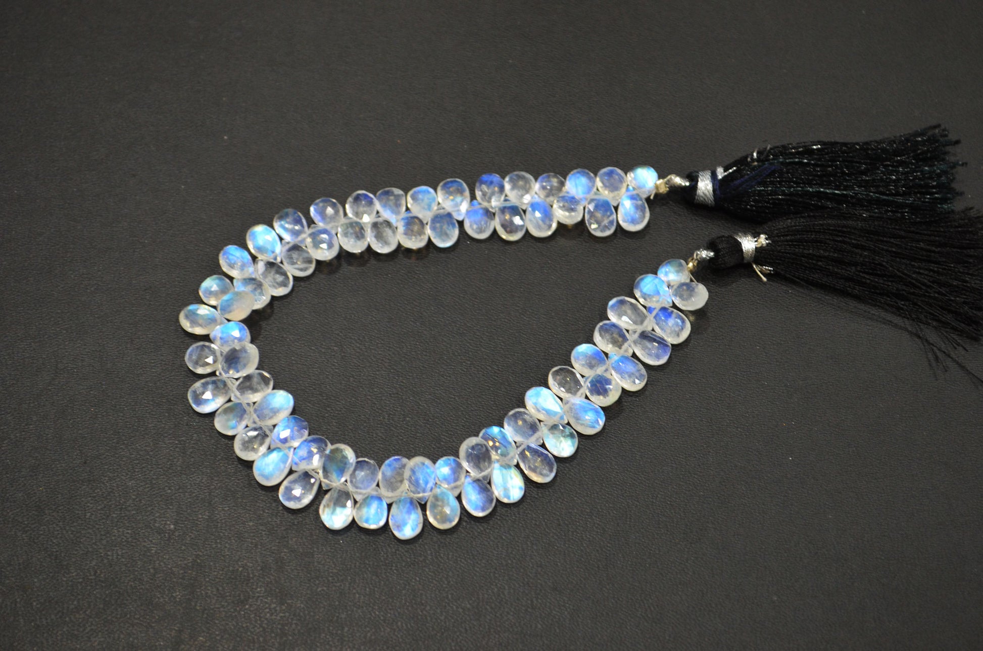 Rainbow Moonstone Pear Shape Beads , Natural Rainbow Moonstone Faceted Briolettes , Sold By Strand , 8 Inches , 5x8 - 5.50x9 mm , 32227