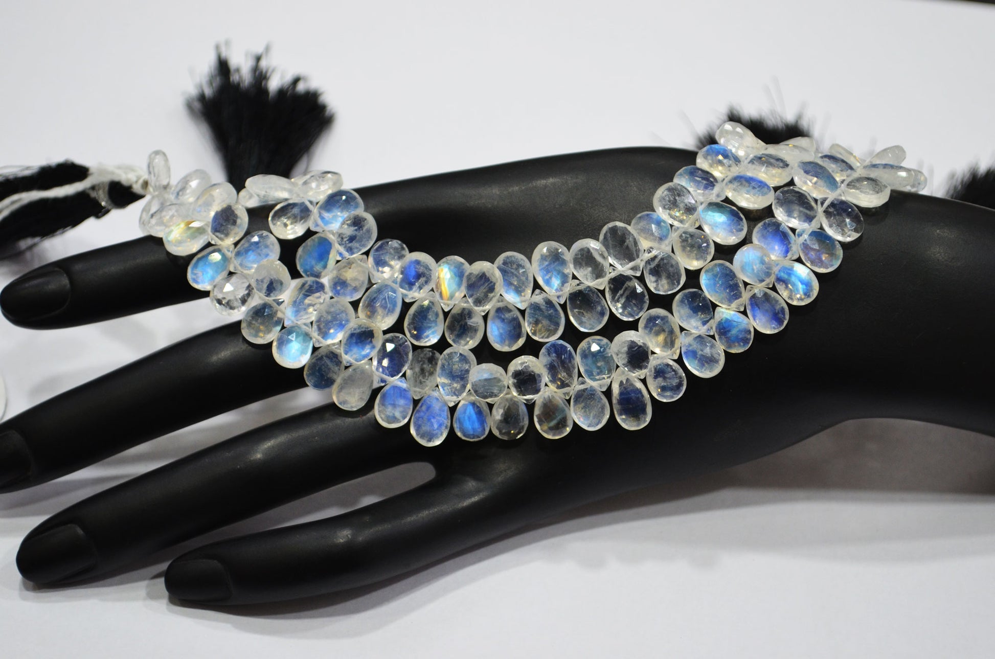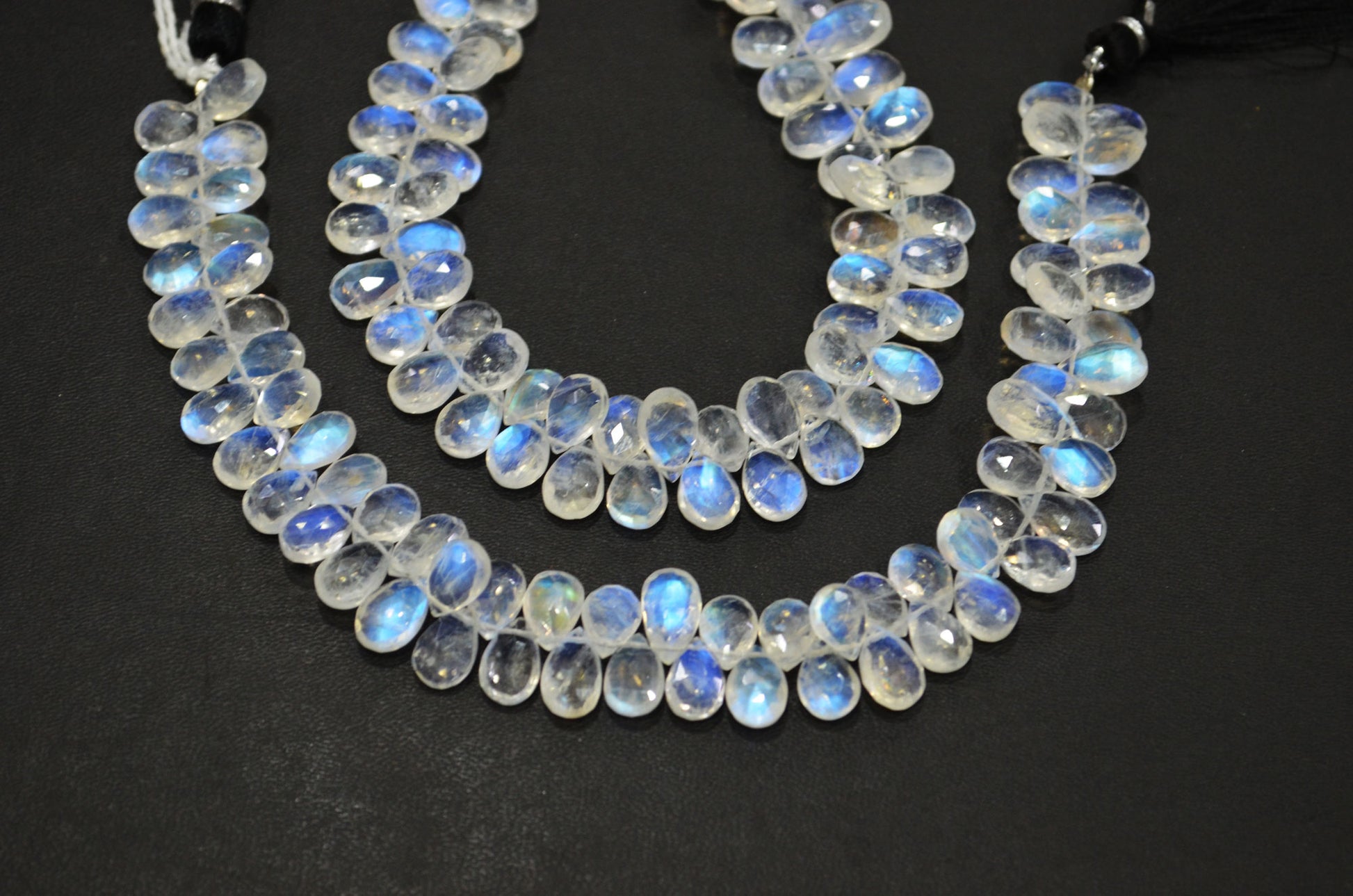 Rainbow Moonstone Pear Shape Beads , Natural Rainbow Moonstone Faceted Briolettes , Sold By Strand , 8 Inches , 6x8 - 6.50x10 mm , 32213
