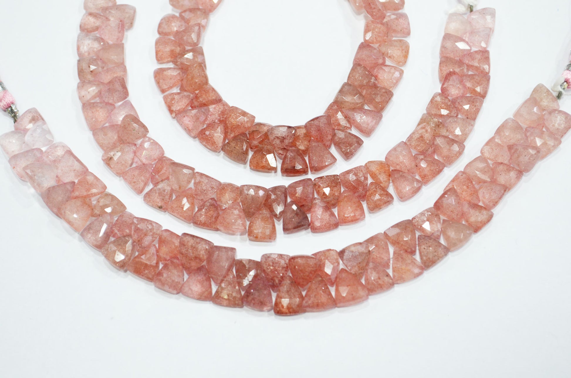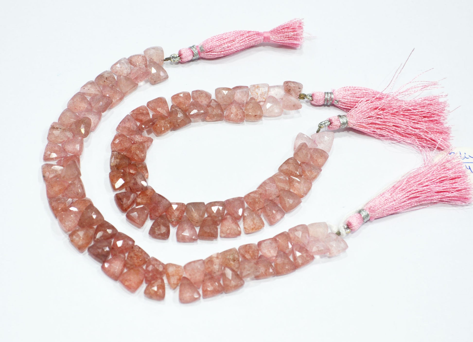 Natural Red Strawberry Trillion Shape Beads , Red Strawberry Faceted Briolettes , Sold By Strand , 8 Inches , 8x9 - 9x10 mm , 19455