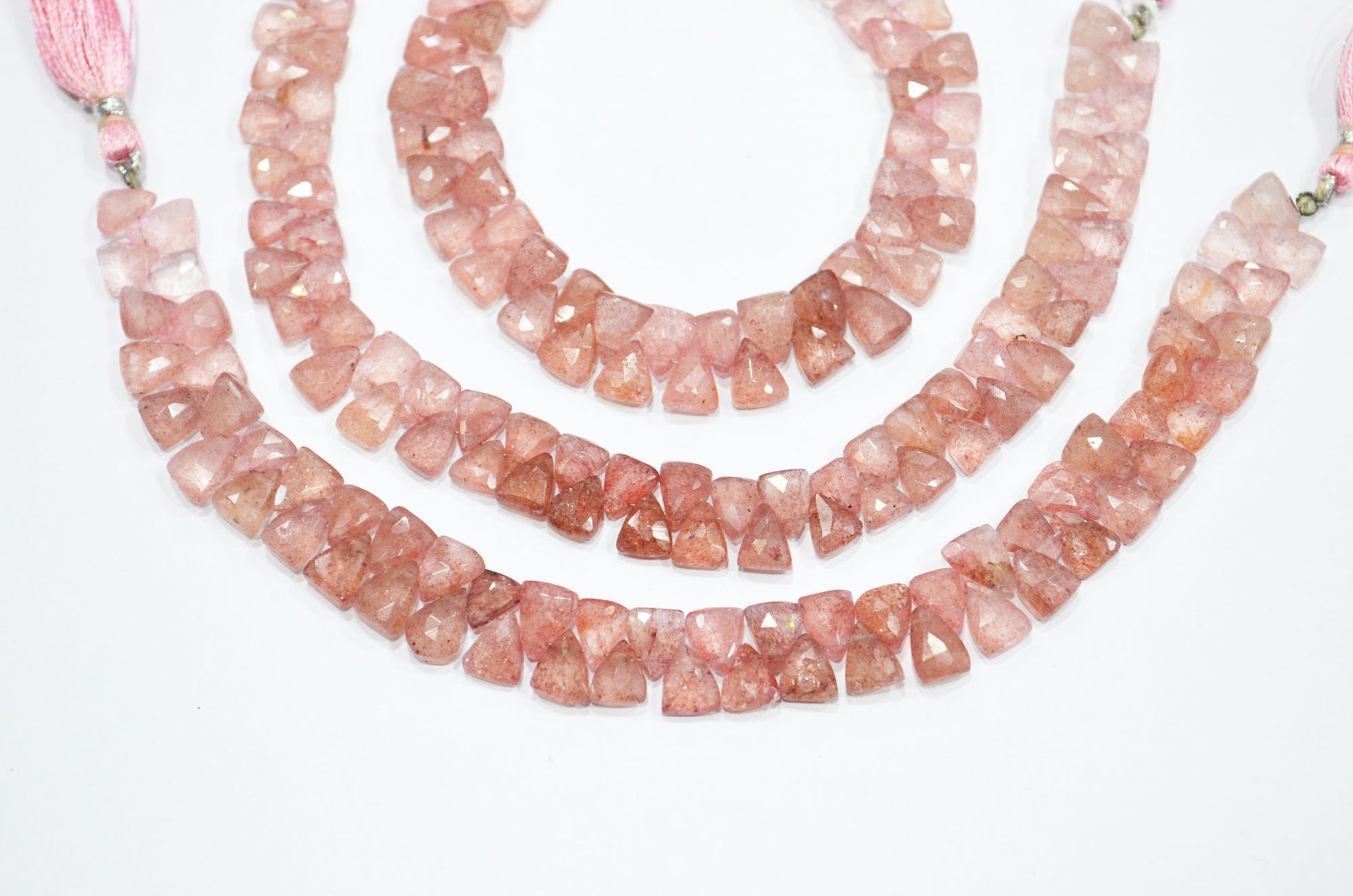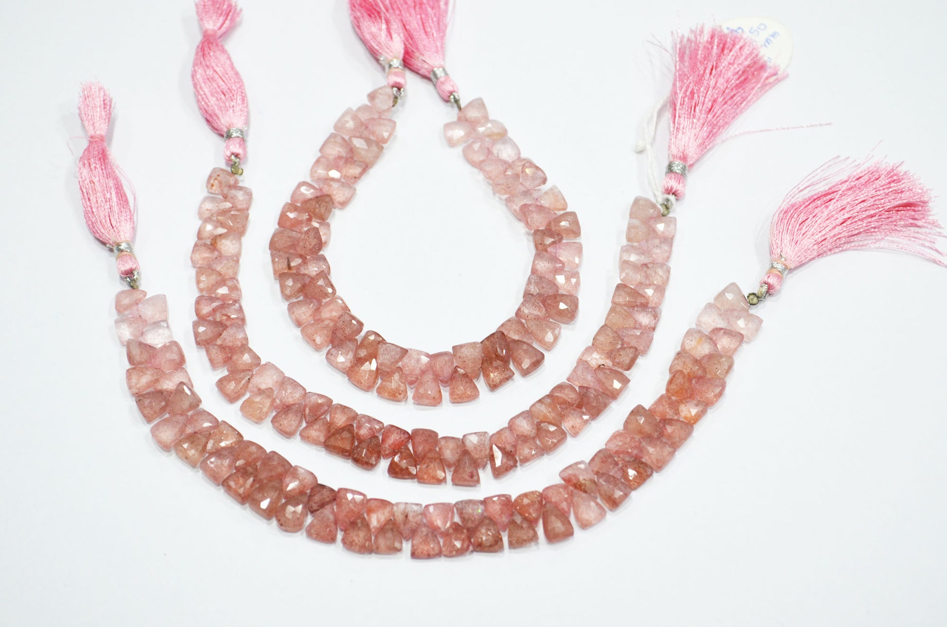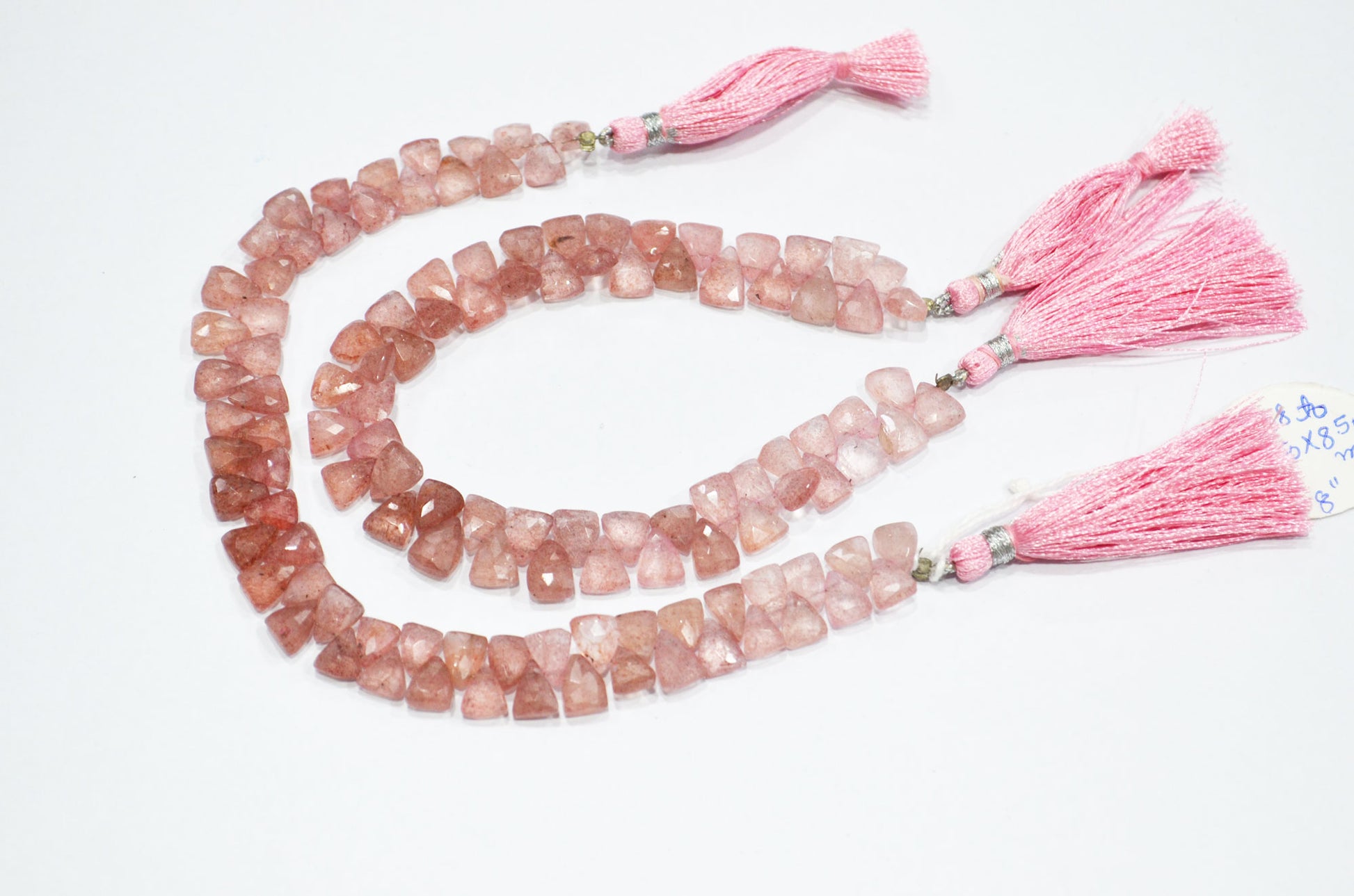 Natural Red Strawberry Trillion Shape Beads , Red Strawberry Faceted Briolettes , Sold By Strand , 8 Inches , 6x8 - 7x9 mm , 19454