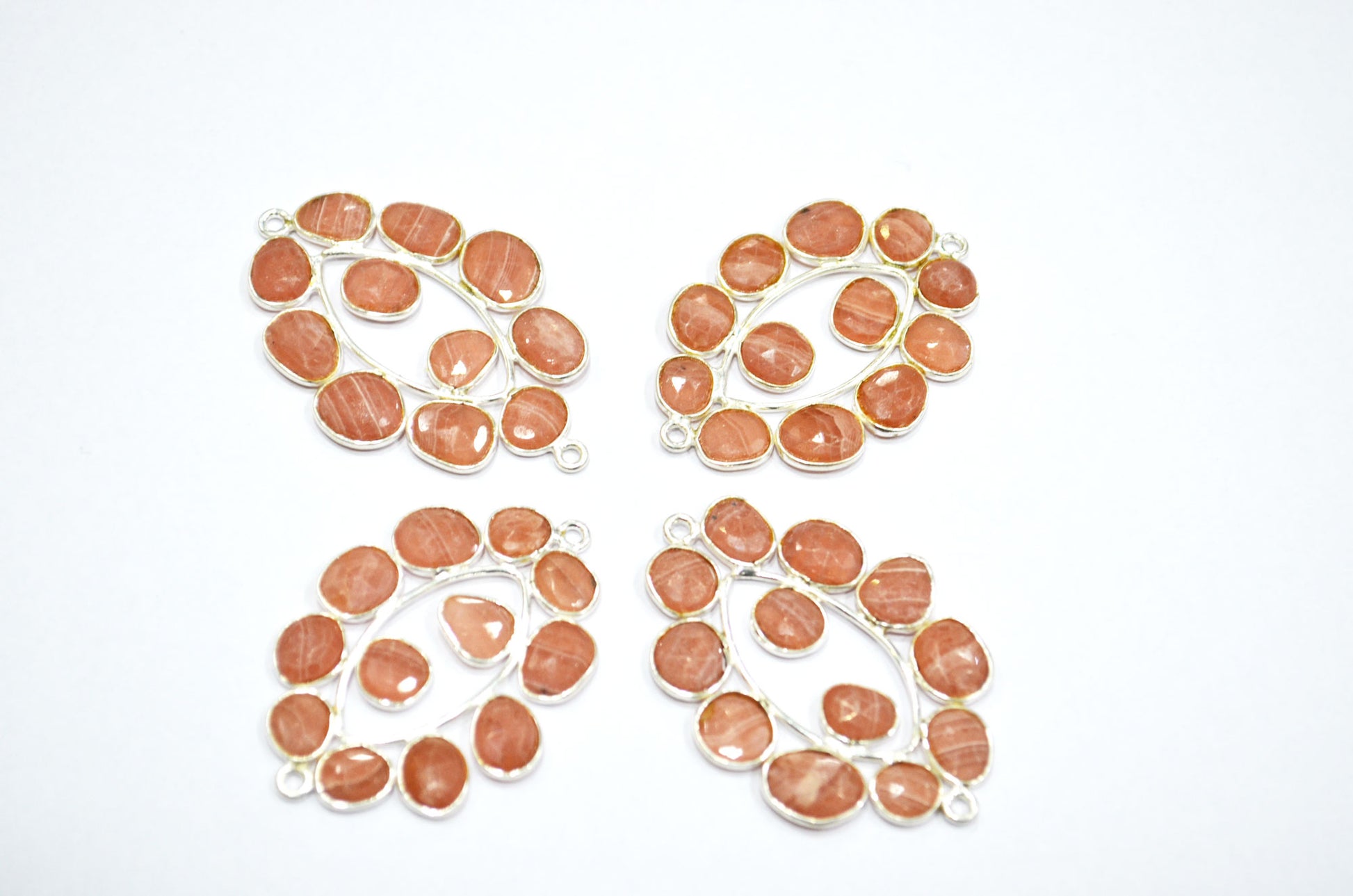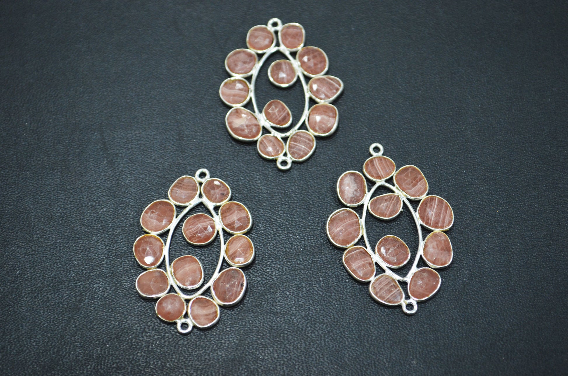 Natural Rhodocrosite 925 Sterling Silver Marquise Shape Connector , Sold By Piece , 3 - 3.50 cm , RB-6069