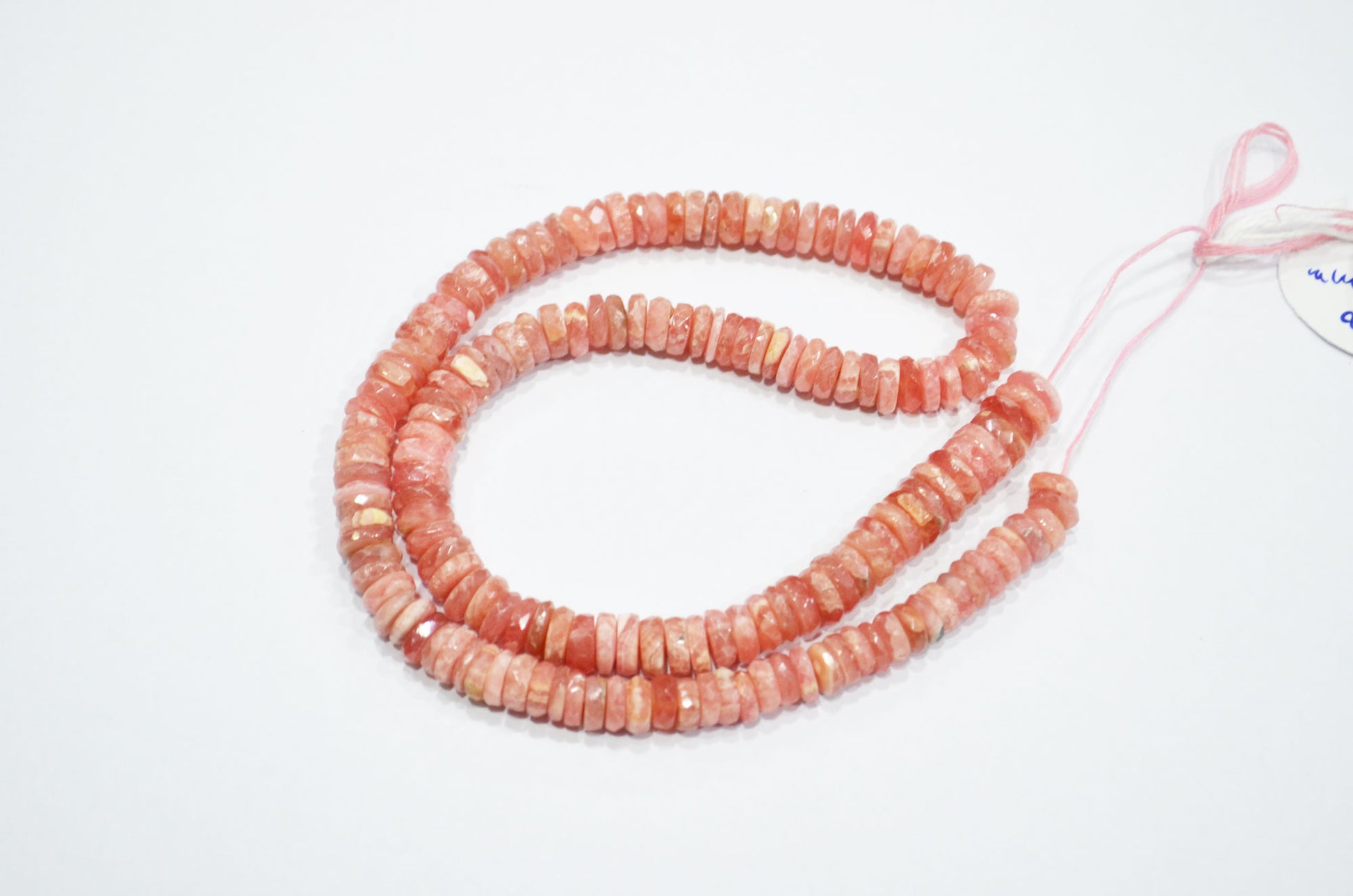 Natural Rhodocrosite Heishi Tyre Shape Beads , Natural Rhodocrosite Faceted Heishi Tyre Shape Beads , 16 Inches , 7 - 8.50 mm , 32196