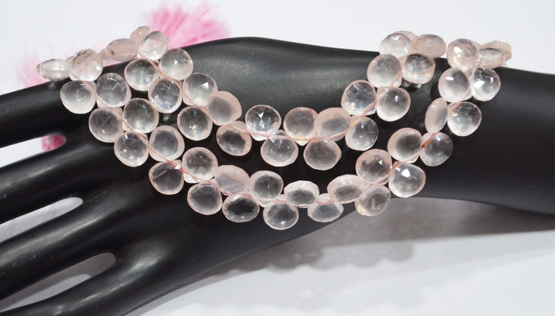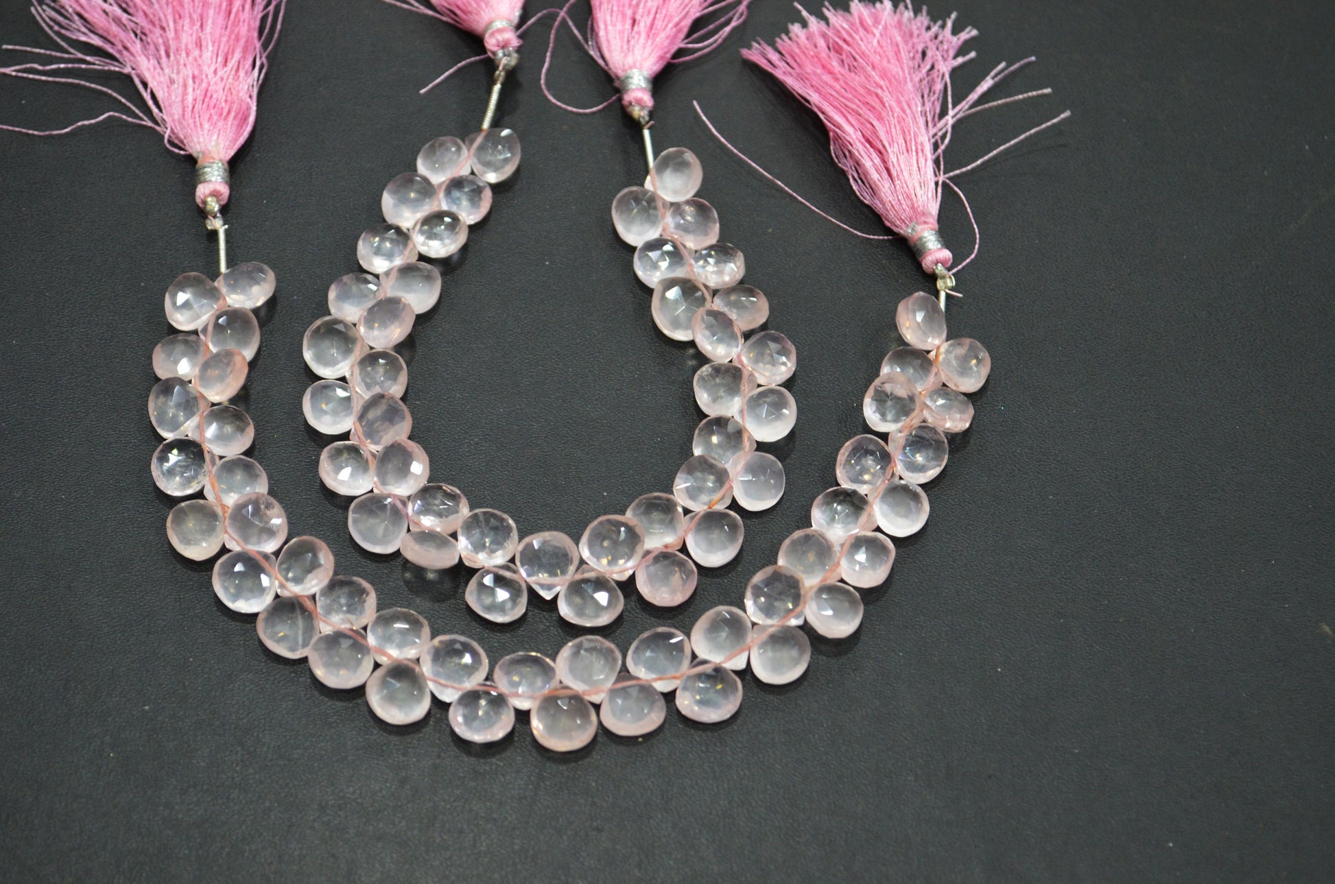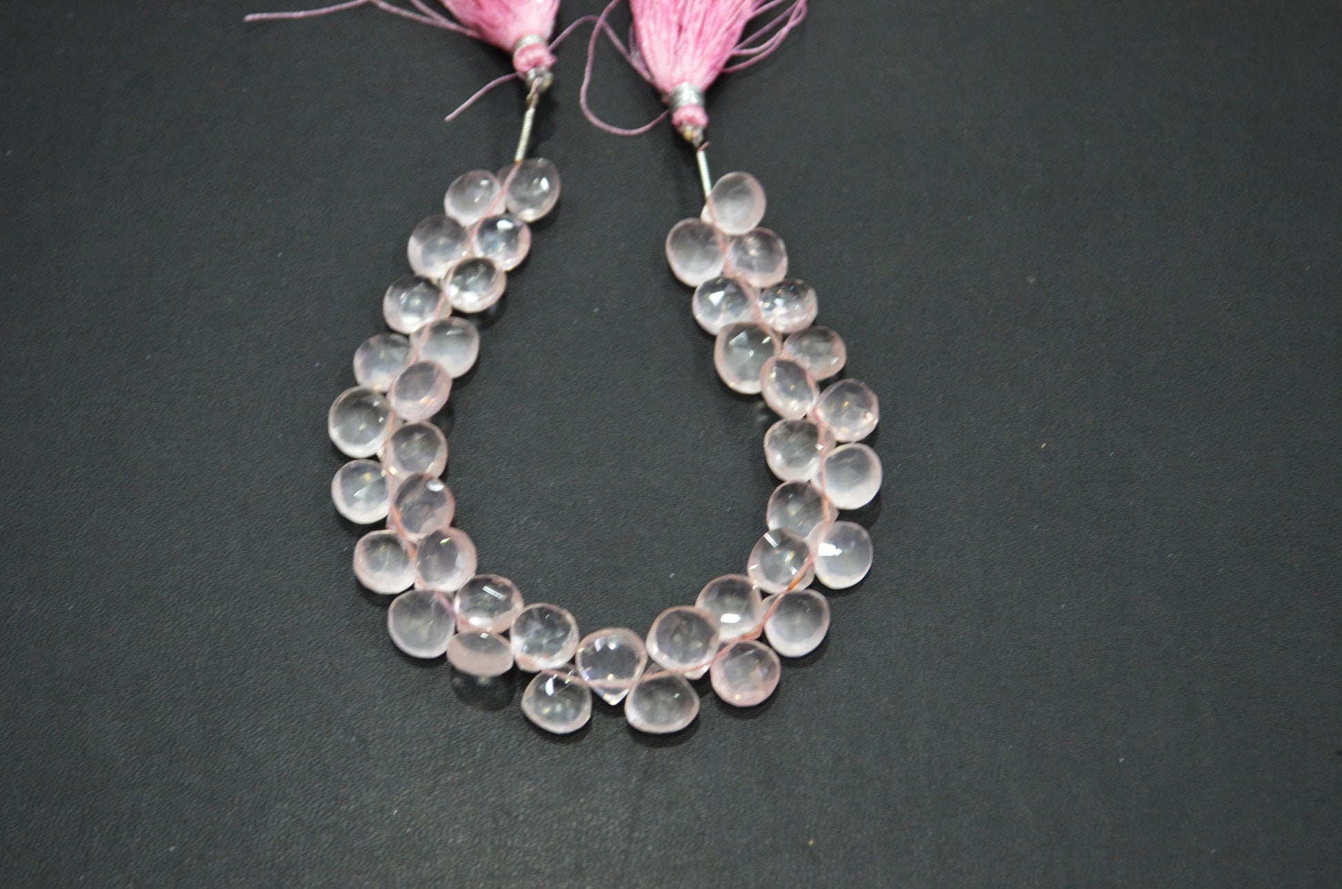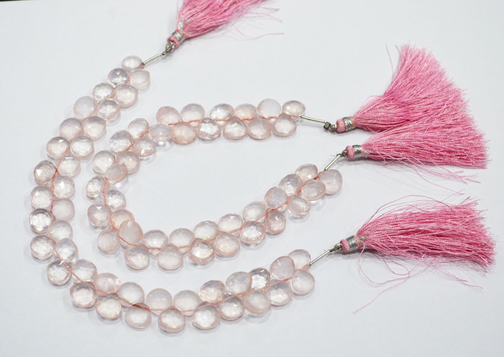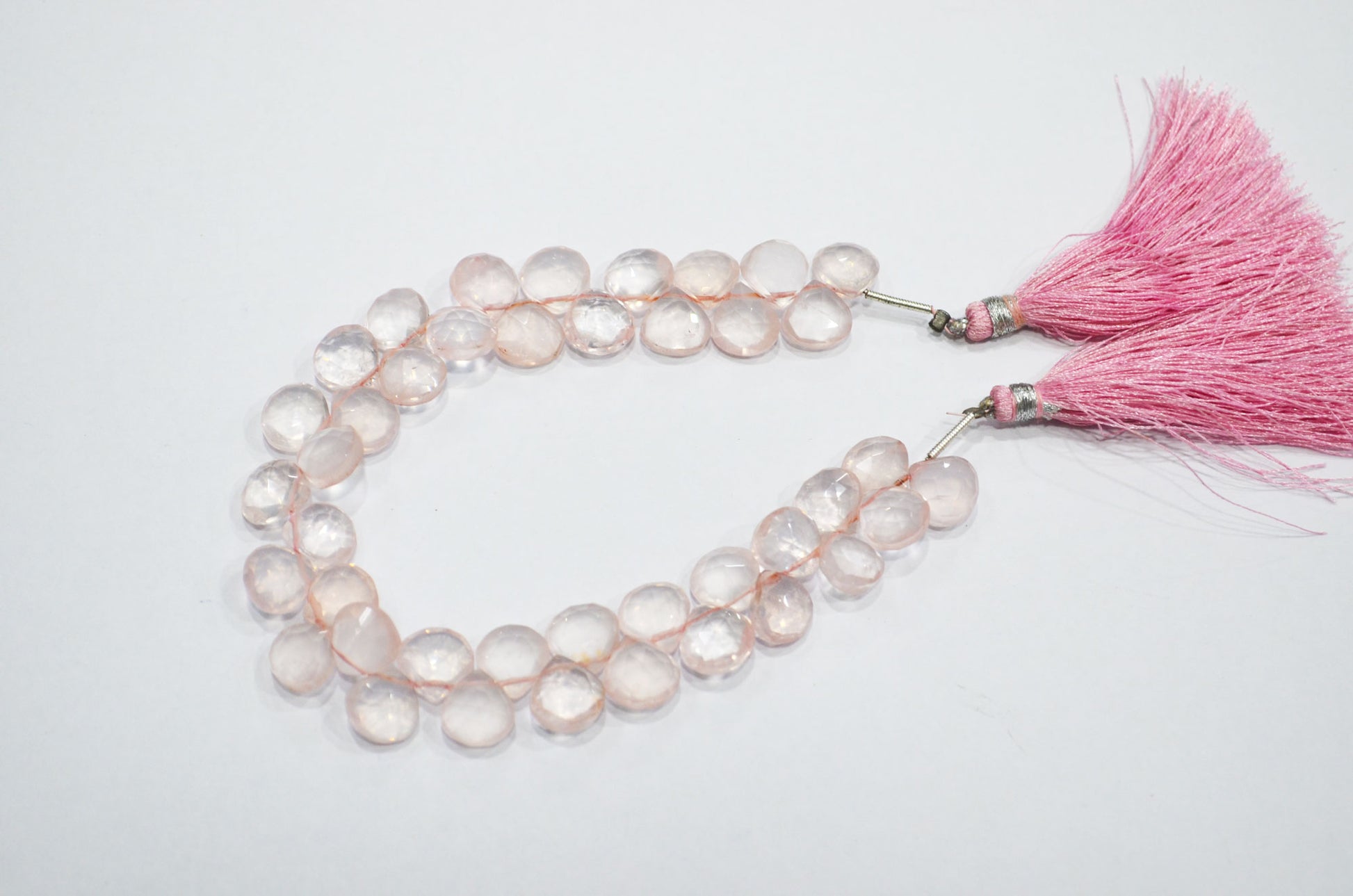 Natural Rose Quartz Heart Shape Beads , Rose Quartz Faceted Briolettes , Sold By Strand , 8 Inches , 9x9 - 10x10 mm , 19439