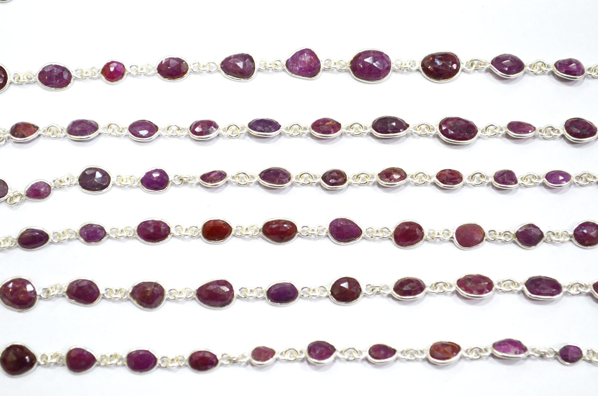 Natural Ruby Faceted Free Form Shape Connector Chain , 4 - 6 mm , RB-5909