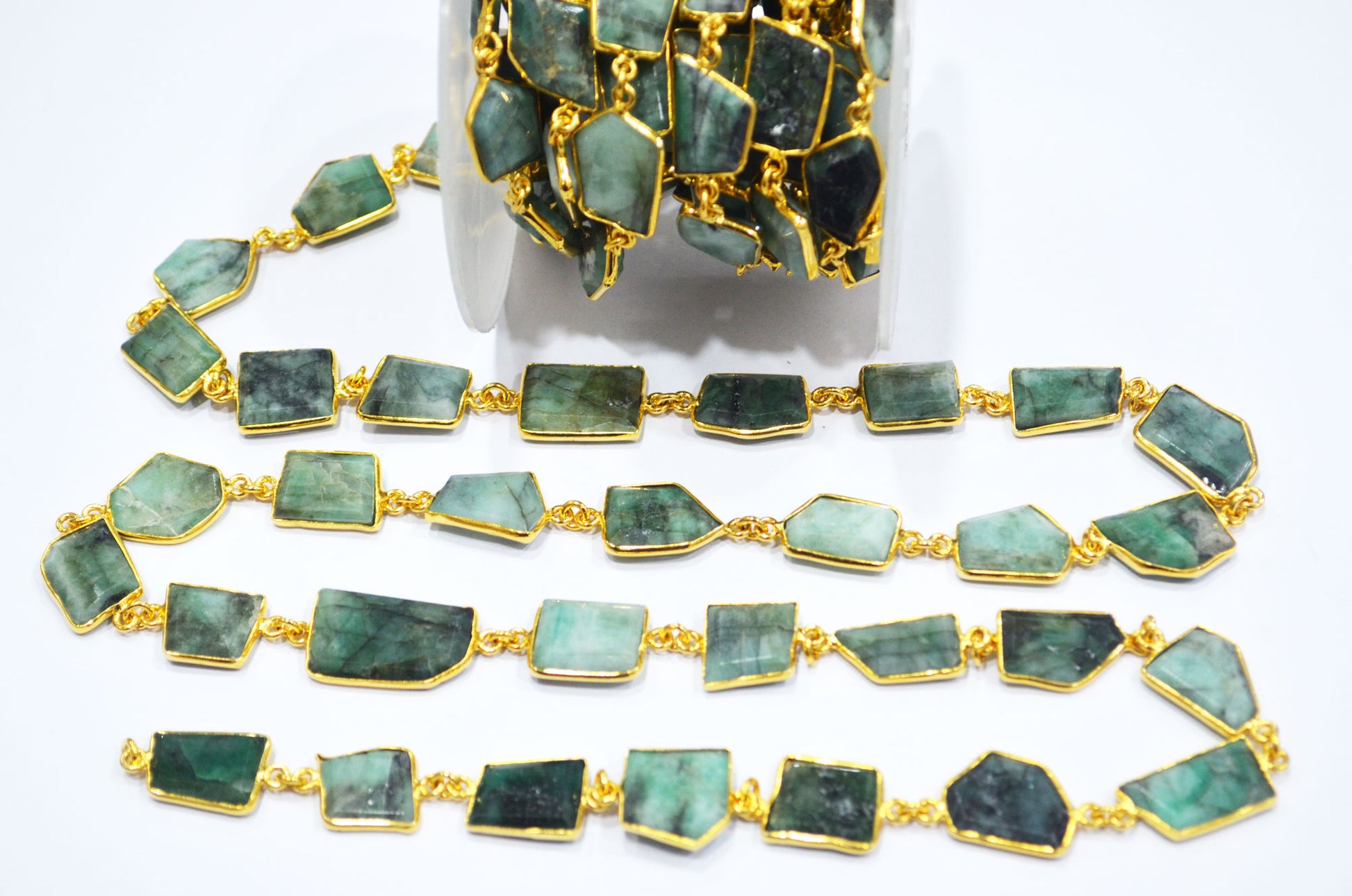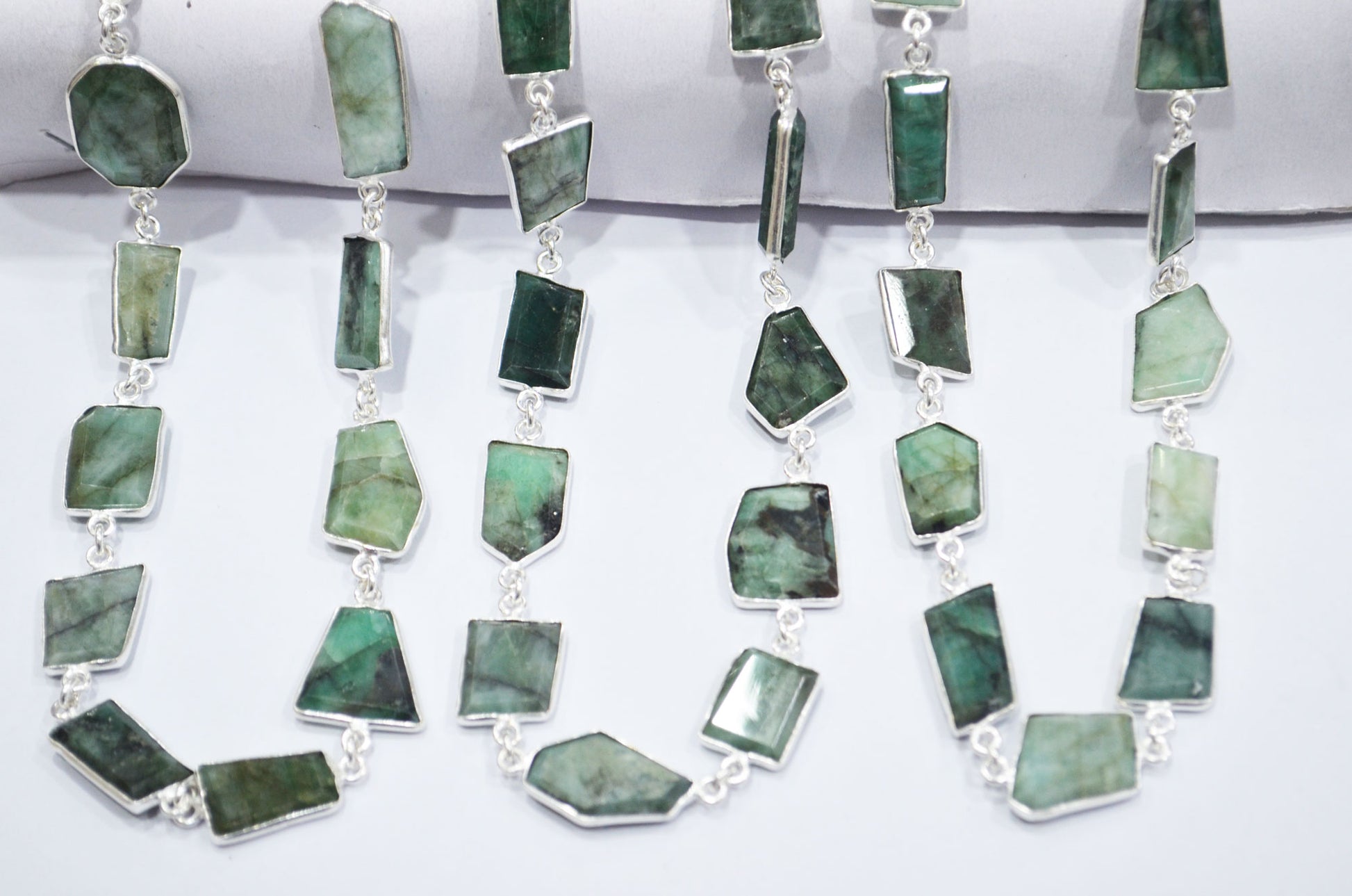 Natural Sakota Mines Emerald Crown Cut Fancy Shape Connector Chain , Natural Sakota Mines Emerald Bezel Link Chain , 14 - 19 mm , RB-6492