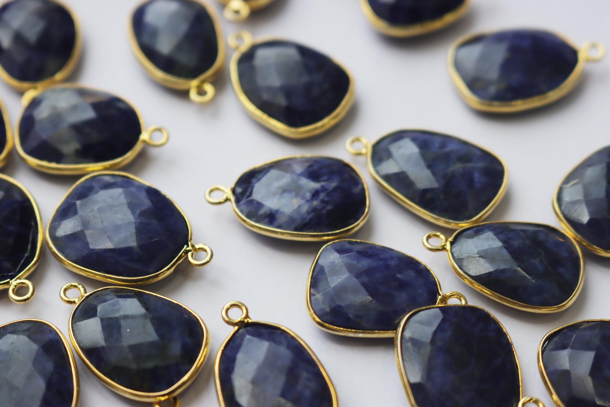 Natural Sodalite Faceted Slice Shape Connector , Sold By Piece , 16 - 20 mm , RB-7270