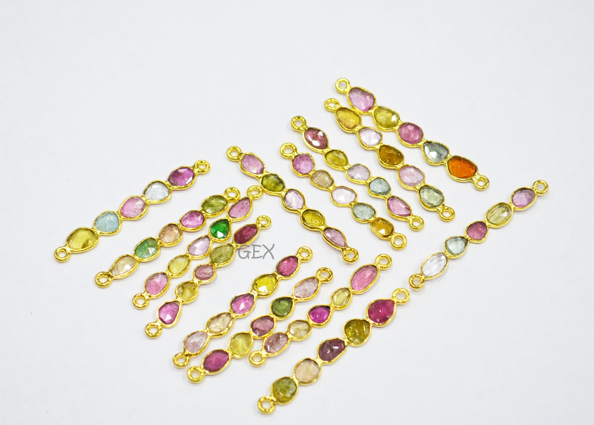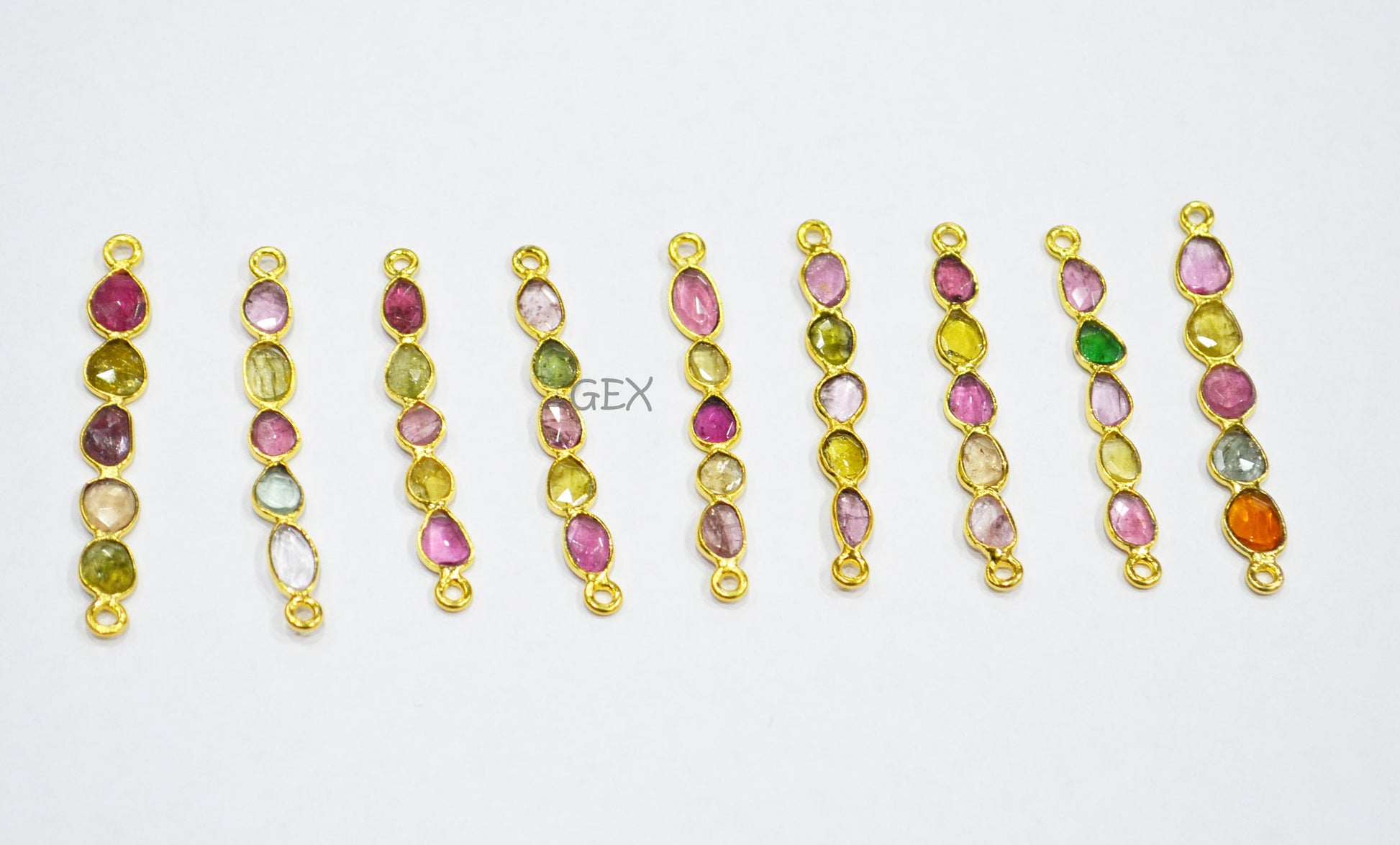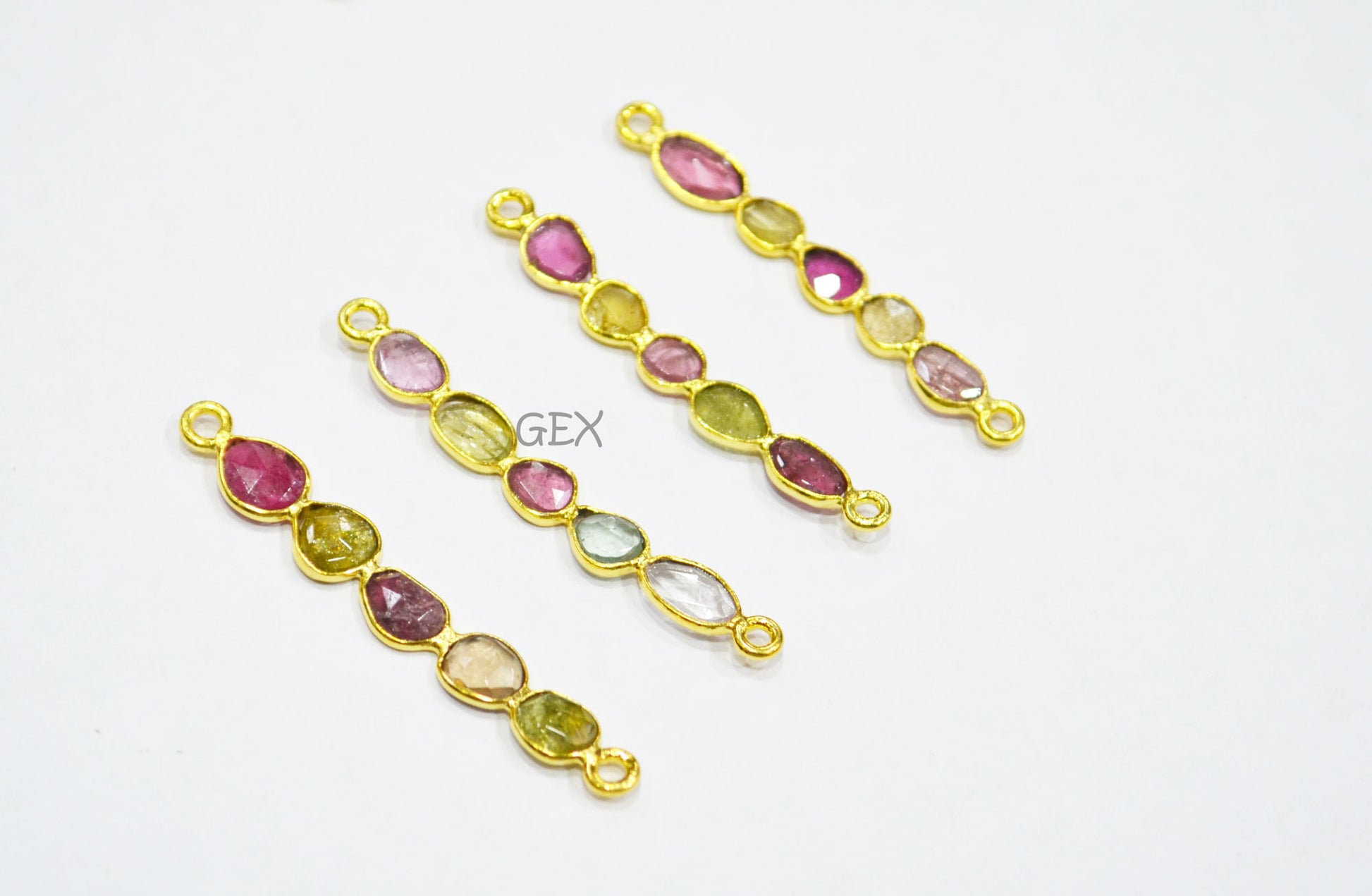 Natural Watermelon Tourmaline Faceted Bar Connector , Natural Watermelon Tourmaline Double Bail Bezel Charm Connector , Sold By Piece , 40 - 48 mm , R-016