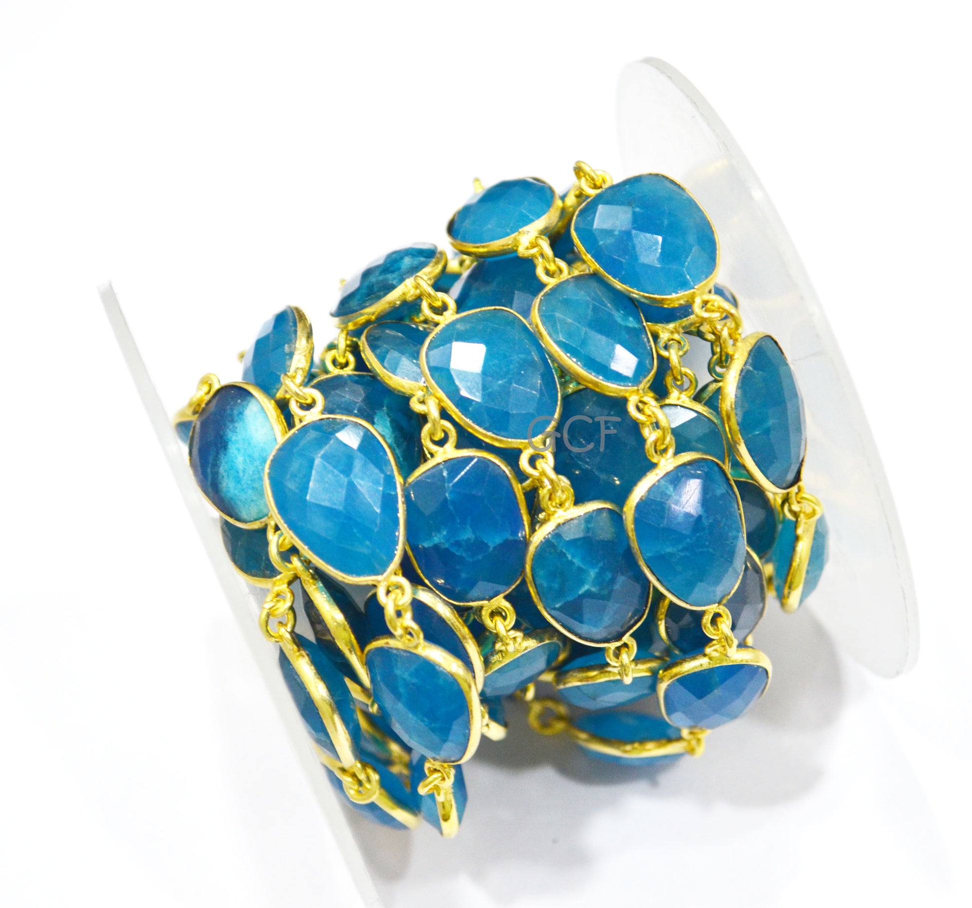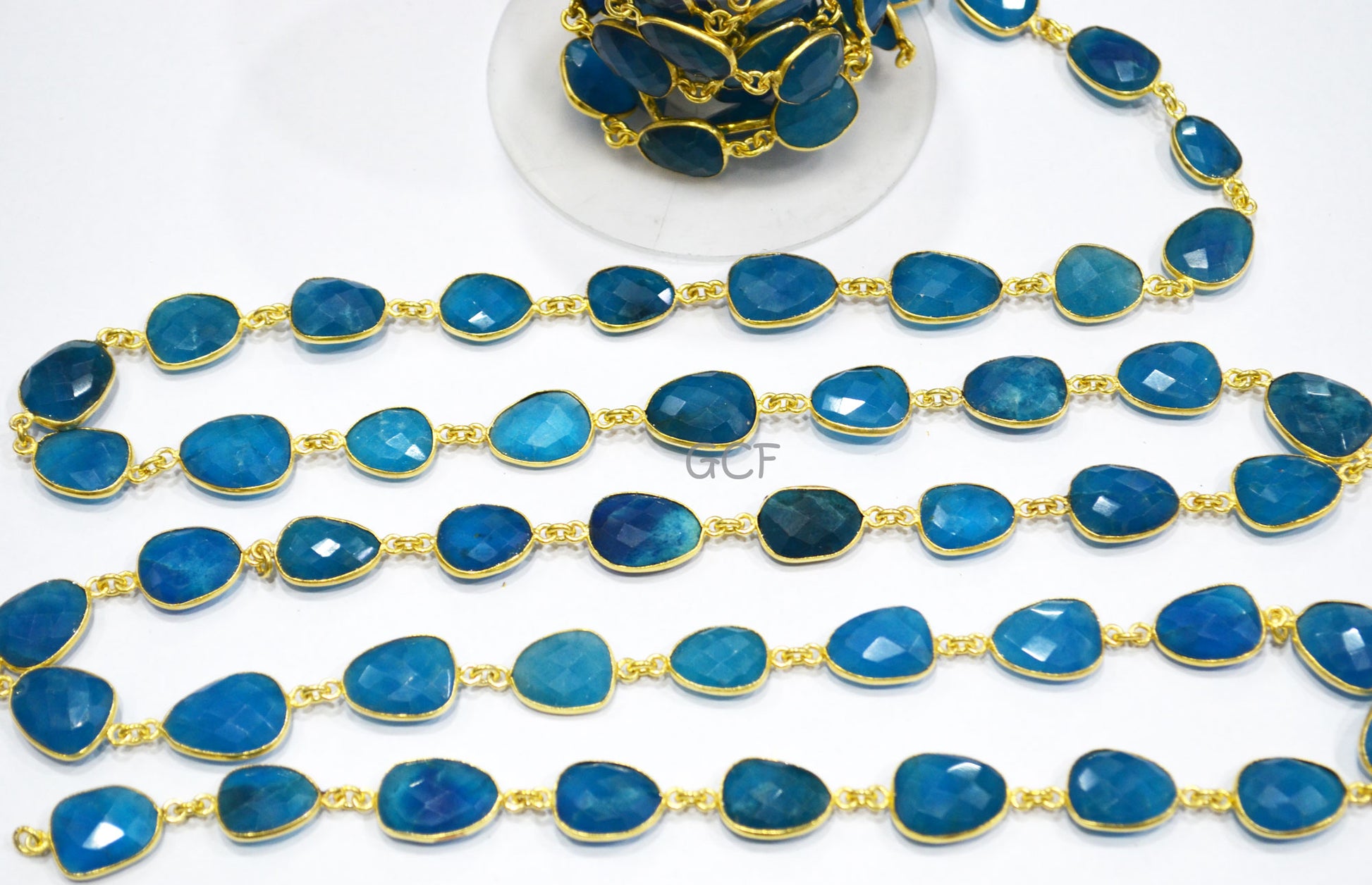 Neon Apatite Quartz Faceted Slice Shape Connector Chain , Neon Apatite Quartz Bezel Link Chain , 10x13 - 13x17 mm , RB-7035