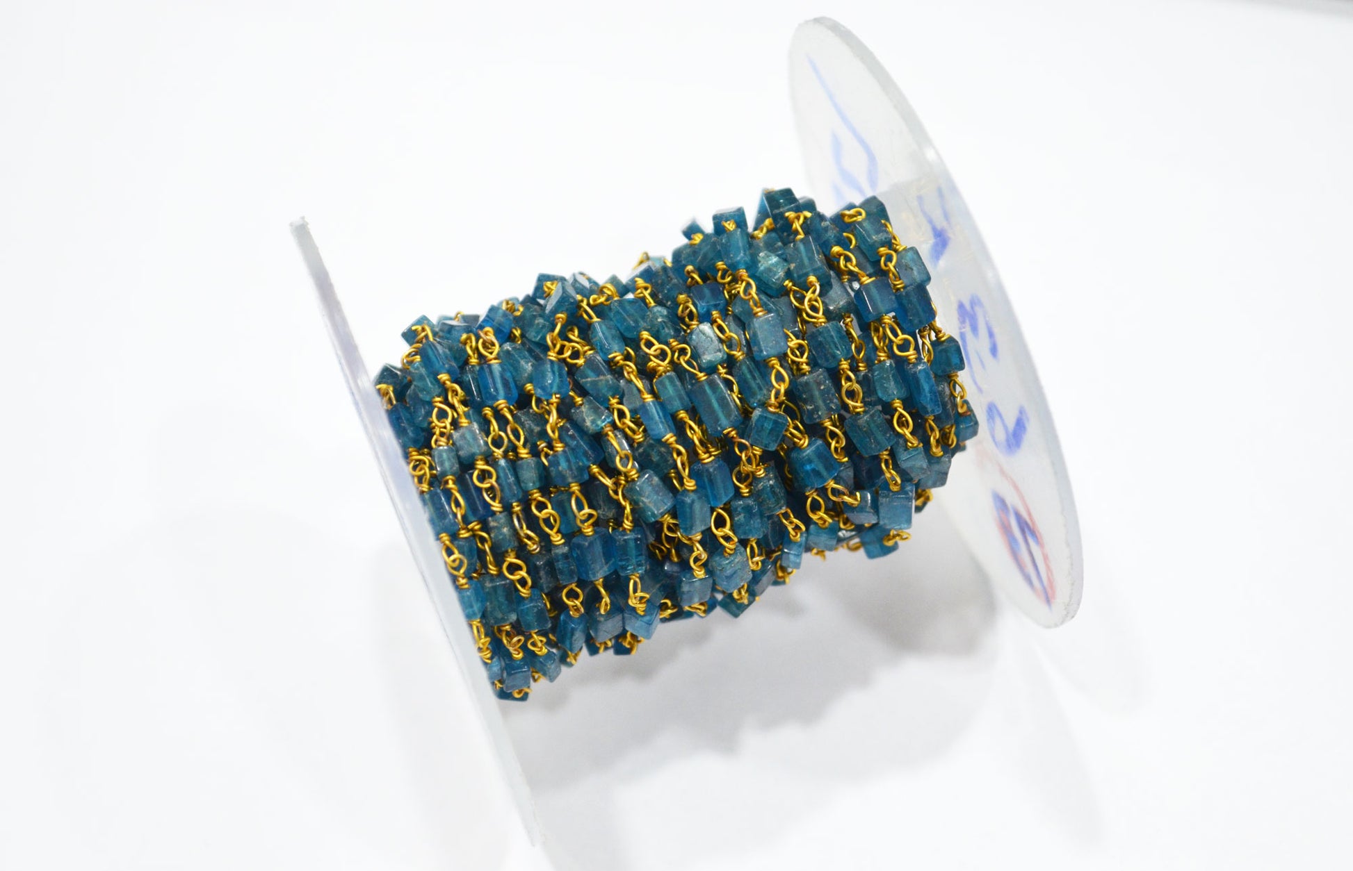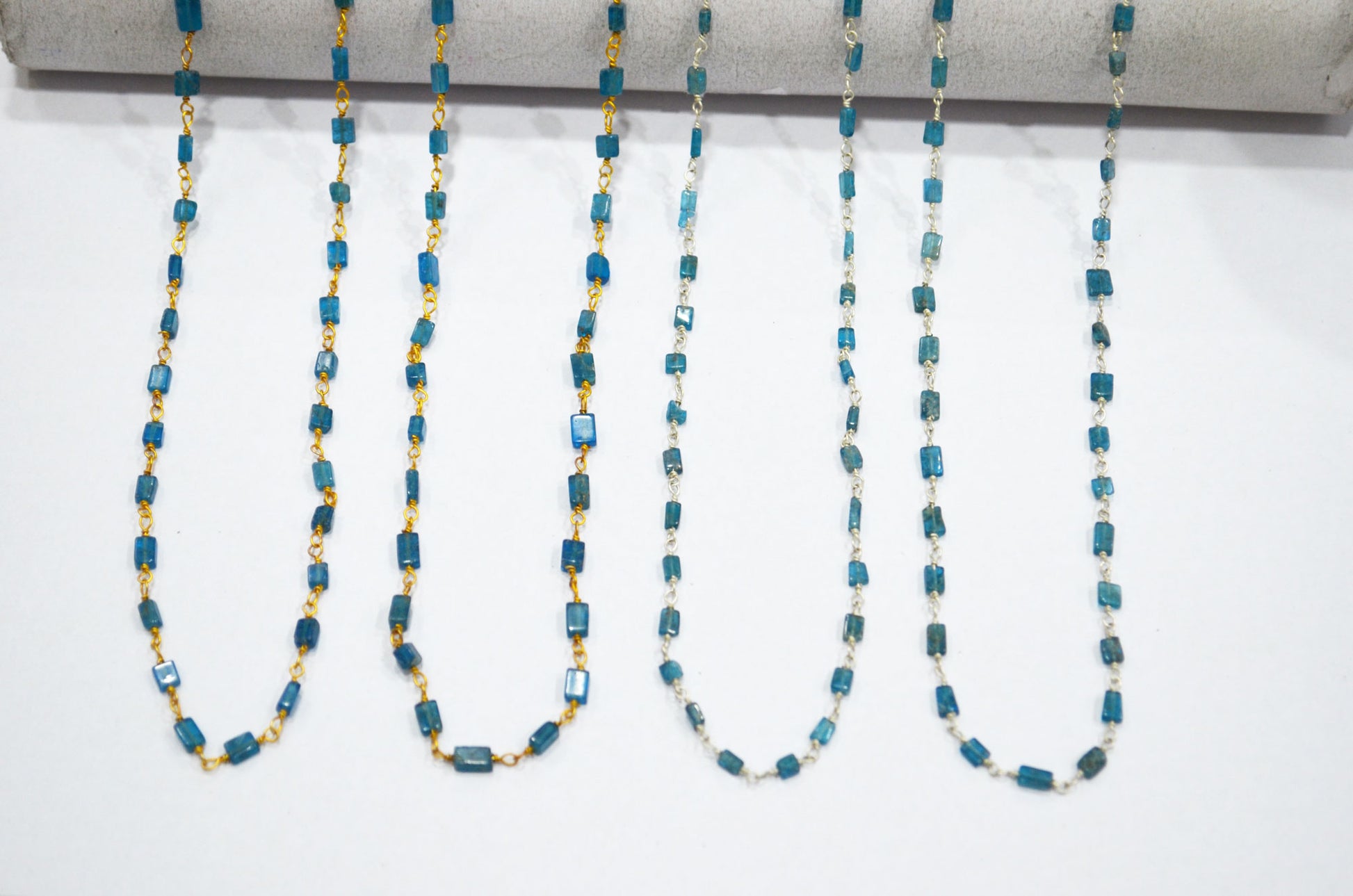 Neon Apatite Smooth Uneven Square Shape Rosary Beaded Chain , Neon Apatite Wire Wrapped Chain , 3 - 5 mm , RB-5627