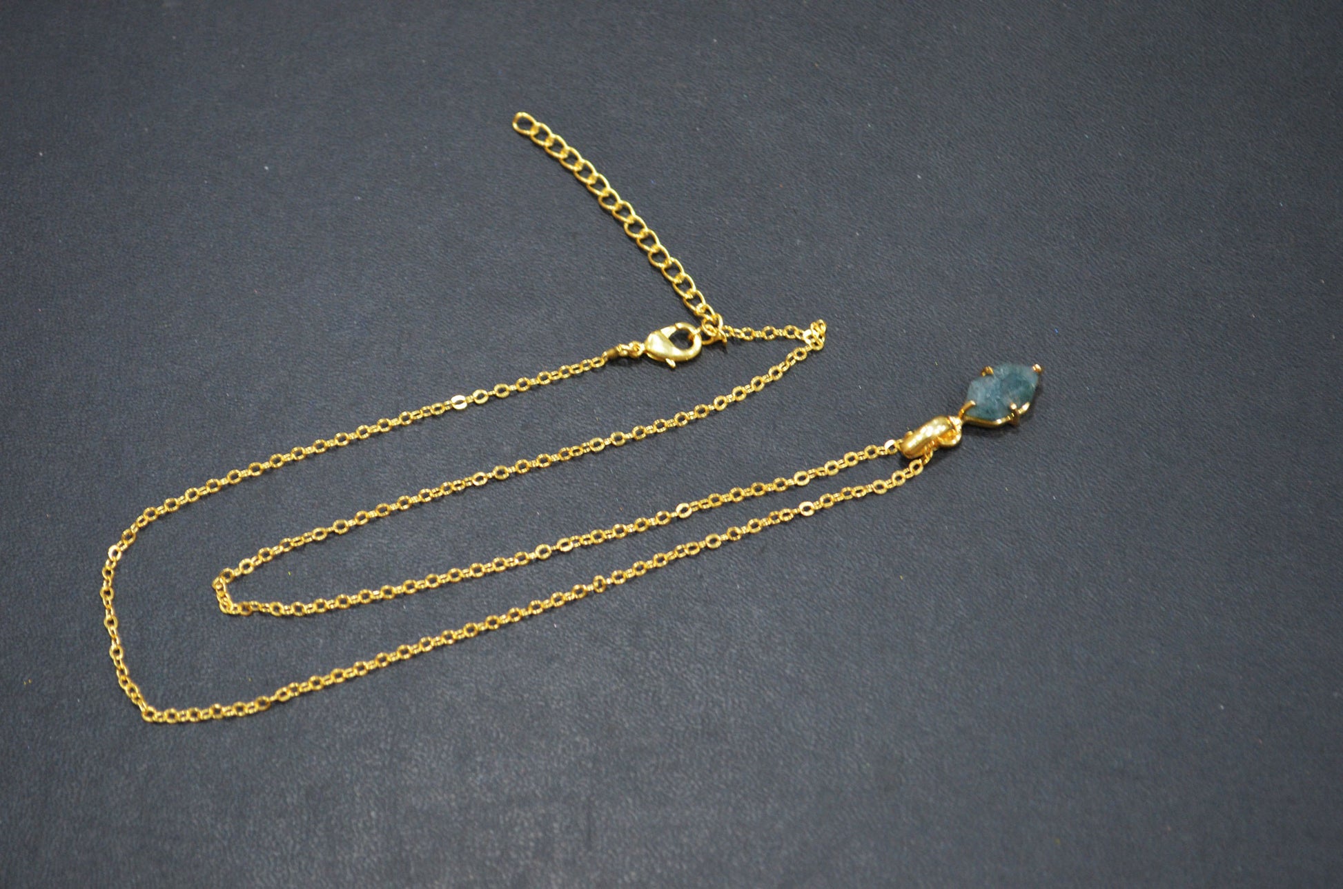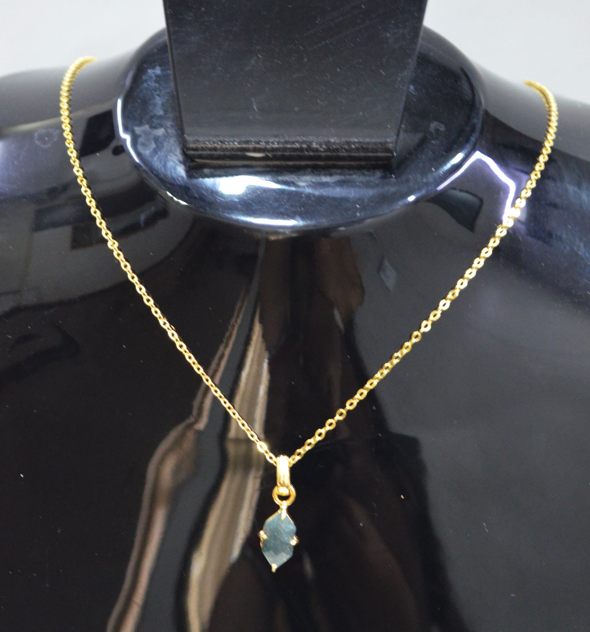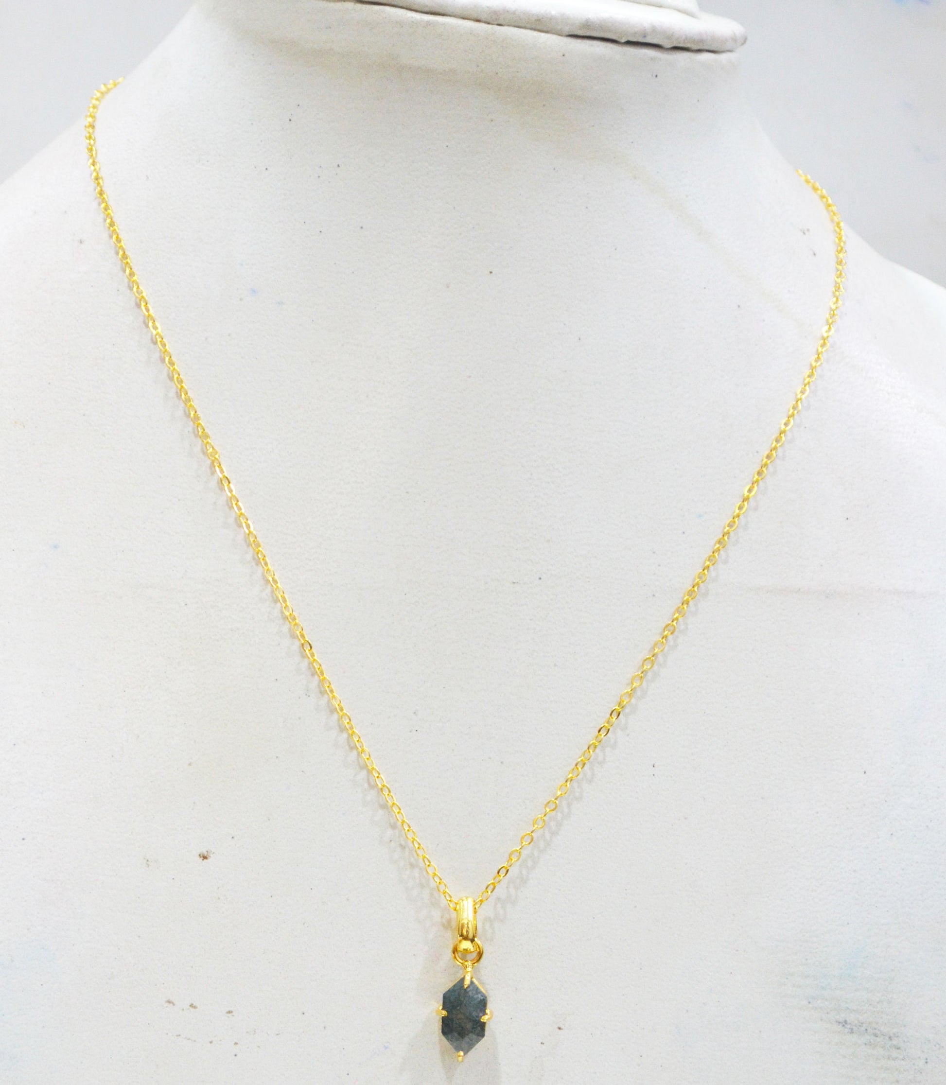 Ocean Green Jasper Faceted Fancy Shape Pendant With Adjustable Chain And Lobster Lock Necklace , 8x13 mm , RB-7335