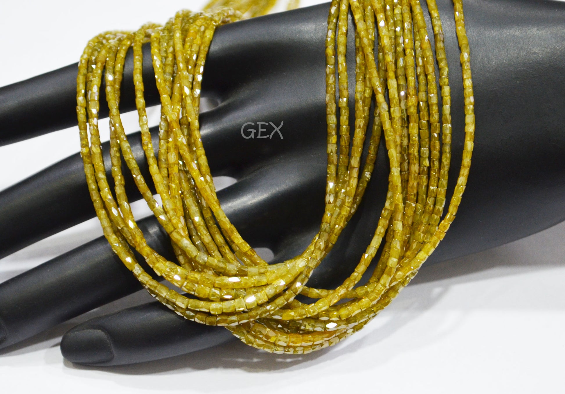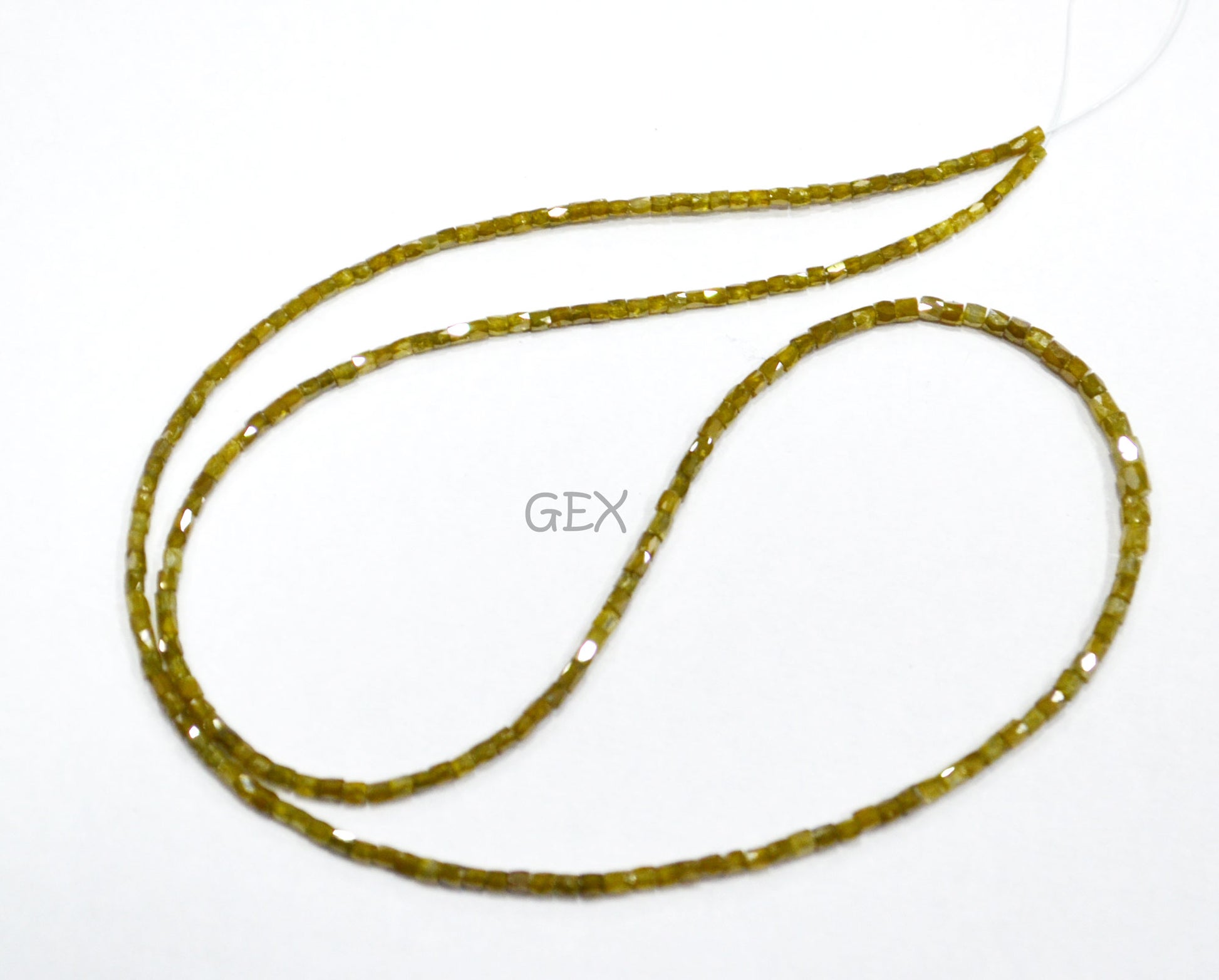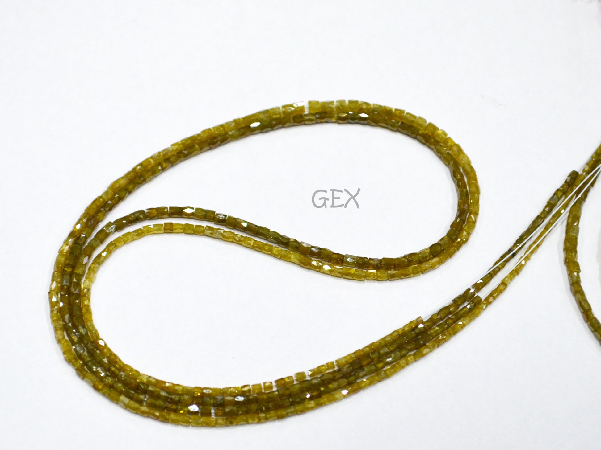 Olive Yellow Tone Diamond Fancy Snake Finish Box Shape Beads , Olive Yellow Tone Diamond Box Shape Faceted Beads , 1.25x1.50 mm 15 Inches , DD-006