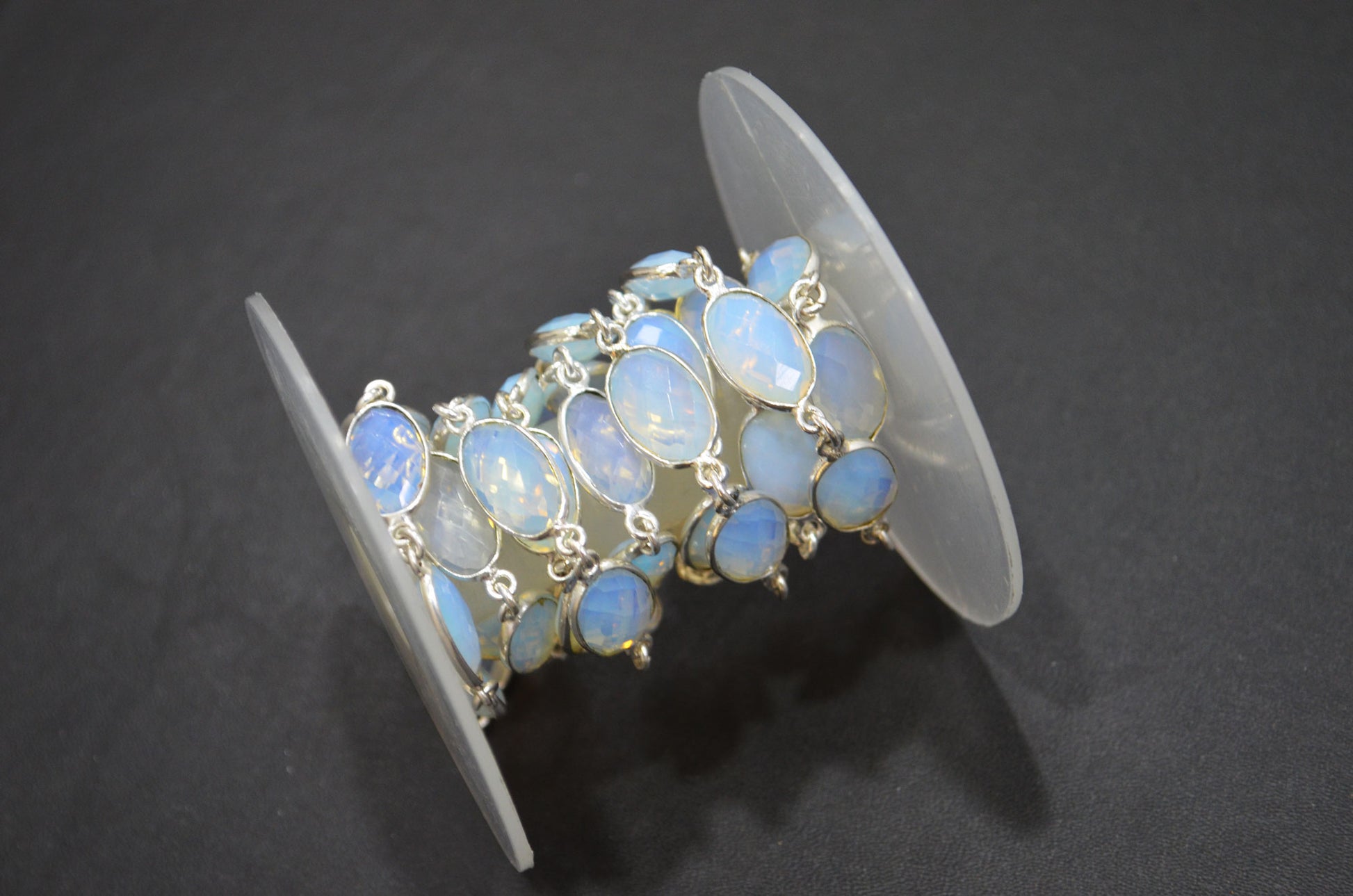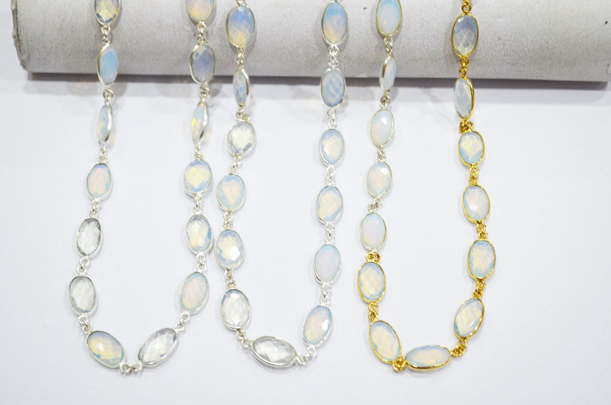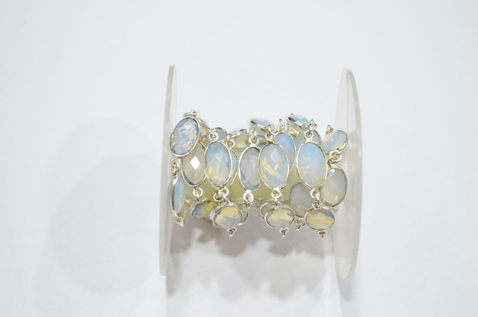 Opalite Hydro Quartz Faceted Oval Shape Connector Chain , Opalite Hydro Quartz Bezel Link Chain , 9x14 mm , RB-5696