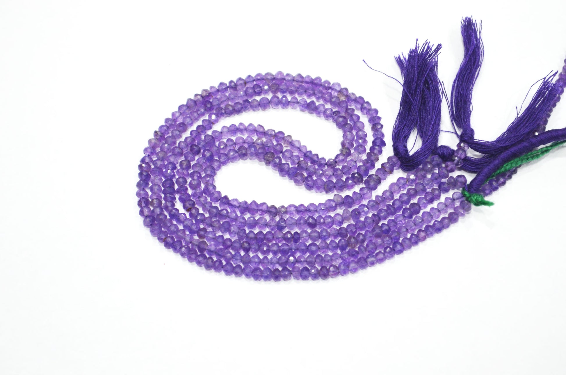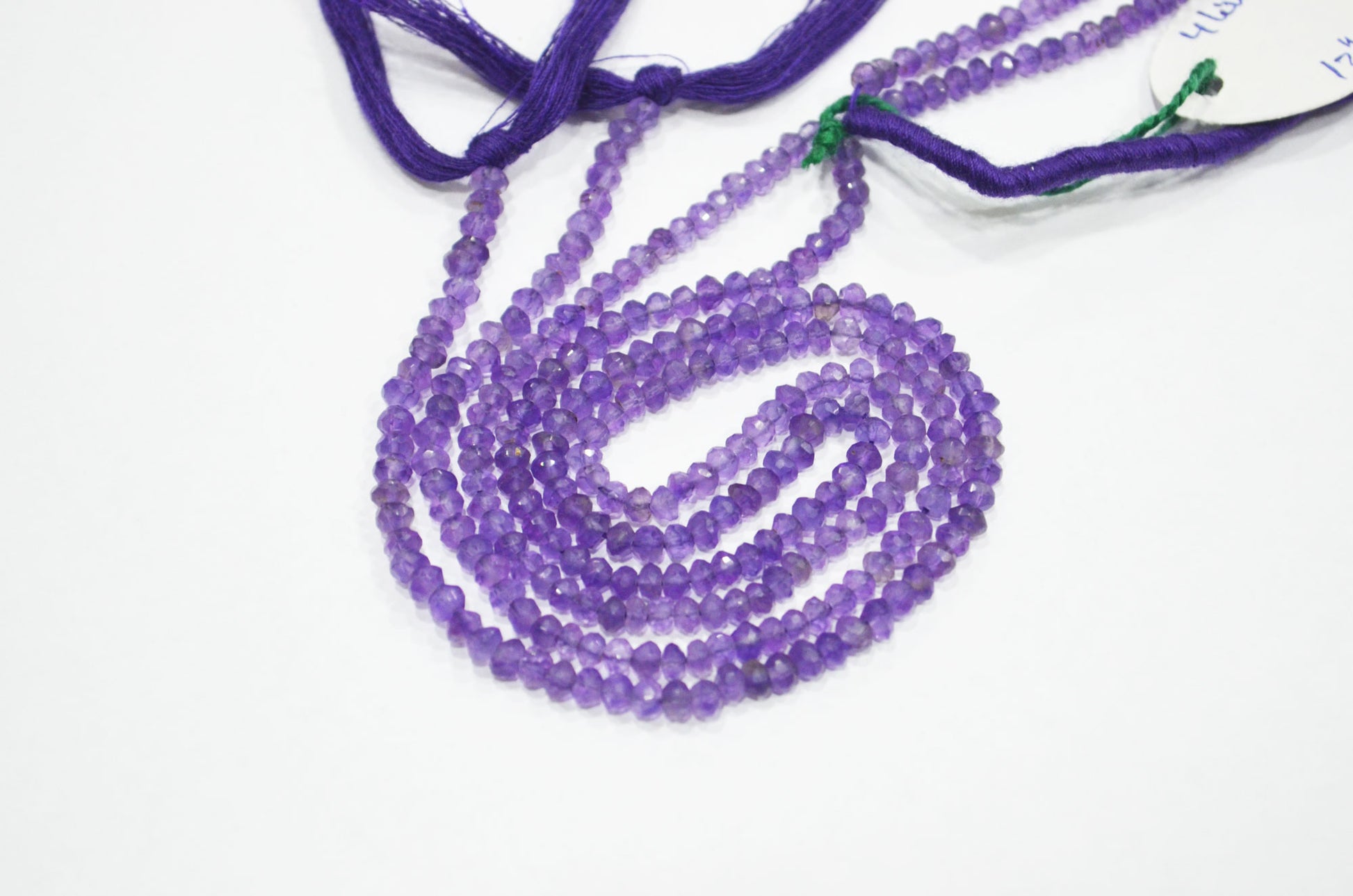 Pack Of 4 Strands Amethyst Faceted Rondelle Shape Beads , Amethyst Rondelle Shape Beads , 13 Inches , 3.75 mm , 32411