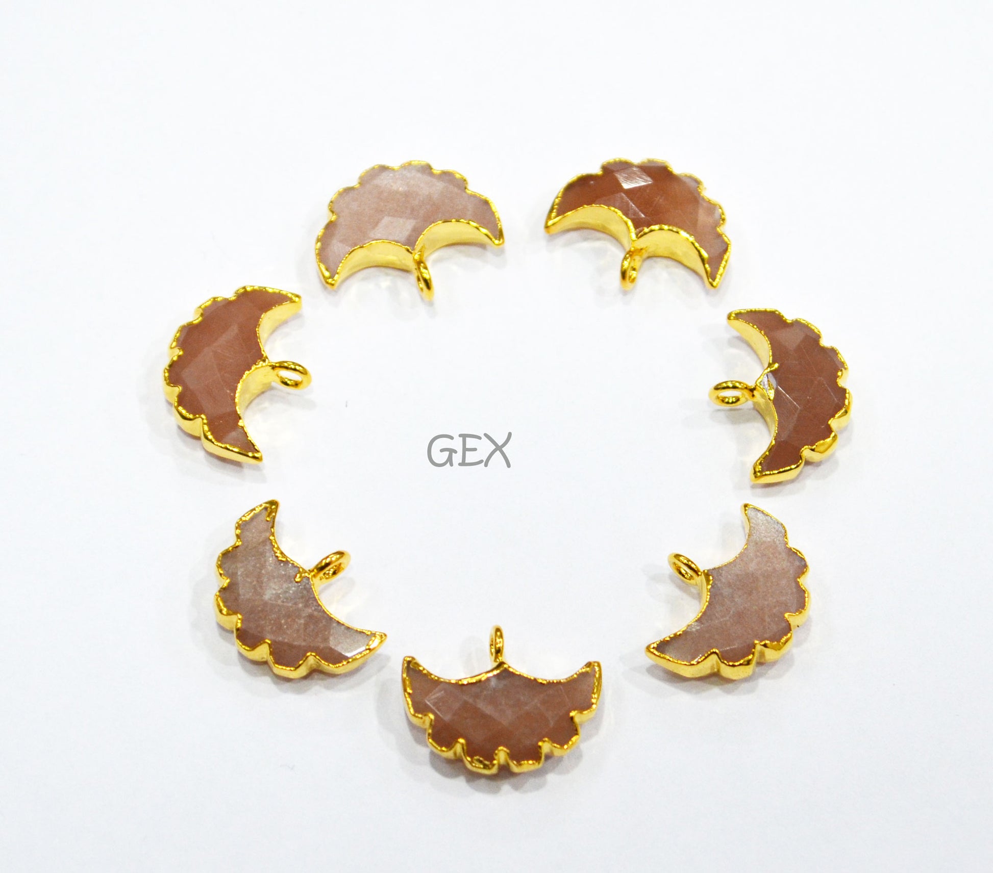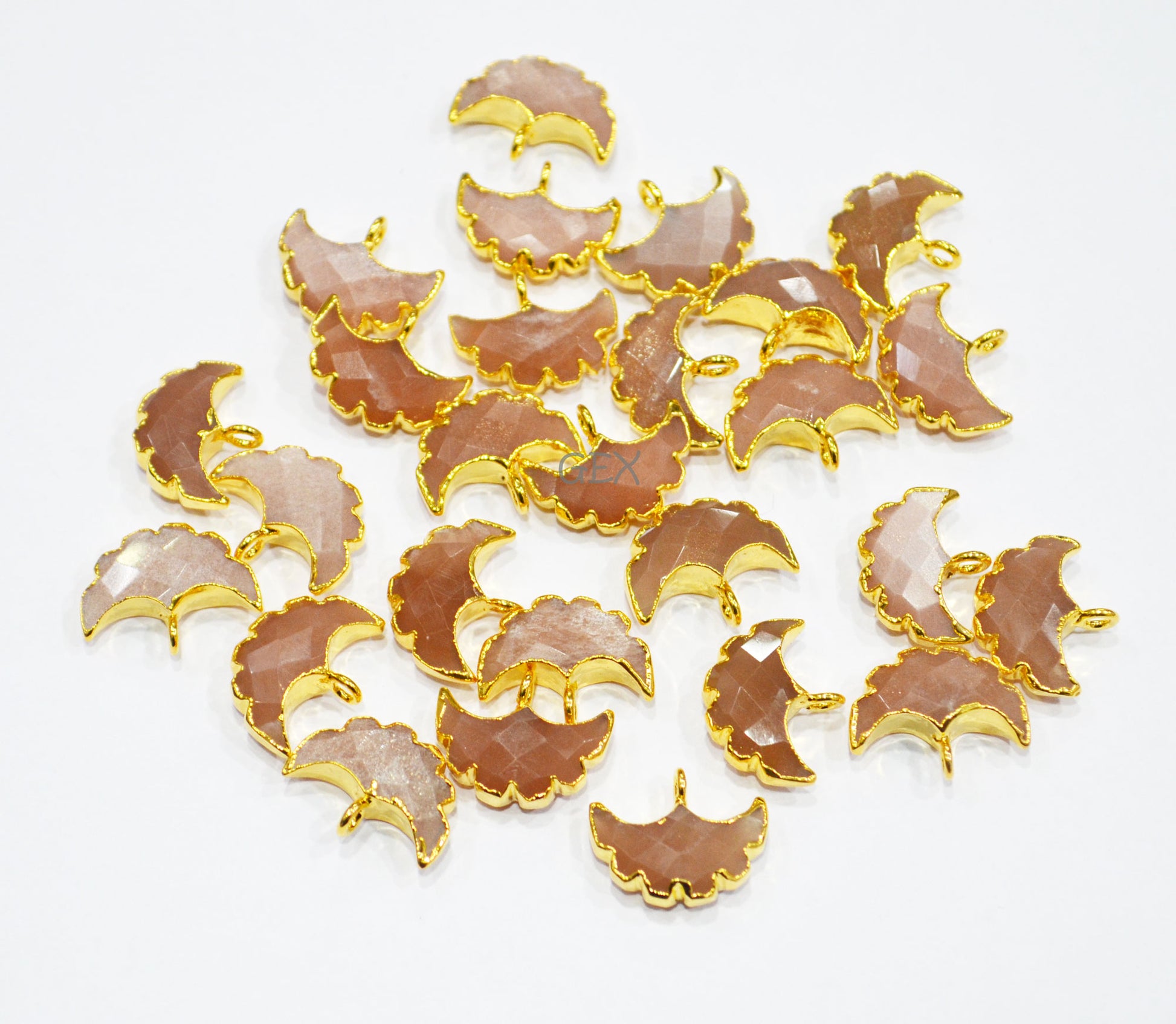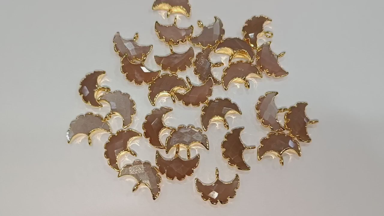 Peach Moonstone Electroplated Half Moon Shape Connector , Peach Moonstone Single Bail Faceted Connector Charm , Sold By Piece , 15 - 16 mm , 31931