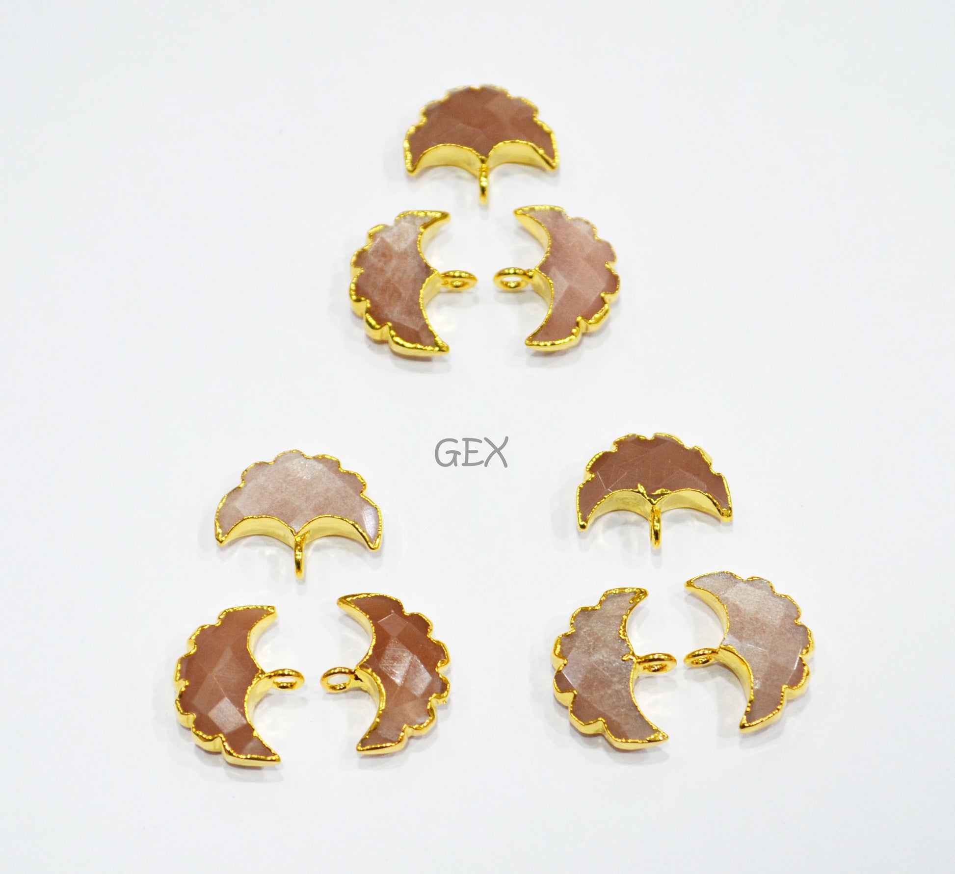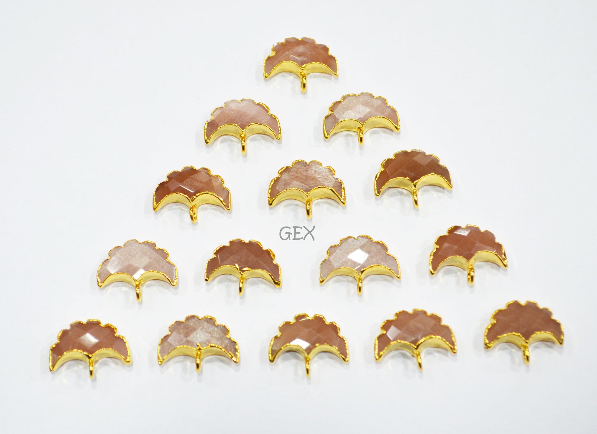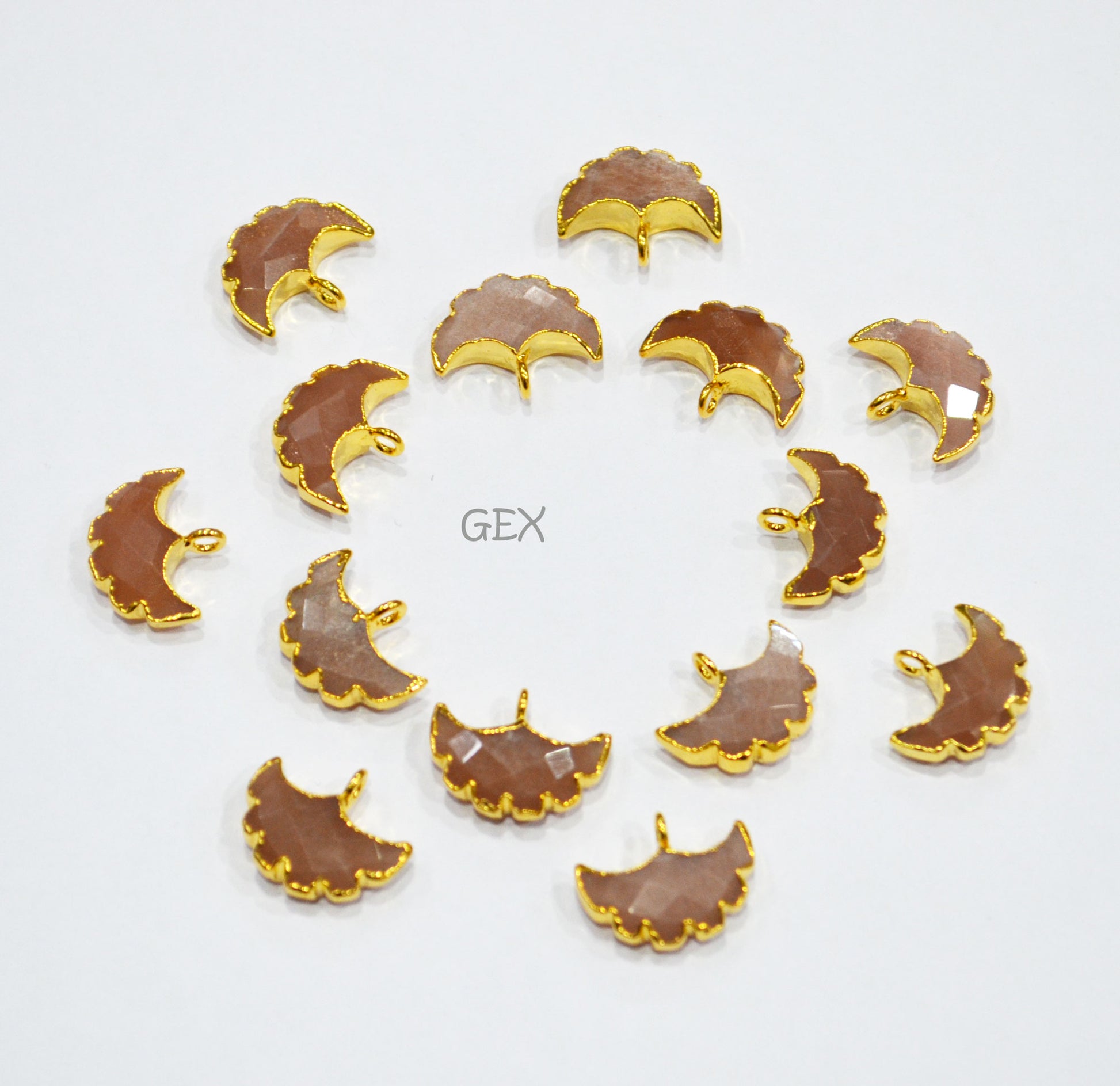 Peach Moonstone Electroplated Half Moon Shape Connector , Peach Moonstone Single Bail Faceted Connector Charm , Sold By Piece , 15 - 16 mm , 31931