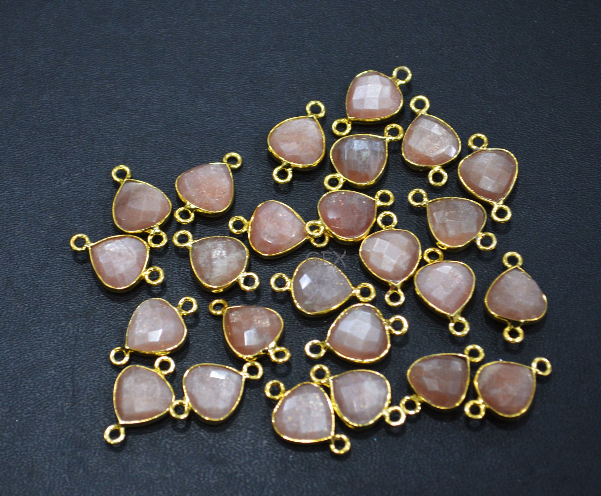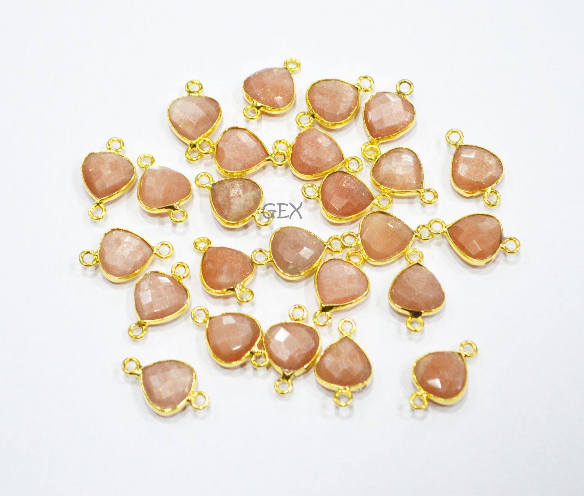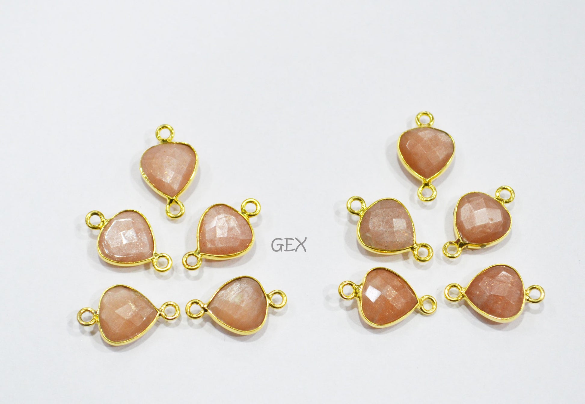 Peach Moonstone Faceted Heart Shape Connector , Sold By Piece , 11 mm , RB-7181