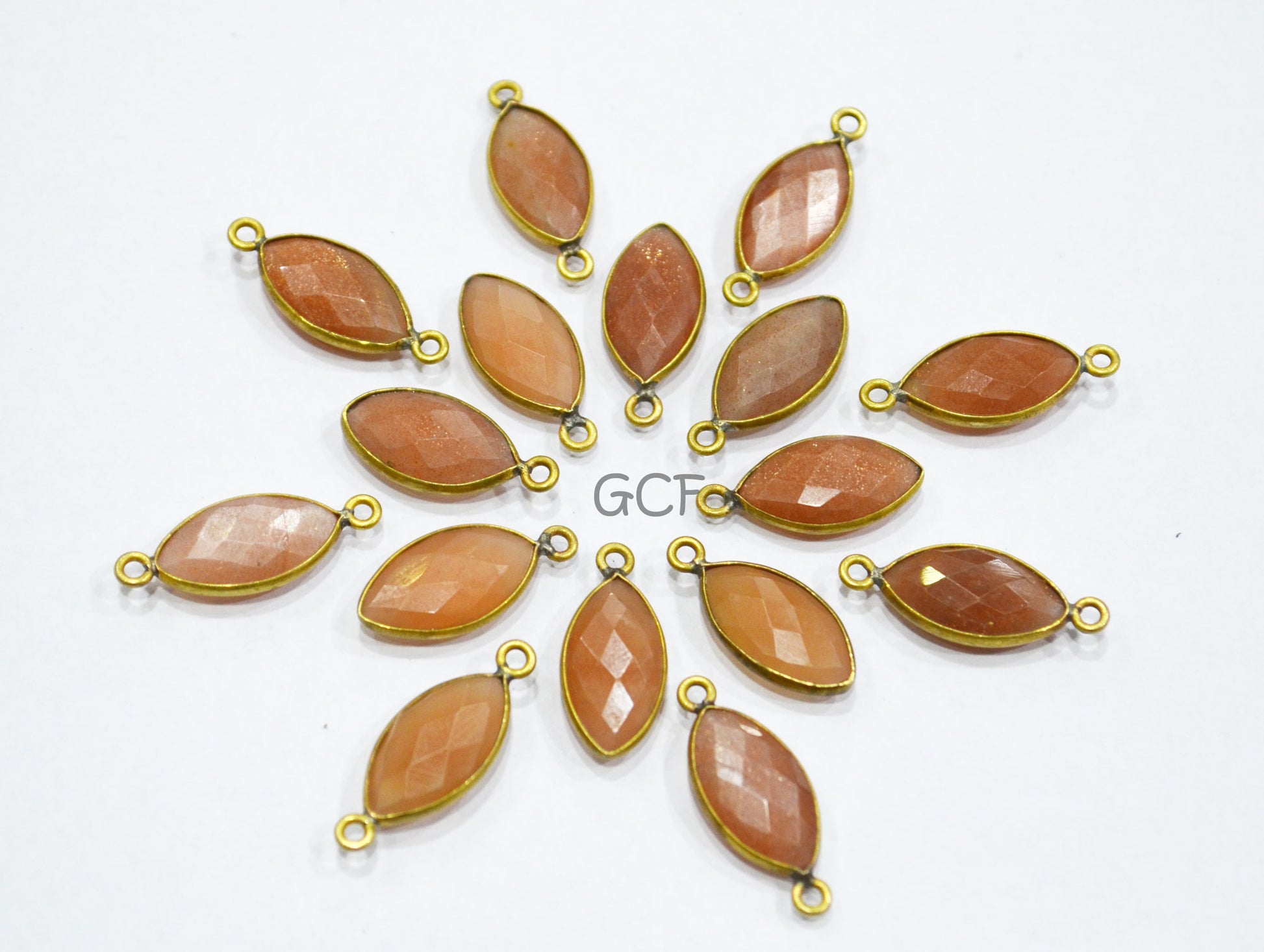 Peach Moonstone Faceted Marquise Shape Connector , Peach Moonstone Single And Double Bail Bezel Connector , Sold By Piece , 8x15 mm ,RB-7063