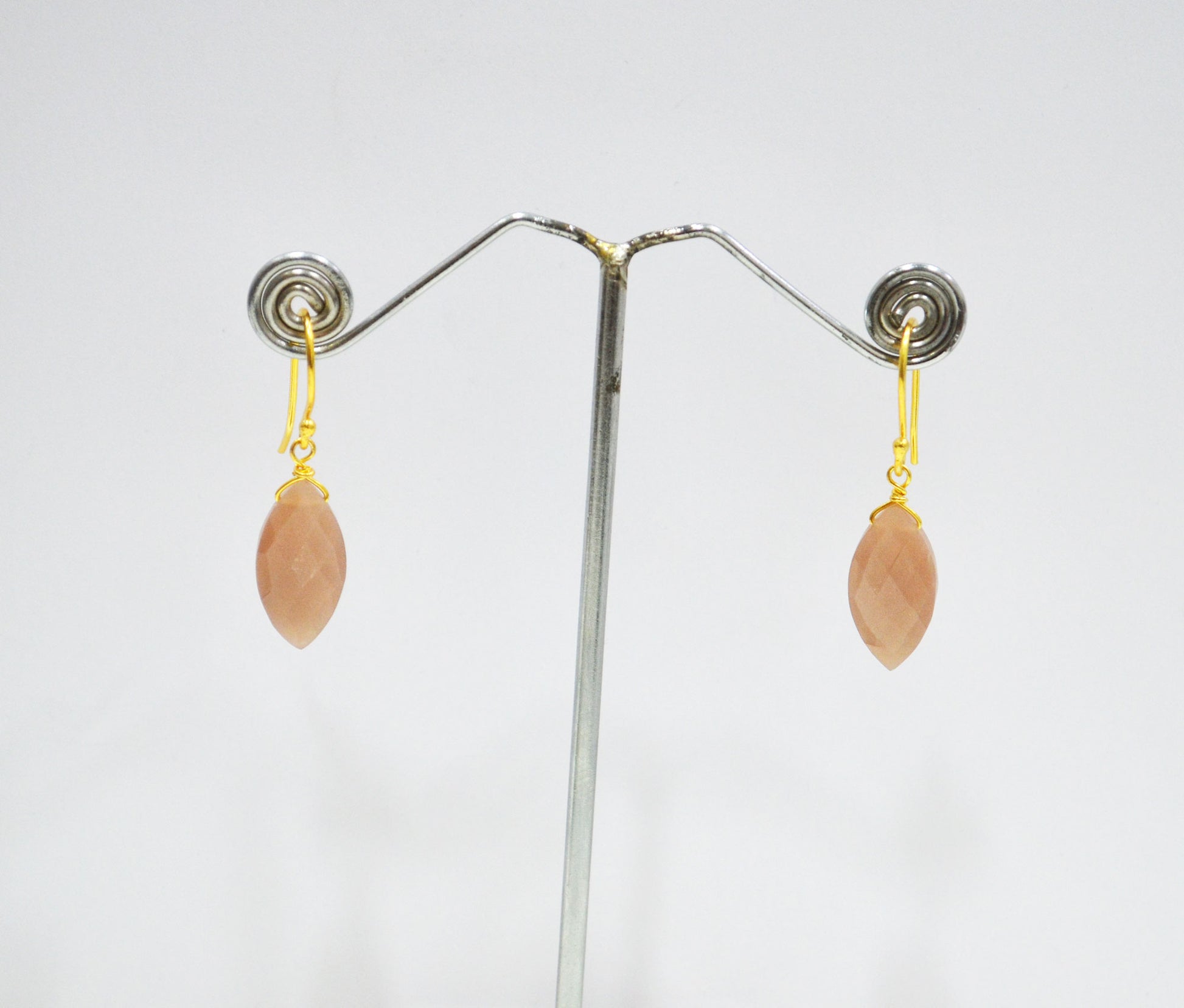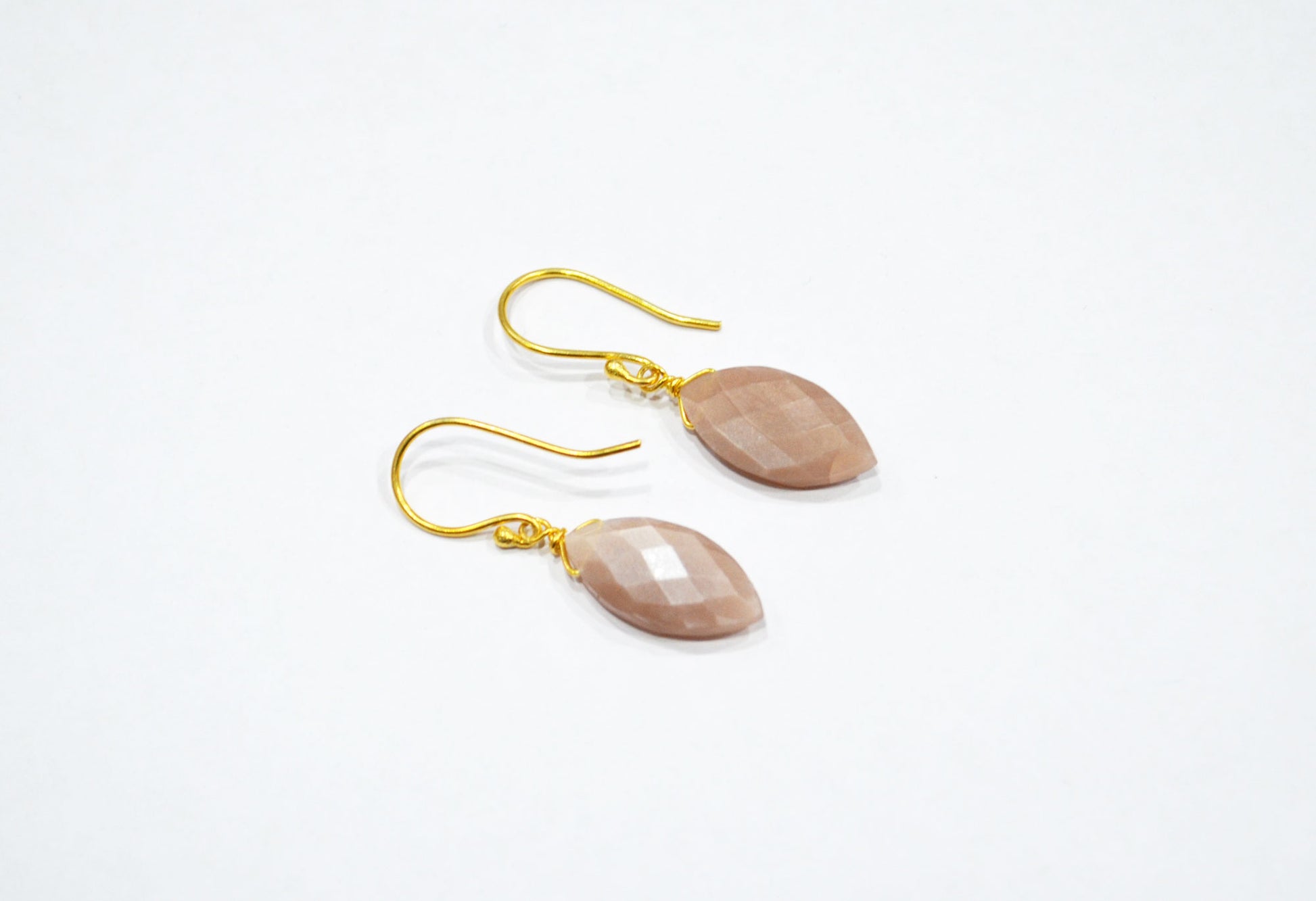 Peach Moonstone Faceted Marquise Shape Earrings , Peach Moonstone Gold Plated Brass Dangle Earrings , Women Earrings , 10x20 mm , RB-7344
