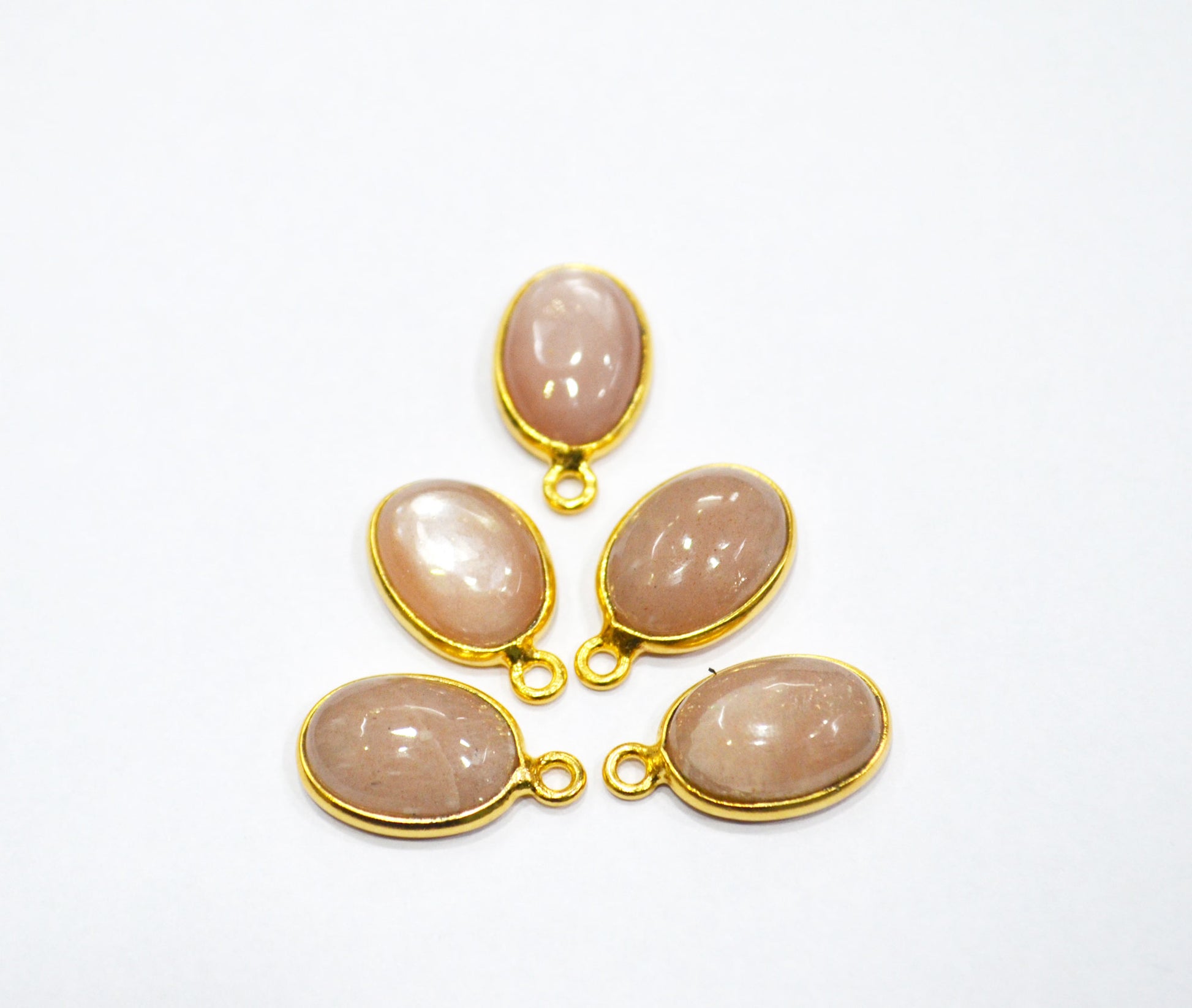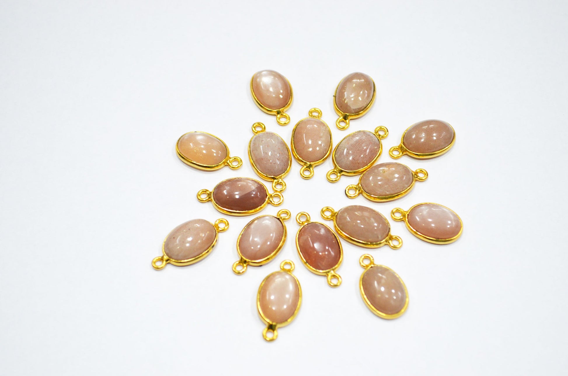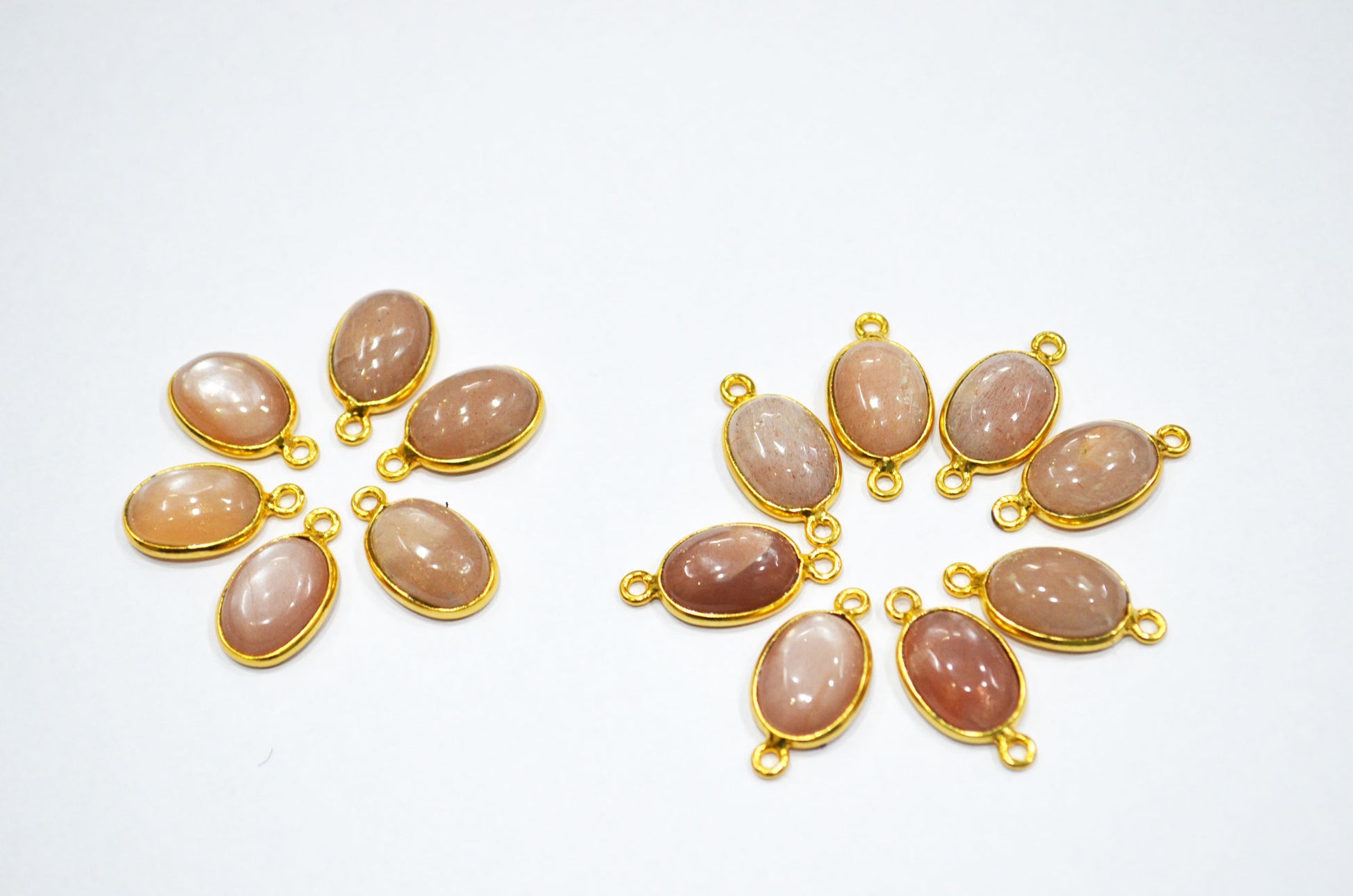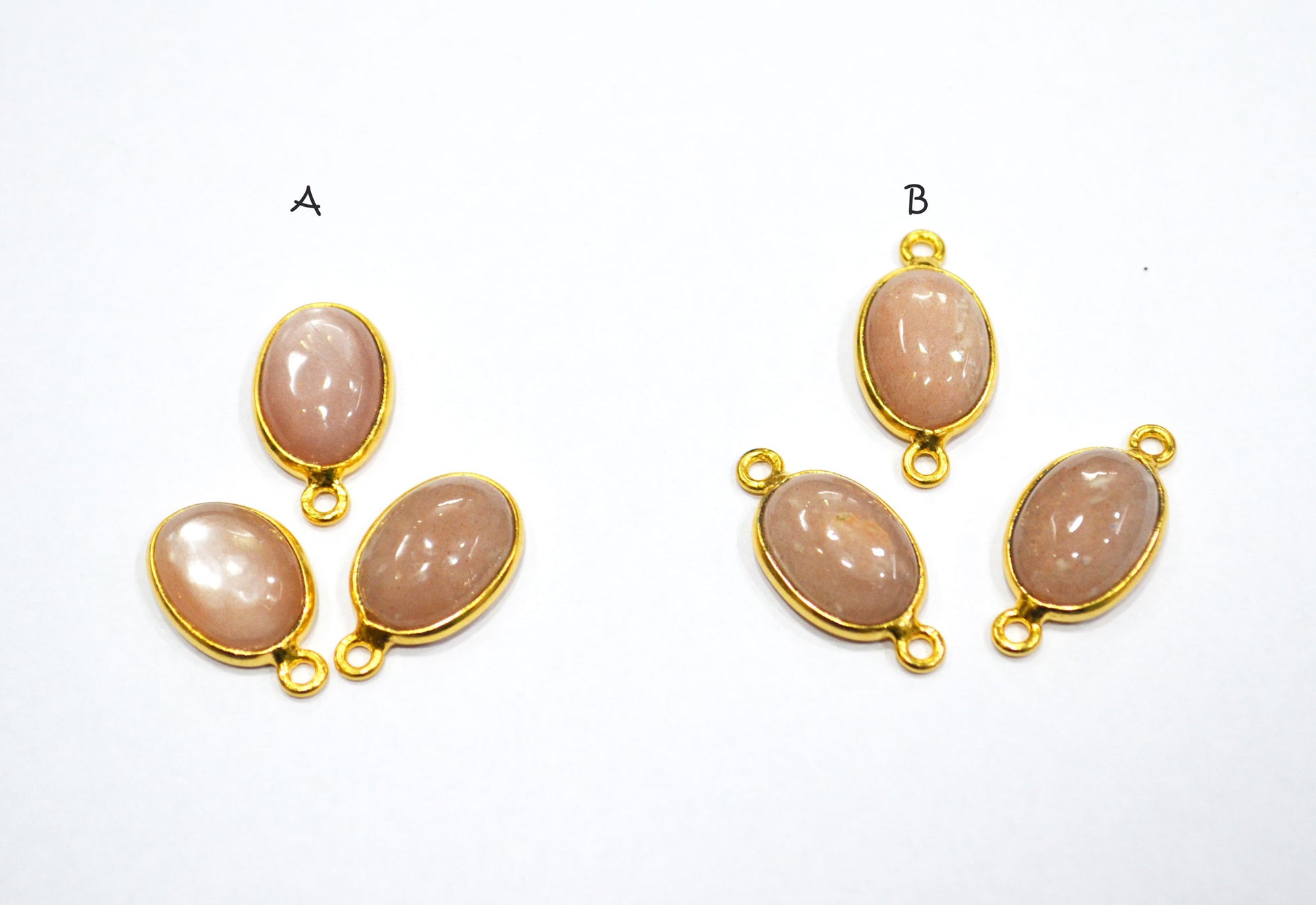 Peach Moonstone Smooth Oval Shape Single And Double Bail Connector , Sold By Piece , 10x14 mm , RB-6231