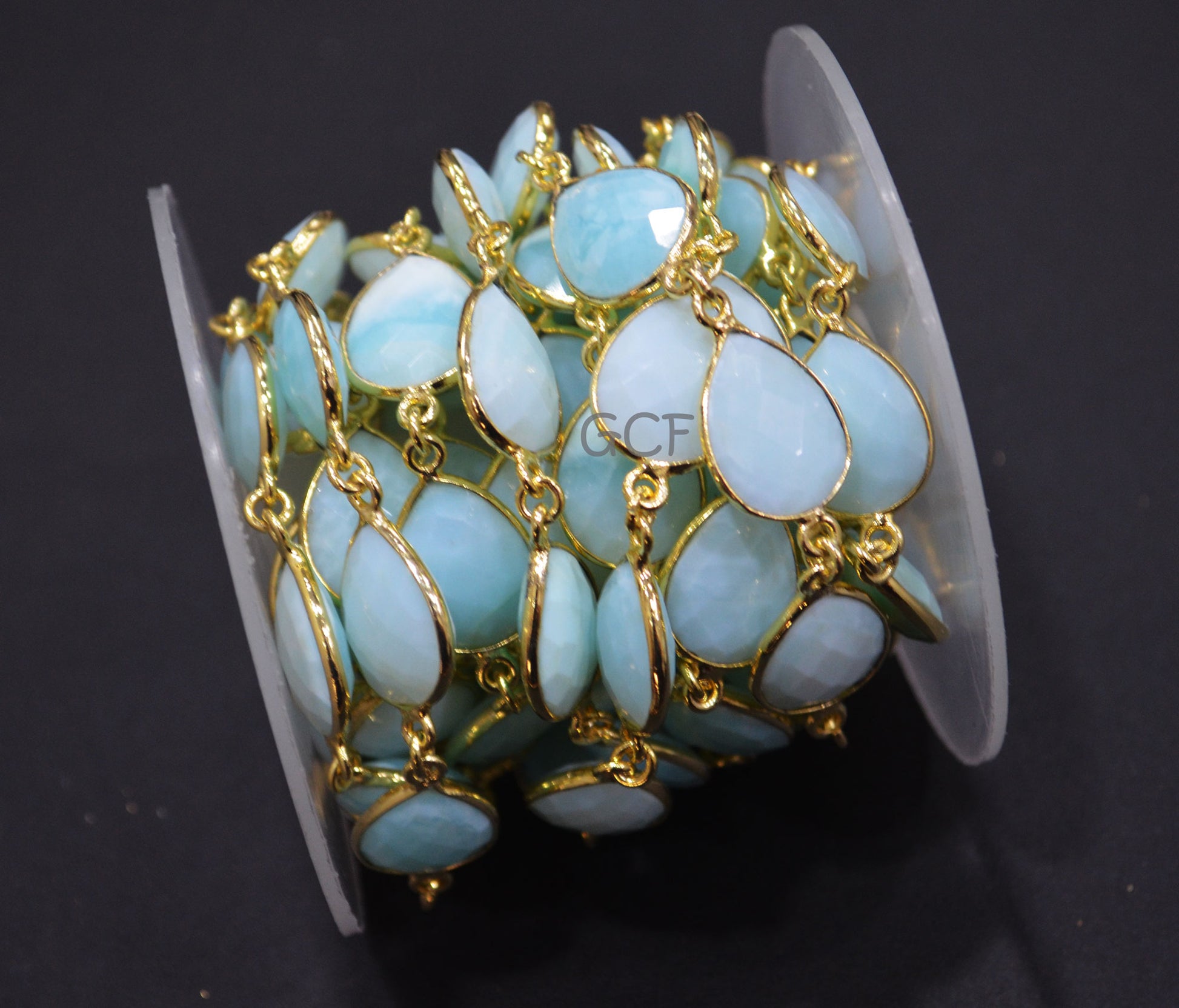 Peruvian Blue Opal Faceted Pear Shape Connector Chain , Peruvian Blue Opal Pear Shape Bezel Link Chain , 13x15 mm , 6934