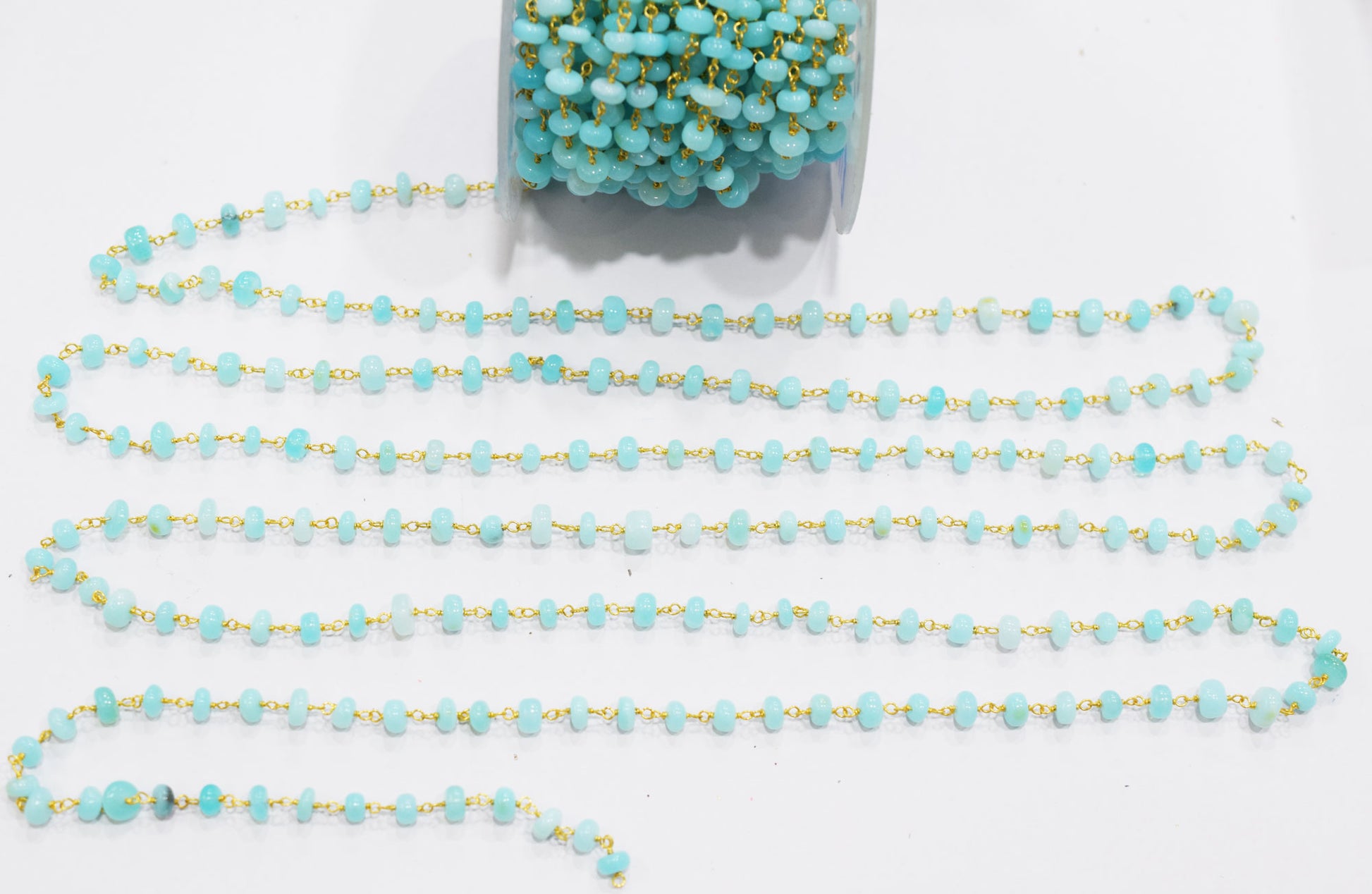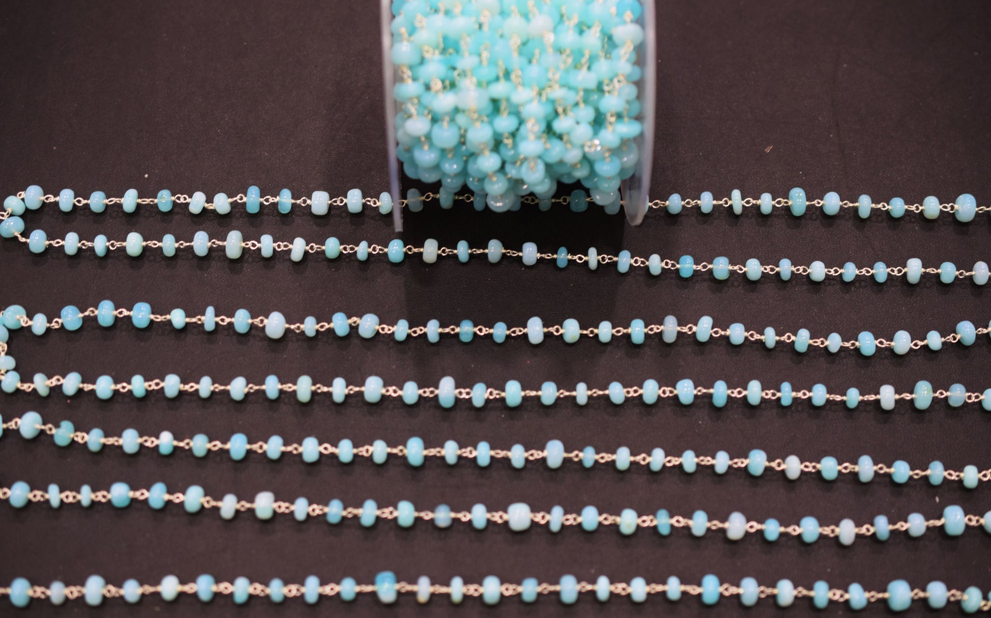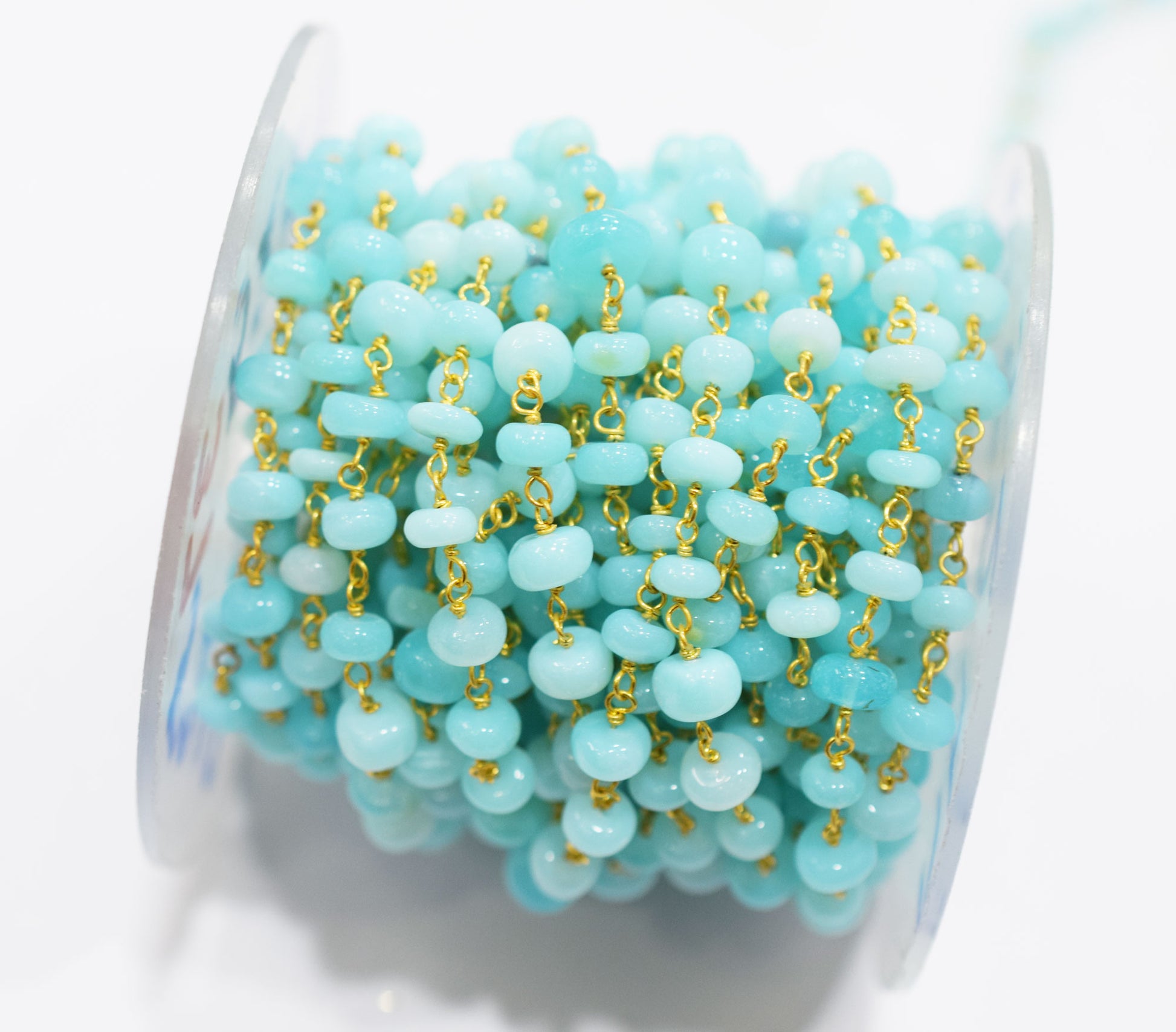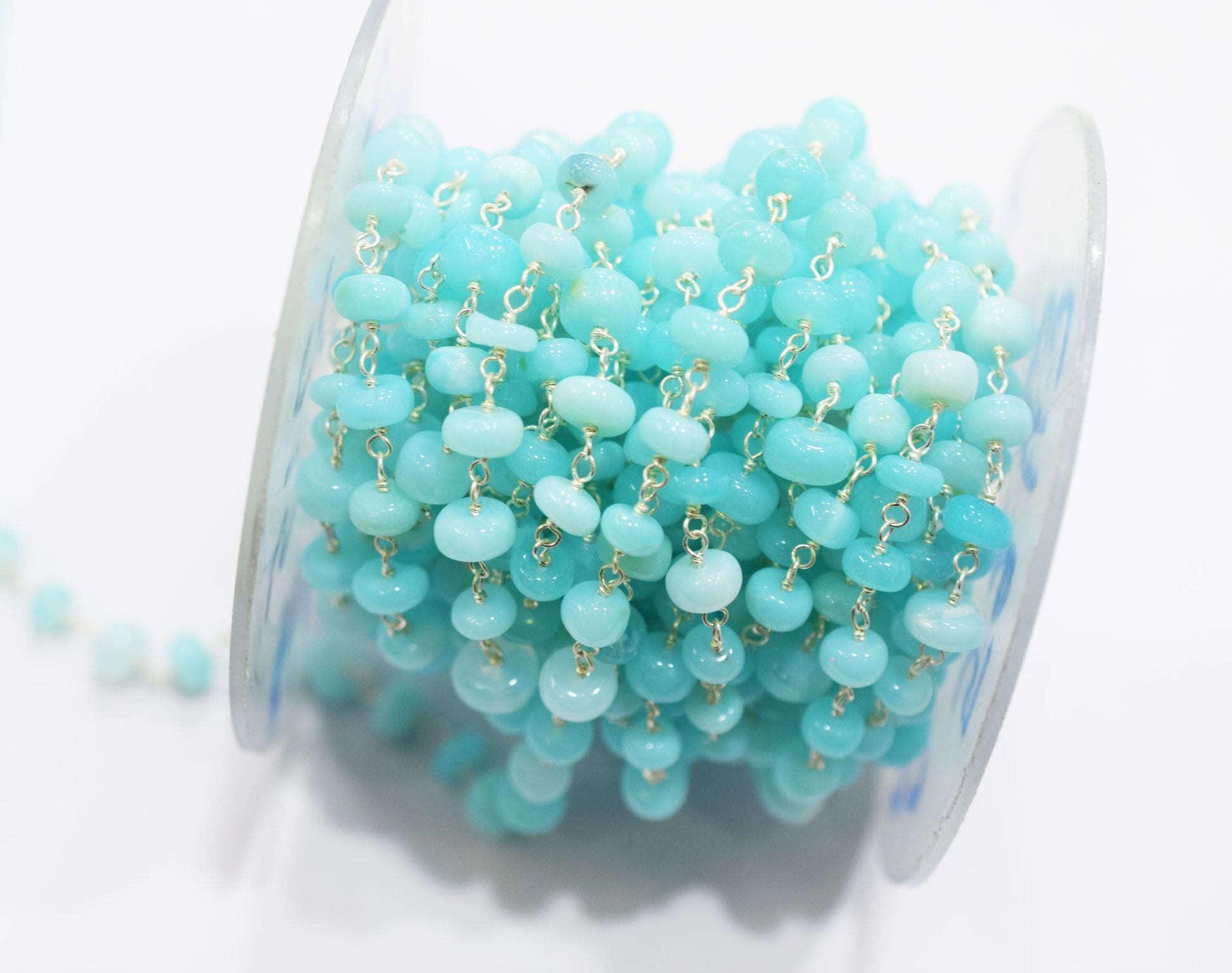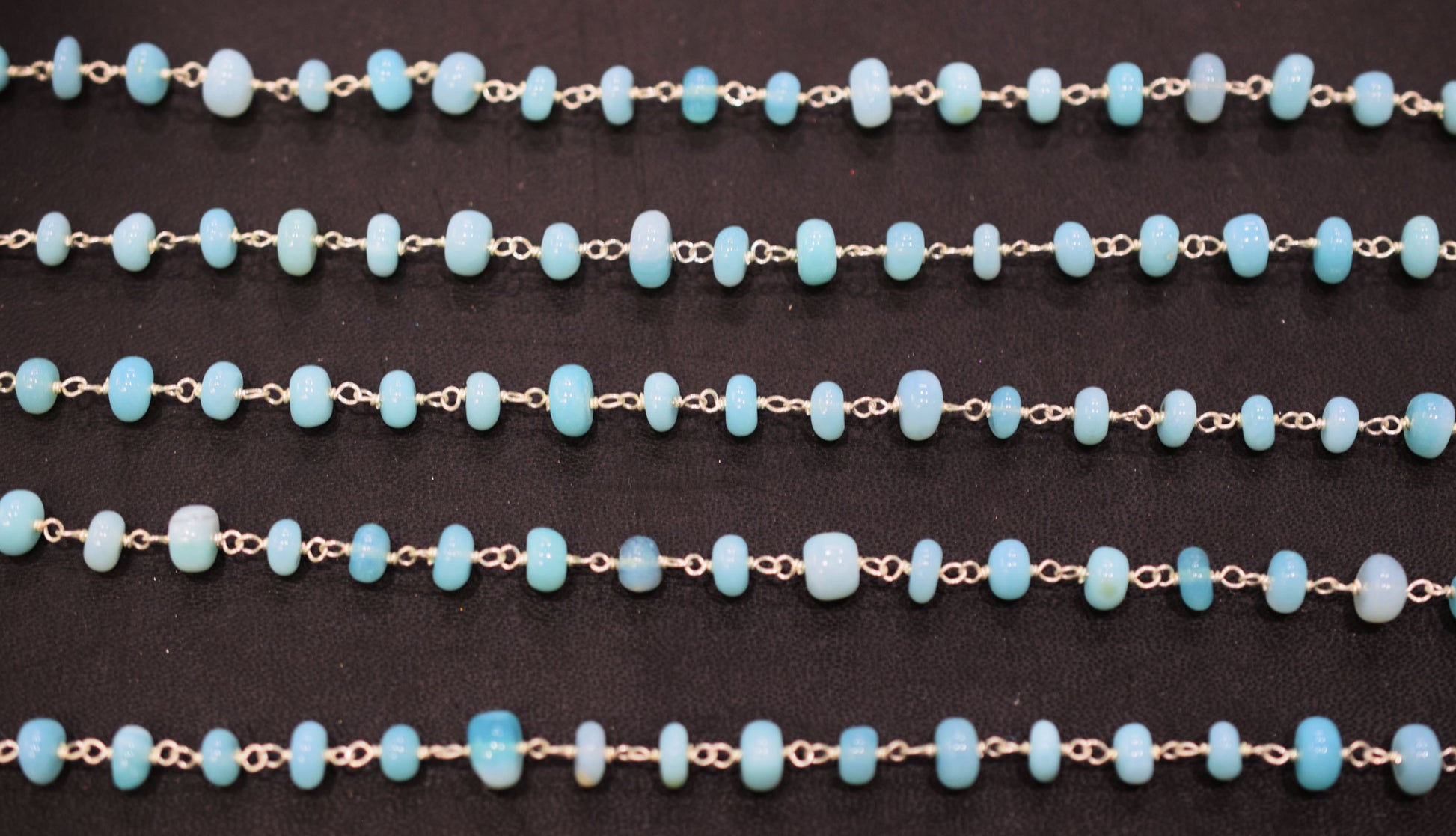 Peruvian Blue Opal Smooth Rondelle Shape Rosary Beaded Chain , Peruvian Blue Opal Wire Wrapped Chain , 6 mm , RB-6674