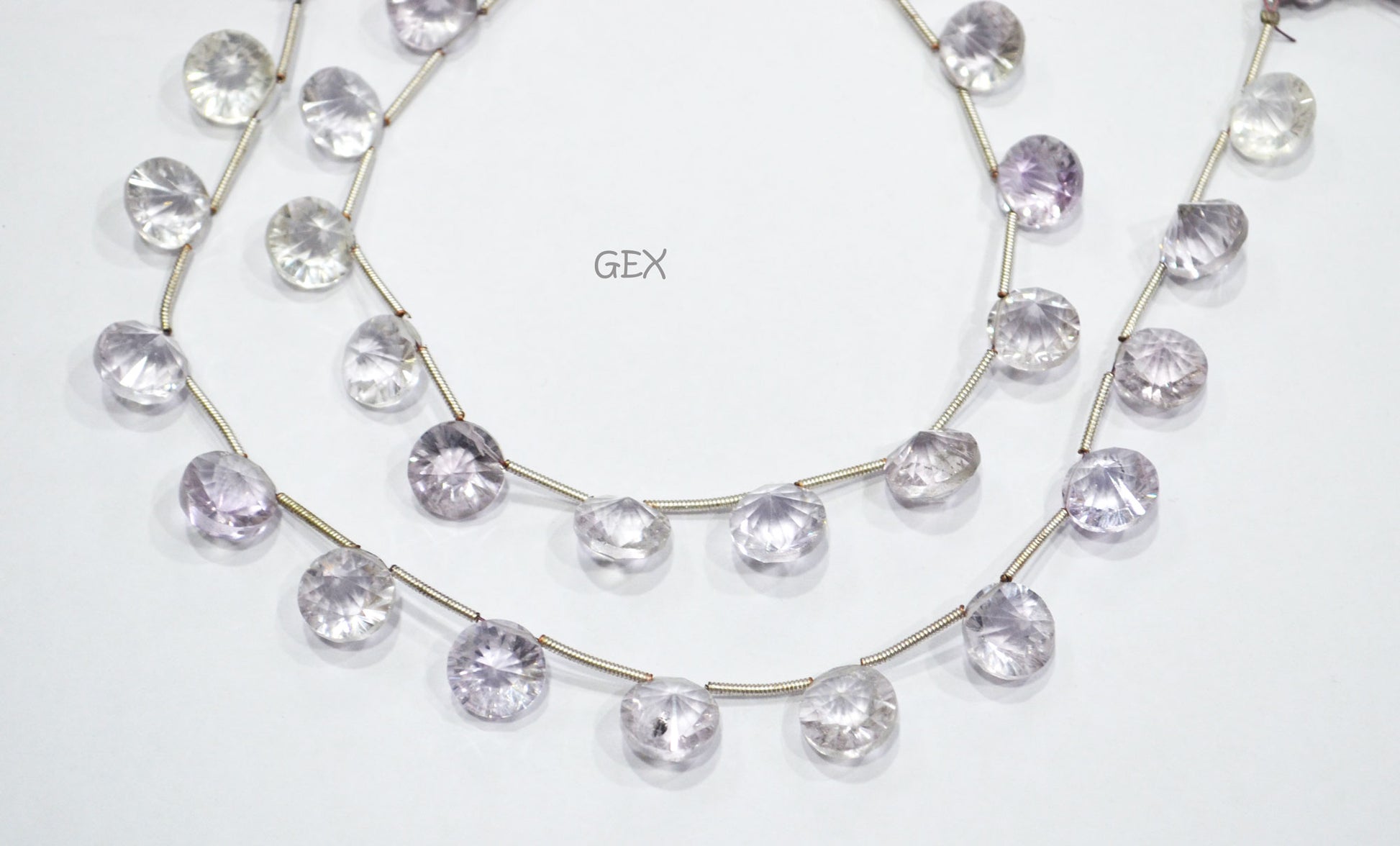 Pink Amethyst Concave Cut Coin Shape Beads , Pink Amethyst Concave Cut Briolettes , Sold By Strand , 10 mm , 8 Inches , BL-2733