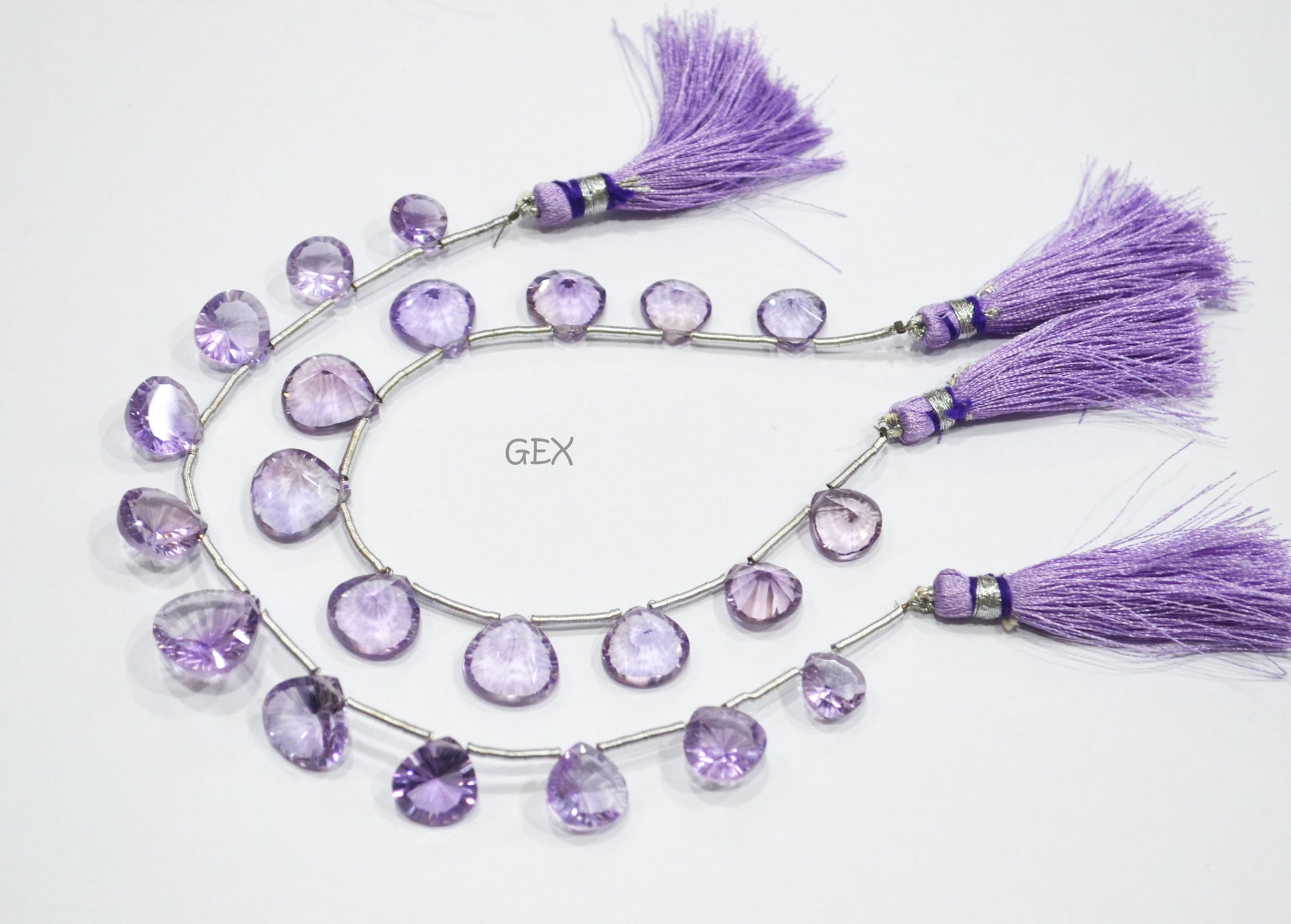 Pink Amethyst Concave Cut Heart Shape Beads , Pink Amethyst Concave Cut Briolettes , Sold By Strand , 9x9 - 14x14 mm , 7 Inches , BL-2721