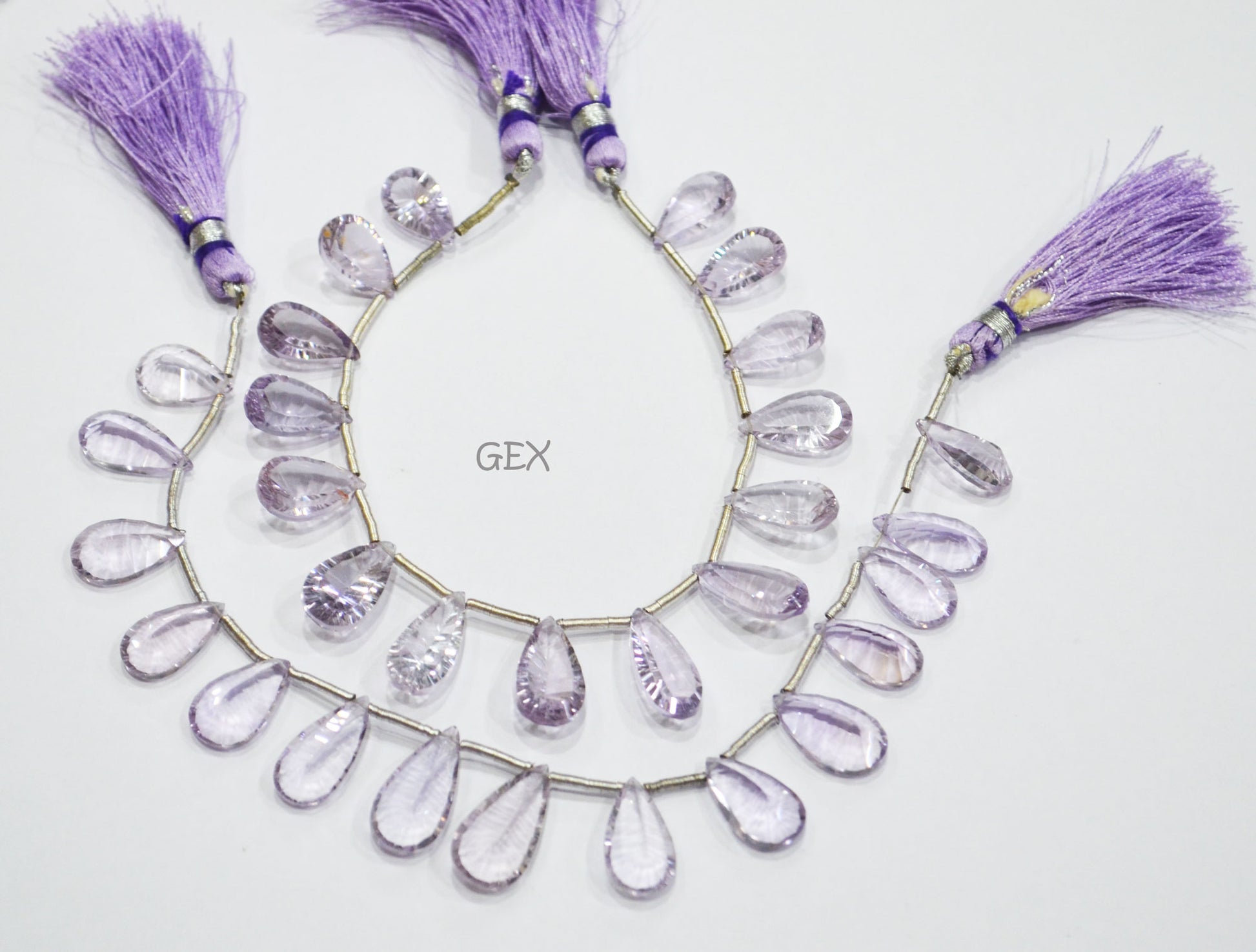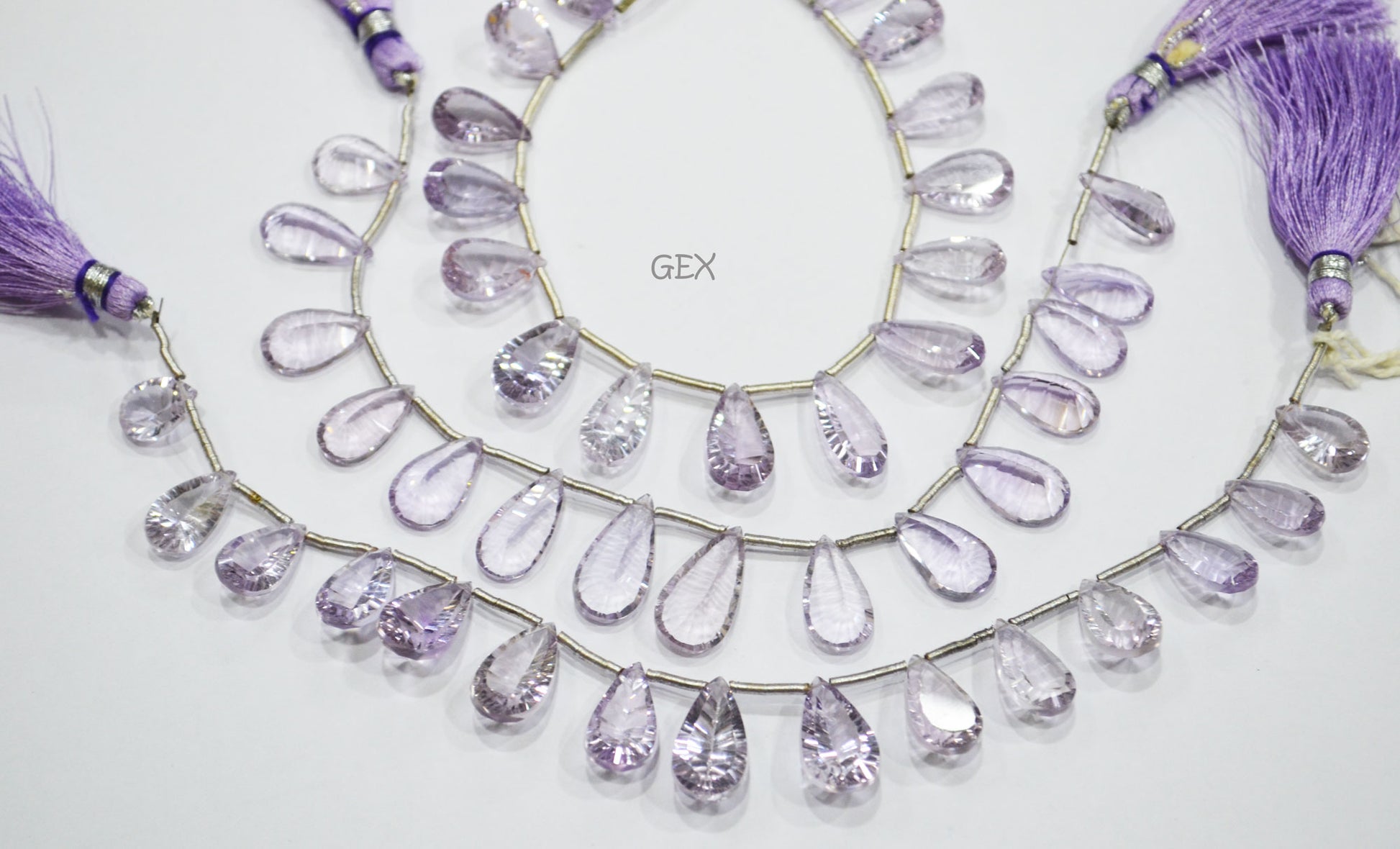 Pink Amethyst Concave Cut Pear Shape Beads , Pink Amethyst Concave Cut Briolettes , Sold By Strand , 8x12 - 10x20 mm , 7 Inches , BL-2741