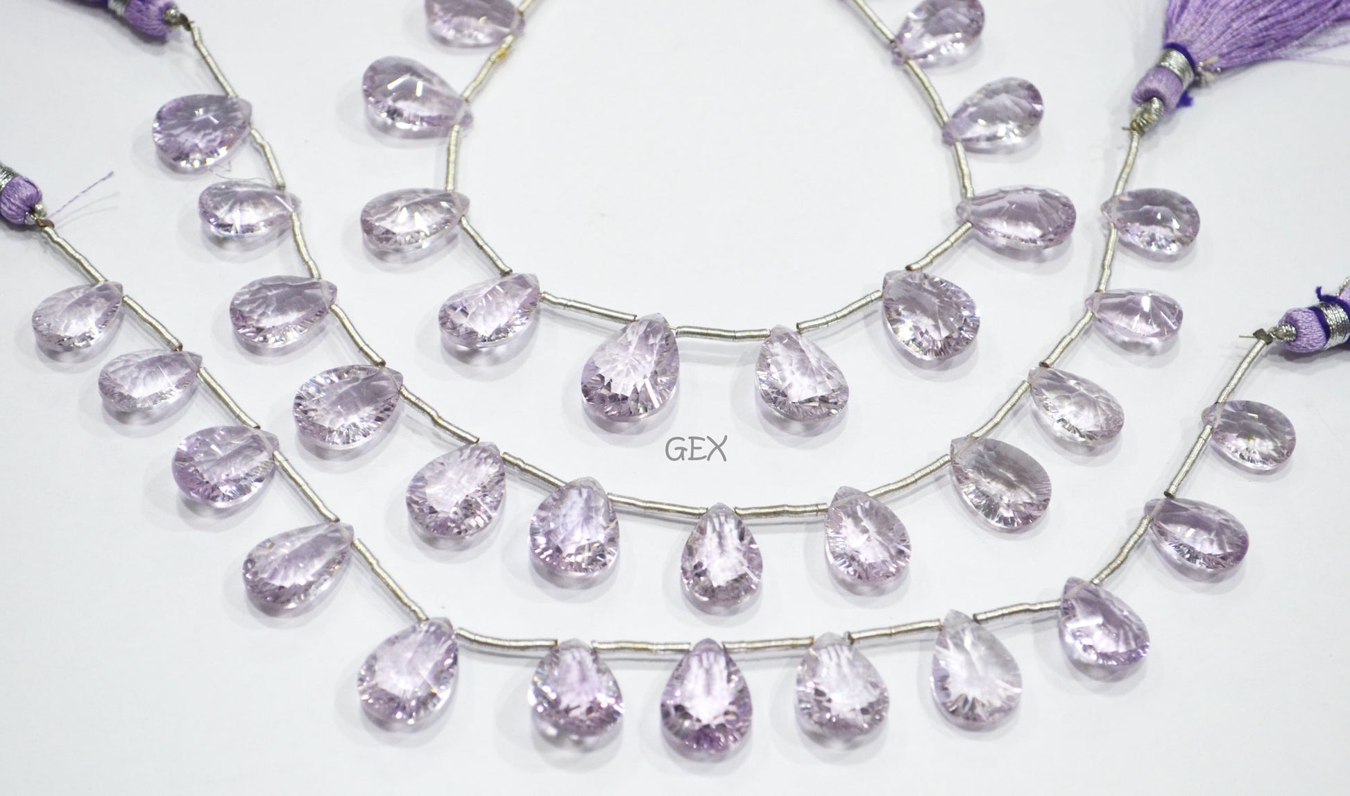 Pink Amethyst Concave Cut Pear Shape Beads , Pink Amethyst Concave Cut Briolettes , Sold By Strand , 9x12 - 11x16 mm , 7 Inches , BL-2747