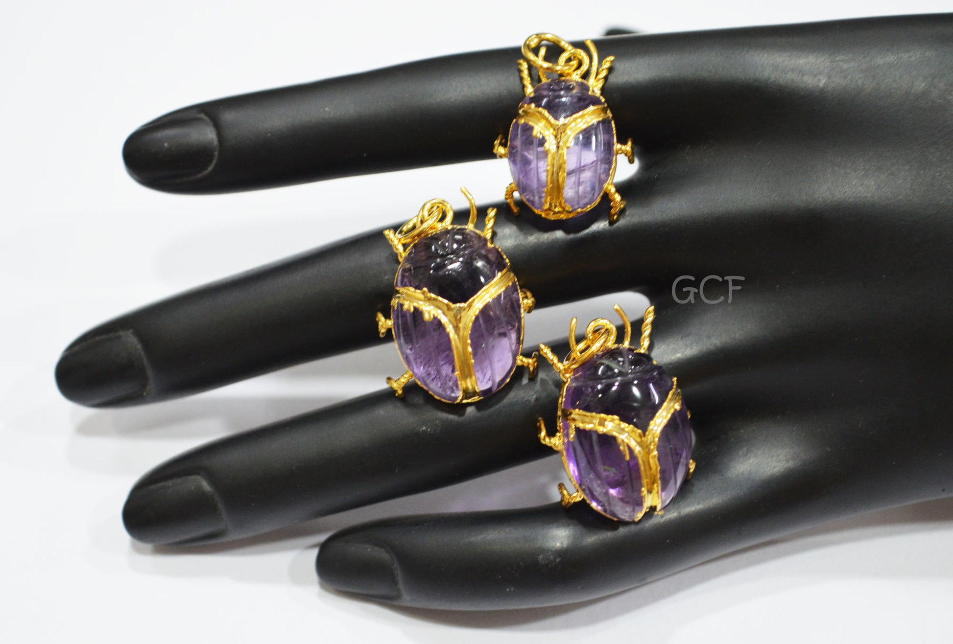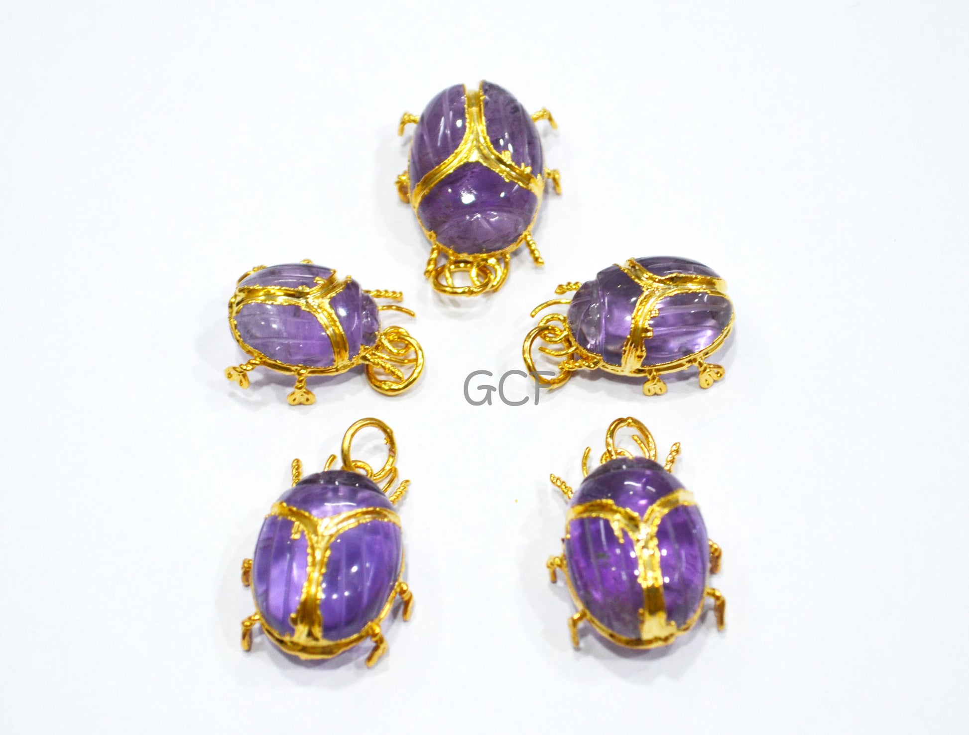 Pink Amethyst Electroplated Beetle Pendant , Egyptian Scarab Pink Amethyst Charm , Sold By Piece , Use To Make Jewelry , 2 - 2.75 cm , 31351